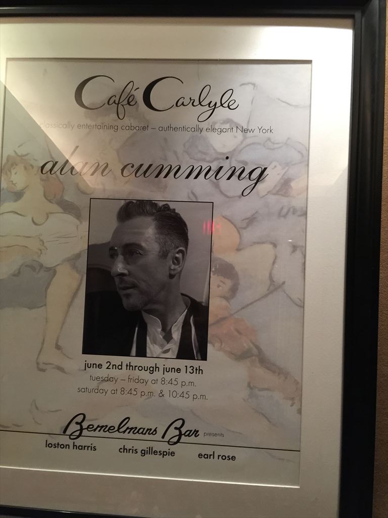 Alan onstage with his long time collaborator and Emmy-winning musical director, Lance Horne, and cellist Eleanor Norton debuts his brand new concert Alan Cumming Sings Sappy Songs at the legendary Cafe Carlyle.