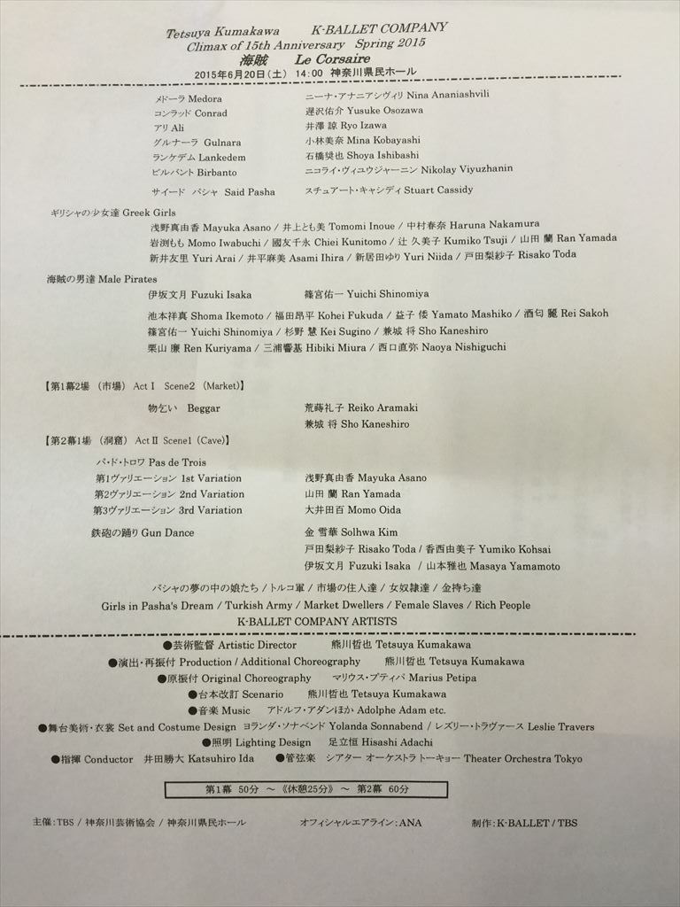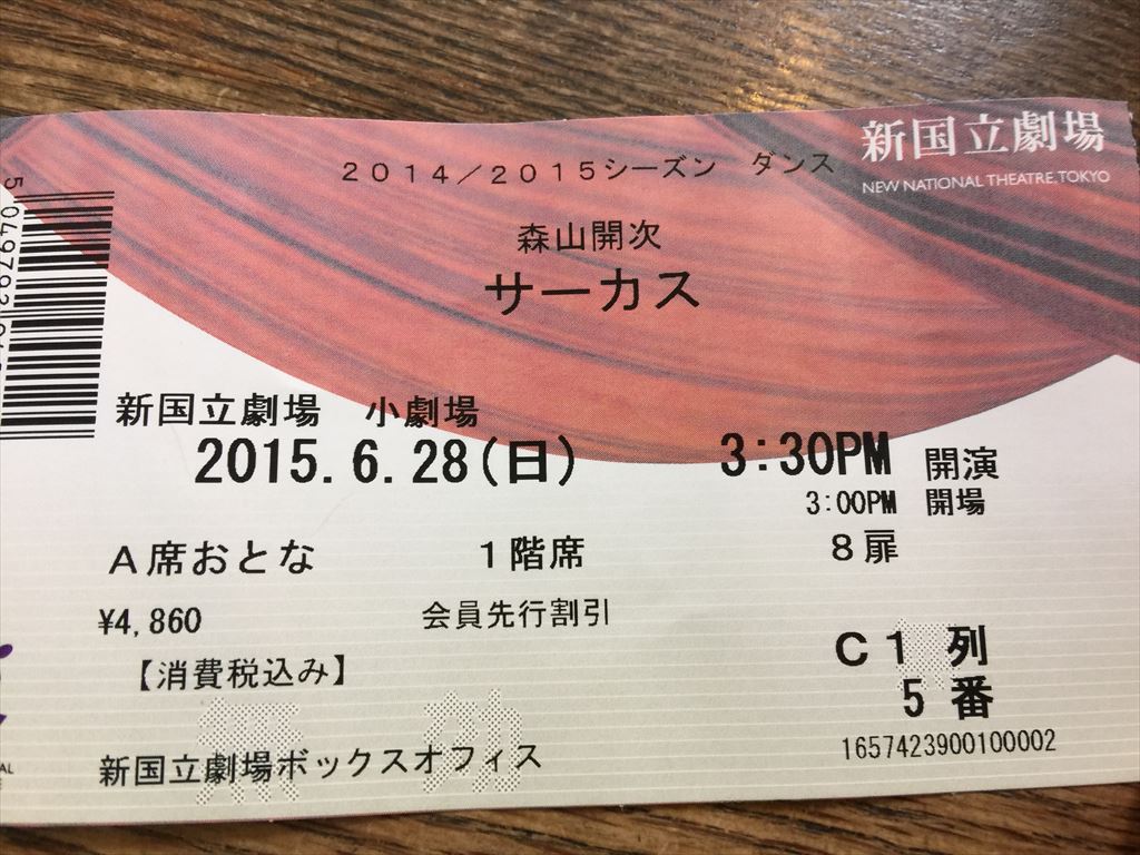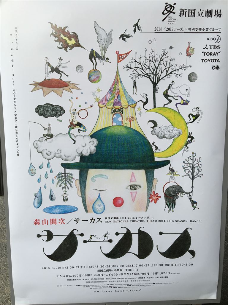 劇場:神奈川県民ホール 日時:2019年3月9日13:00-(途中休憩あり) 料金:招待 座席:1幕中央なかほど、2幕上手最前列 音楽監修・ピアノ/一柳 慧 構成・演出/白井 晃 振付/遠藤康行 指揮/板倉康明 演奏/東京シンフォニエッタ ダンス/ 小池ミモザ 鳥居かほり 高岸直樹 引間文佳 遠藤康行 梶田留以 木ノ内乃々 五島茉佑子 児玉アリス 佐藤明花 鈴木彩海 鈴木春香 平 雛子 まりあ 米持愛梨 上田尚弘 大橋武司 掛場一慶 郡司瑞輝 ながやこうた 水島晃太郎 吉﨑裕哉 番組: 第1部 身体の記憶 Memory of Body クラシックバレエからモダンバレエが生まれ、モダンダンス、そしてコンテンポラリーダンスの時代へ。身体はどこへ向かうのか。一柳慧の音楽とダンサーの身体が絡み合い、交錯し、ダンスの変遷をたどる旅。 第2部 最後の物たちの国で In the Country of Last Things (原作/ポール・オースター 訳/柴田元幸) 遠い世界へ旅立った彼女から、手紙が届いた――。ポール・オースターの小説「最後の物たちの国で」をモチーフに、一柳慧が音楽、白井晃が台本・演出、遠藤康行が振付を担当。何もかもが破滅へと向かい限りなくゼロに近づく世界で、アンナ(小池ミモザ)が見出す希望とは?神奈川県民ホールの巨大な空間が滅亡の街へと姿を変え、記憶の音楽が響き始める。 【曲目】 一柳慧:交響曲第8番 リヴェレーション2011 一柳慧:リカレンス 一柳慧:レゾナント・スペース 一柳慧:タイム・シークエンス ほか 一柳慧×白井晃 2人の芸術監督が「身体と記憶」をテーマに創るダンスパフォーマンス! 滅亡の街と化した劇場空間で、ダンスの現在(いま)を映し出す 「ダンスとは何か」「ダンスはどこへ向かうのか」――神奈川芸術文化財団の2人の芸術監督、作曲家・一柳慧と演出家白井晃が共同で新しい芸術表現を追及する芸術監督プロジェクト。第3弾となる今回は、振付に遠藤康行(元フランス国立マルセイユバレエ団ソリスト・横浜バレエフェスティバル芸術監督)、主演に小池ミモザ(モナコ公国モンテカルロ・バレエ団プリンシパル)、演奏に現代音楽のスペシャリスト板倉康明(指揮)&東京シンフォニエッタを迎えて贈るダンスパフォーマンス! 第1部「身体の記憶」と、第2部「最後の物たちの国で」(作/ポール・オースター 訳/柴田元幸)を基にした2作品を、神奈川県民ホールの舞台上に客席を組むステージ・オン・ステージの形式で上演します。 巨大な神奈川県民ホール大ホールの全空間を舞台に繰り広げられる、刺激的なコラボレーションにご期待ください! ------------------------ 客は舞台の奥の3方向後方にある仮設席に座るのです。そして通常の客席には客はいれません。 キャストは舞台上と客席に作った仮設舞台で踊ります。 劇場全体の定員と比べるととても少ない数しか客を入れられないので、ある意味とても贅沢な舞台です。 自由席ですが、幕間に席を移って別の方向から見て欲しいと言う張り紙あり。もちろん動きました。 最初はキャストが出てきて床になにやら数字を書いていきます。それから約20人のキャストが転がったり 這ったり組み合わさったり。。キャストが客席の方もでずぱっていきます。 1幕と2幕は全く違うテイスト、1幕はミニマムなコスチュームで大人数のダンサーによる群舞、 2幕は世紀末救世主伝説でも始まるようなディストピアな雰囲気でのダンス。 この体験をうまく語ることができないのですが、とにかくとてもコストがかかった贅沢な時間を 過ごさせてもらいました。 題名:Co. 山田うん いきのね 劇場:神奈川芸術劇場ホール 日時:2019年2月17日13:00- 料金:5000円 座席:1階5列22番 【振付・演出】 山田うん 【音楽】 ヲノサトル 【出演】飯森沙百合 伊藤知奈美 川合ロン 河内優太郎 木原浩太 小山まさし 酒井直之 城俊彦 西田祥子 西山友貴 長谷川暢 広末知沙 三田瑶子 山口将太朗 山崎眞結 山下彩子 解説: 700年以上の時を超えて愛知県奥三河に息づく重要無形民俗文化財 「花祭」をモチーフに、あいちトリエンナーレ2016にて創作初演した 「いきのね」改訂版が横浜へ 土間空間で繰り広げられる16名のダンサーによる大群舞。 舞台上には土が四角く固く敷き詰められていた。花祭が行われる庭の再現なのだそうな。 オープニングには薄暗い庭のまんなかに赤い怪獣が出現! ゆっくりとした動きで福か呪いを撒いているよう。 このままずっと仮面劇?と思いましたが、仮面成分は小さかった。 その後今度は灯りを手にしたダンサーたちが出現。舞いながら祈っているようにも見えます。 わずかな灯りの中で激しく、またはたおやかに舞いました。 土を踏みかためて祓い清める、低重心というかより地面に近いところでの舞によって 何かが浄化されているかのごとく、、 これもコンテンポラリーダンスなのですよね。 なにか曰く言い難いものを感じました。 また見たい!ということでDVD予約しましたよ。 題名:森山開次『サーカス』 劇場:新国立劇場小劇場 日時:2015年6月28日15:30-16:50 料金:会員先行割引A席4860円 座席:C1列5番(2列目左側ブロッ