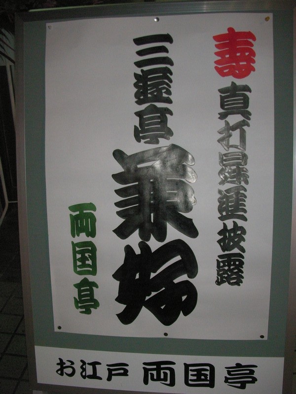 × [PR]上記の広告は3ヶ月以上新規記事投稿のないブログに表示されています。新しい記事を書く事で広告が消えます。 題名:両国寄席 寿・三遊亭好二郎改メ兼好真打昇進披露興行 日時:2008年9月4日18:00-20:50(途中休憩あり、18:45ごろから聞きました) 劇場:お江戸両国亭 料金:1500円 座席:3列目なかほど 番組: 三遊亭楽之介 お血脈のはじめ 三遊亭栄楽 七段目 立川ぜん馬 禁酒番屋 仲入り 真打披露口上 三遊亭とん楽 桃太郎 ダミー マジック 三遊亭兼好 お見立て 久々の両国寄席です。ほとんどの演者は私にとって初見でした。栄楽師匠は 見得がいい感じですね。ぜん馬師匠は飲みの仕草がほんとにうまそう。 披露口上はとてもあたたかい雰囲気でしたよ。 ダミーさんもはじめて、チャイニーズリングだけでひっぱるひっぱる(^^;) 兼好師匠もはじめてみたのですが、表情がとても豊かで引き出しがいっぱい ありそう。メリハリの利いた噺の雰囲気で、他の噺も聞いてみたくなりました。 PR