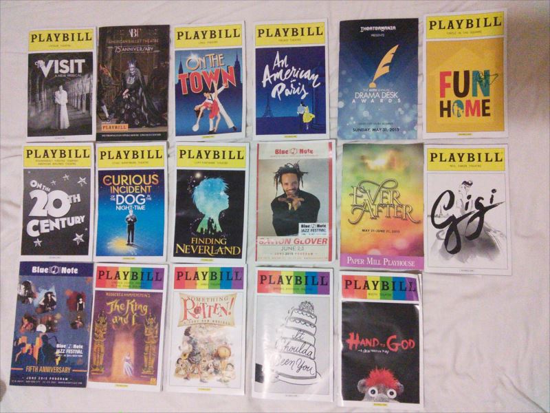 × [PR]上記の広告は3ヶ月以上新規記事投稿のないブログに表示されています。新しい記事を書く事で広告が消えます。 今回見たものはだいたい上の写真に写ってます。 ストレートプレイはCurious Incident がさらっていきましたね。 ミュージカルは Fun Homeと King&Iの勝ち。 Hand to God と Something Rotten!にもっと取ってほしかったのだけれど 相手が悪かったというところでしょうか。 さて来年はどうなるかな?どうもお疲れ様でした。 Here is the tally of the winners: Fun Home: 5 The Curious Incident of the Dog in the Night-Time: 5 An American in Paris: 4 The King and I: 4 The Audience: 2 Something Rotten!: 1 You Can't Take It With You: 1 Wolf Hall Parts 1 & 2: 1 Skylight: 1. Complete nominations follow. Winners are marked with an asterisk (*): Best Lighting Design of a Play * Paule Constable, The Curious Incident of the Dog in the Night-Time Paule Constable and David Plater, Wolf Hall Parts One & Two Natasha Katz, Skylight Japhy Weideman, Airline Highway Best Lighting Design of a Musical Donald Holder, The King and I * Natasha Katz, An American in Paris Ben Stanton, Fun Home Japhy Weideman, The Visit Best Performance by an Actress in a Leading Role in a Play Geneva Carr, Hand to God * Helen Mirren, The Audience Elisabeth Moss, The Heidi Chronicles Carey Mulligan, Skylight Ruth Wilson, Constellations Best Performance by an Actor in a Featured Role in a Play Matthew Beard, Skylight K. Todd Freeman, Airline Highway * Richard McCabe, The Audience Alessandro Nivola, The Elephant Man Nathaniel Parker, Wolf Hall Parts One & Two Micah Stock, It’s Only a Play Best Book of a Musical An American in Paris Craig Lucas * Fun Home Lisa Kron Something Rotten! Karey Kirkpatrick and John O’Farrell The Visit Terrence McNally Best Original Score (Music and/or Lyrics) Written for the Theatre * Fun Home Music: Jeanine Tesori Lyrics: Lisa Kron The Last Ship Music & Lyrics: Sting Something Rotten! Music & Lyrics: Wayne Kirkpatrick and Karey Kirkpatrick The Visit Music: John Kander Lyrics: Fred Ebb Best Play * The Curious Incident of the Dog in the Night-Time Disgraced Hand to God Wolf Hall Parts One & Two Best Musical An American in Paris * Fun Home Something Rotten! The Visit Best Revival of a Play The Elephant Man * Skylight This Is Our Youth You Can’t Take It with You Best Revival of a Musical * The King and I On the Town On the Twentieth Century Best Performance by an Actor in a Leading Role in a Play Steven Boyer, Hand to God Bradley Cooper, The Elephant Man Ben Miles, Wolf Hall Parts One & Two Bill Nighy, Skylight * Alex Sharp, The Curious Incident of the Dog in the Night-Time Best Performance by an Actress in a Leading Role in a Musical Kristin Chenoweth, On the Twentieth Century Leanne Cope, An American in Paris Beth Malone, Fun Home * Kelli O’Hara, The King and I Chita Rivera, The Visit Best Performance by an Actor in a Leading Role in a Musical * Michael Cerveris, Fun Home Robert Fairchild, An American in Paris Brian d’Arcy James, Something Rotten! Ken Watanabe, The King and I Tony Yazbeck, On the Town Best Performance by an Actress in a Featured Role in a Play * Annaleigh Ashford, You Can’t Take It with You Patricia Clarkson, The Elephant Man Lydia Leonard, Wolf Hall Parts One & Two Sarah Stiles, Hand to God Julie White, Airline Highway Best Performance by an Actor in a Featured Role in a Musical * Christian Borle, Something Rotten! Andy Karl, On the Twentieth Century Brad Oscar, Something Rotten! Brandon Uranowitz, An American in Paris Max von Essen, An American in Paris Best Performance by an Actress in a Featured Role in a Musical Victoria Clark, Gigi Judy Kuhn, Fun Home Sydney Lucas, Fun Home * Ruthie Ann Miles, The King and I Emily Skeggs, Fun Home Best Scenic Design of a Play * Bunny Christie and Finn Ross, The Curious Incident of the Dog in the Night-Time Bob Crowley, Skylight Christopher Oram, Wolf Hall Parts One & Two David Rockwell, You Can’t Take It with You Best Scenic Design of a Musical * Bob Crowley and 59 Productions, An American in Paris David Rockwell, On the Twentieth Century Michael Yeargan, The King and I David Zinn, Fun Home Best Costume Design of a Play Bob Crowley, The Audience Jane Greenwood, You Can’t Take It with You * Christopher Oram, Wolf Hall Parts One & Two David Zinn, Airline Highway Best Costume Design of a Musical Gregg Barnes, Something Rotten! Bob Crowley, An American in Paris William Ivey Long, On the Twentieth Century * Catherine Zuber, The King and I Best Direction of a Play Stephen Daldry, Skylight * Marianne Elliott, The Curious Incident of the Dog in the Night-Time Scott Ellis, You Can’t Take It with You Jeremy Herrin, Wolf Hall Parts One & Two Moritz von Stuelpnagel, Hand to God Best Direction of a Musical * Sam Gold, Fun Home Casey Nicholaw, Something Rotten! John Rando, On the Town Bartlett Sher, The King and I Christopher Wheeldon, An American in Paris Best Choreography Joshua Bergasse, On the Town Christopher Gattelli, The King and I Scott Graham & Steven Hoggett for Frantic Assembly, The Curious Incident of the Dog in the Night-Time Casey Nicholaw, Something Rotten! * Christopher Wheeldon, An American in Paris Best Orchestrations * Christopher Austin, Don Sebesky, Bill Elliott, An American in Paris John Clancy, Fun Home Larry Hochman, Something Rotten! Rob Mathes, The Last Ship Recipients of Awards and Honors in Non-competitive Categories Special Tony Award for Lifetime Achievement in the Theatre Tommy Tune Special Tony Award John Cameron Mitchell Regional Theatre Tony Award Cleveland Play House, Cleveland, Ohio Isabelle Stevenson Tony Award Stephen Schwartz Tony Honors for Excellence in the Theatre Arnold Abramson Adrian Bryan-Brown Gene O’Donovan Excellence in Theatre Education Award Corey Mitchell Tony Nominations by Production An American in Paris - 12 Fun Home - 12 Something Rotten! - 10 The King 