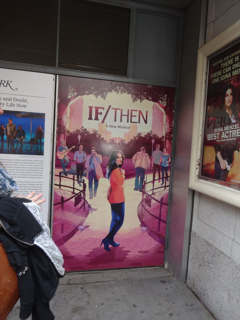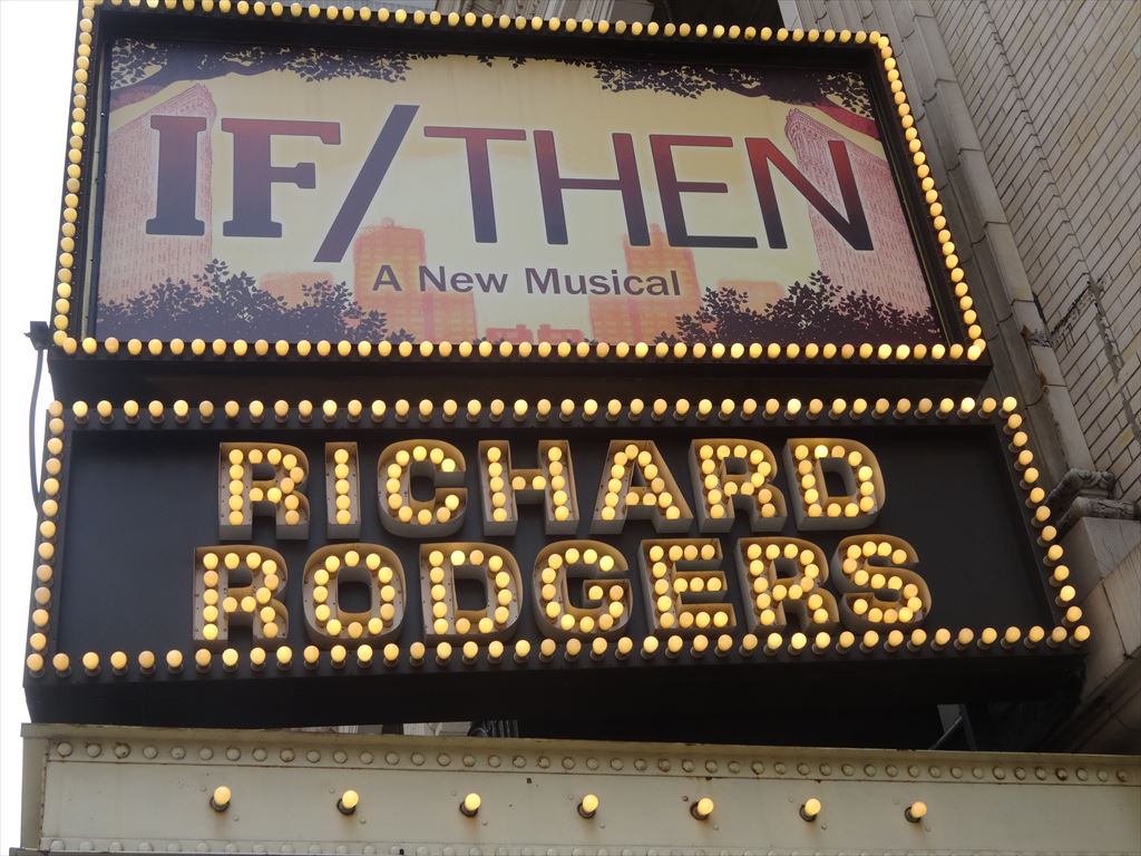 × [PR]上記の広告は3ヶ月以上新規記事投稿のないブログに表示されています。新しい記事を書く事で広告が消えます。 題名:If/Then 劇場:Richard Rodgers Theatre 日時:2014年6月4日14:00-16:40(途中休憩あり) 料金:割引 Telecharge手数料込 109.45USD 座席:Section FMEZZ, Row A, Seat 6 Michael Greif (Direction) Larry Keigwin (Choreography) Mark Wendland (Scenic Design) Emily Rebholz (Costume Design) Kenneth Posner (Lighting Design) Brian Ronana (Sound Design) Carmel Dean (Musical Direction) Tom Kitt and Michael Starobin (Orchestrations) Other Credits: Lyrics by: Brian Yorkey Music by: Tom Kitt Book by: Brian Yorkey Synopsis: The musical follows two distinct storylines in the life of Elizabeth, a city planner who moves back to New York to restart her life in this city of infinite possibilities. When her carefully designed plans collide with the whims of fate, Elizabeth’s life splits into two parallel paths. If/Then follows both stories simultaneously as this modern woman faces the intersection of choice and chance. 出演: Elizabeth:IDINA MENZEL Kate:LACHANZE Lucas:ANTHONY RAPP Josh:JAMES SNYDER Stephen:JERRY DIXON Anne:JENN COLELLA David:JASON TAM Elena, U/S Kate:TAMIKA LAWRENCE Elizabeth Standby:JACKIE BURNS Ensemble, U/S Lucas, Stephen:JOE CASSIDY Ensemble, U/S David:MIGUEL CERVANTES Ensemble, U/S Lucas:CURTIS HOLBROOK Ensemble, U/S Anne, Elena:STEPHANIE KLEMONS Ensemble, U/S Josh:TYLER MCGEE Ensemble:RYANN REDMOND Ensemble, U/S Stephen:JOE AARON REID Ensemble, U/S Anne:ANN SANDERS IF/THEN Broadway Marc Delacruz Photo MARC DELACRUZ Swing, U/S David IF/THEN Broadway Charles Hagerty Photo CHARLES HAGERTY Swing, U/S Josh IF/THEN Broadway Janet Krupin Photo JANET KRUPIN Swing, U/S Elena IF/THEN Broadway Pearl Sun Photo PEARL SUN U/S Kate この劇場、こんなに2階が高かったのか。想定以上に 舞台までの距離がありました。うーん、我ながら怪しい 記憶力でした。1階の後ろが通常の中二階くらいの高さ まで上がっています。2階席も勾配が急で最後列はもの すごく高い位置となります。客席の間隔が狭く手すりが 低いのでうっかりすると1階に落ちるかも。。 舞台は鉄骨で組んだセット。2階にはキャットウォーク、 そこからまた上がる階段が左右にひとつずつ。 全部で4階、3階あたりでようやくこちらの高さ。 セットの天井になっていた部分の下はなんと鏡になって いたのでした。片方が持ち上がると45度に傾いて 床をうつしていました。 そして床には地下鉄の路線図や、星空が。 大道具は四角いわく、椅子、それにキャットウォーク程度。 物語はたんたんと進む、バイが何人もいるのでどんな組み 合わせでもカップルが成立。40前の女性がNYにもどって きて、仕事や恋や妊娠で色々あったという物語。 この物語が If then ~ else ~ と最初から分岐して パラレルに進んでいきます。ヒロインの名前がエリザベス で、片方の時間線ではリズと呼ばれ、もう片方ではベス と呼ばれています。周りの登場人物はほぼ同じなのですが 異なる物語が進むという。混ぜて見てしまうと、単にもて もてで優柔不断なくせに色んな事がとんとん拍子で進むと いう風に見えちゃいますw 眼鏡をかけている間がリズ、 眼鏡をはずすとベス、だったのね。それがわかるまでちょっ と混乱しました。 後半ははっきりと人生がわかれていきます。最後に二つの 人生を統合?するようなどんでんがえしが少し。 しかし地味な事件ばかりですのような、それで?って言い たくなる結末に見えちゃいました。 それにしてもヒロイン、エリザベスの歌唱力はすごい。 聞き惚れまてしまいます。アフリカ系キャストの歌唱力も 負けず劣らず素晴らしい。 楽曲もキャストも良くて、朗々と歌い上げているのにこの 筋書きはちょっともったいなく感じられました。 ただ私は途中まで混乱していたので、最初からちゃんと筋が 見えていれば見方は変わったかもしれません。 PR