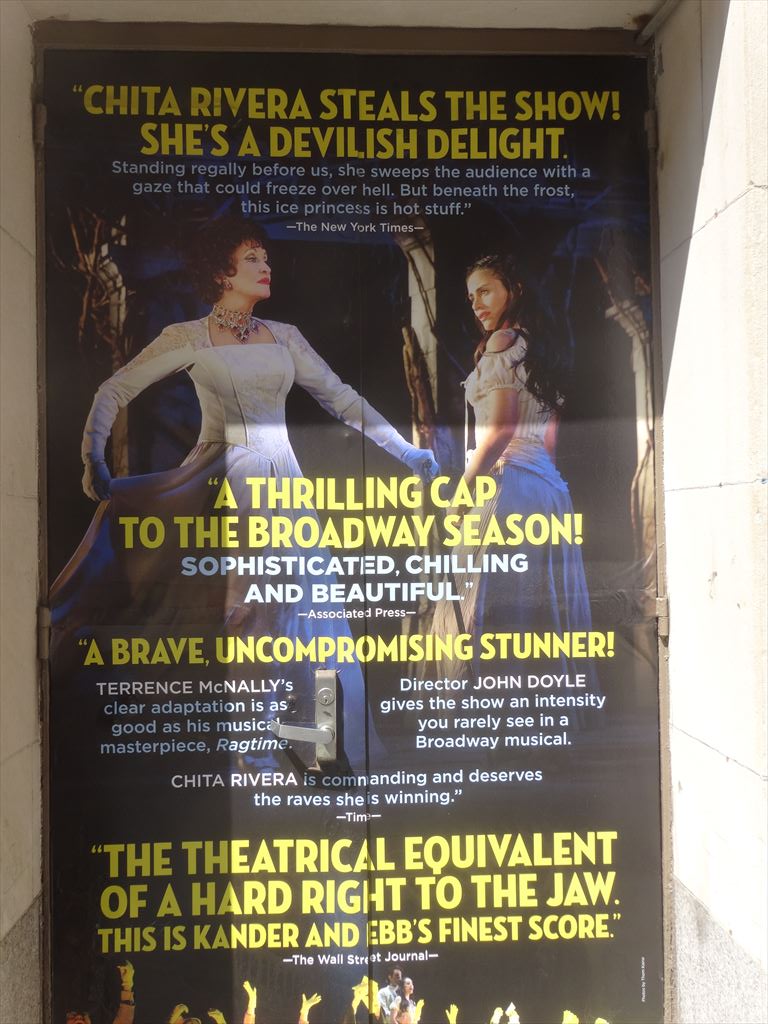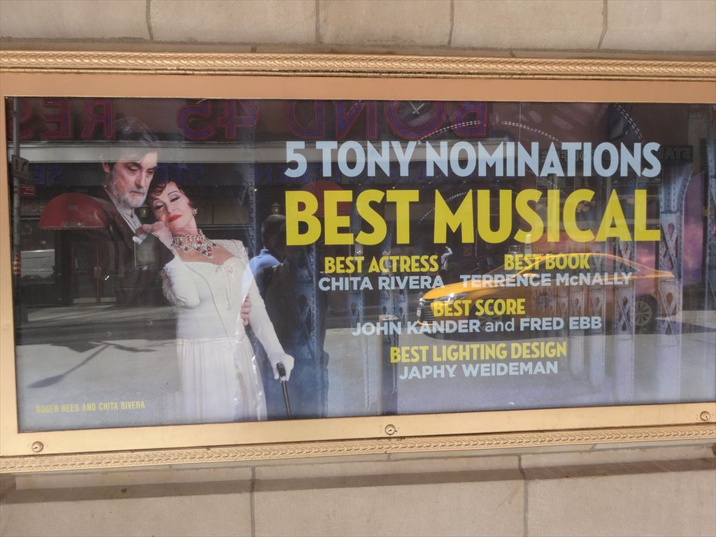 題名:The Visit 劇場:Lyceum Theatre 日時:2015年5月29日20:00-21:40 料金:BroadwayBox 割引79USD 座席:ORCH L-5 Cast List: Chita Rivera(Claire Zachanassian) TONY賞 Best Performance by an Actress in a Leading Role in a Musical ノミネート Tom Neilis(Anton Schell)(代役) Jason Danieley(Frederich Kuhn) David Garrison(Peter Dummermut) Mary Beth Peil(Matilde Schell) George Abud(Karl Schell) Matthew Deming(Louis Perch) Diana DiMarzio(Annie Dummermut) Rick Holmes(Father Josef) Ken Krugman((Rudi)(代役) Chris Newcomer(Jacob Chicken) Aaron Ramey(Otto Hahnke) John Riddle(Young Anton) Elena Shaddow(Ottilie Schell) Timothy Shew(Hans Nusselin) Michelle Veintimilla(Young Claire) Production Credits: John Doyle (Direction) Graciela Daniele (Choreography) Scott Pask (Scenic Design) Ann Hould-Ward (Costume Design) Japhy Weideman (Lighting Design) TONY賞 Best Lighting Design of a Musicalノミネート Dan Moses Schreier (Sound Design) Larry Hochman (Orchestrations) David Loud (Music Direction and Arrangements) Terrence McNally(Book) TONY賞 Best Book of a Musical ノミネート Other Credits: Best Original Score (Music and/or Lyrics) Written for the Theatre ノミネート Lyrics by: Fred Ebb Music by: John Kander Book by Terrence McNally, based on the play by Friedrich Duerrenmatt TONY賞 Best Musical ノミネート。 集客率はよくないというデータを見ていたのですが、1階席は満席、私よりも年上の観客ばかり。 なんだかぼろぼろの建物の中に貧乏な人たちが登場、災害によって困窮している町だそうです。 そしてそこに文字通り光り輝くヒロイン登場。この中の人が80歳越えているとは信じられません。 ヒロイン出ただけで場内拍手喝采。 再婚を重ねて大金持ちになったヒロインが、自分を捨てた最初の男に復讐するという話なのですが、 その手段が、市民全員を買収して法を買ってしまう、というもの。暗殺すればきっと1/10000くらいの コストで済んでしまうでしょうw 貧乏な街のひとたちと富豪のヒロインの対比が著しい。ライティングもその差を増幅しています。 ライティングがノミネートされたのはわかる気がしました。もう話はとにかく荒唐無稽、それに かなり美しい楽曲とヒロインの力、チタリベラ座長芝居で、チタリベラが神々しければあとは なんでもよい!という意思がさわやかなくらい出ている舞台でした。最後は復讐を果たして棺桶に 入れて幕。 カーテンコールはチタリベラが出ると全員スタンディングオベーションとなりました。 なんか変な方向にすごい作品です。 これは日本キャストで上演は無理だろうなあ。杉村春子とか森光子でもいれば別でしょうが。。。 PR