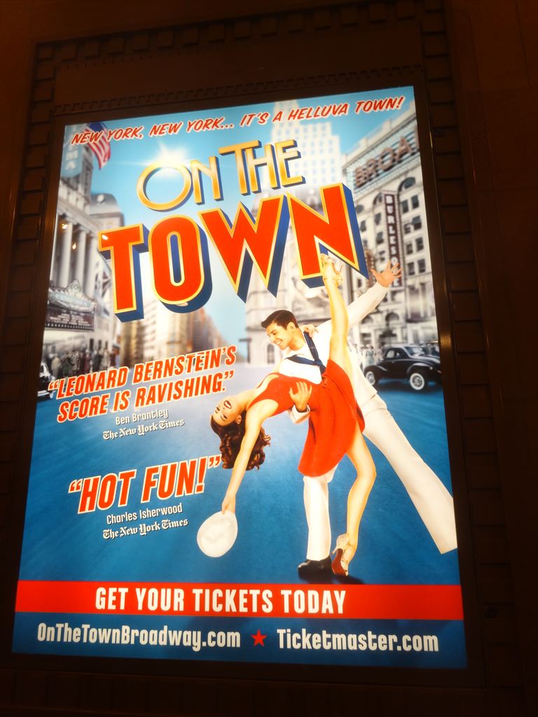 × [PR]上記の広告は3ヶ月以上新規記事投稿のないブログに表示されています。新しい記事を書く事で広告が消えます。 題名:On the Town 劇場:Lyric Theatre (formerly Foxwoods Theatre) 日時:2015年 2時間半 料金:Broadway BOX 割引 109USD 座席:ORCH H列センター Synopsis: Three sailors, on a 24-hour shore leave at the end of World War II, take New York by storm as they search for "Miss Turnstiles," a poster girl on a subway display card. They discover instead the sights of New York City and three nice young women. Includes "New York, New York (It's a Wonderful Town)" "Come Up to My Place" and "Lonely Town." Based on a concept by Jerome Robbins. Casts: Tony Yazbeck(Gabey) Jay Armstrong Johnson(Chip) Clyde Alves(Ozzie) Megan Fairchild(Ivy Smith) Elizabeth Stanley(Claire De Loone) Alysha Umphress(Hildy) Michael Rupert(Pitkin) Allison Guinn(Lucy Schmeeler,Nun,Singer) Phillip Boykin(Workman,Miss Turnstiles’ Announcer,Dream Coney Island Master of Ceremonies,Bimmy) Stephen DeRosa(3rd Workman,Bill Poster,Figment,Actor,Nedick's Attendant,Diamond Eddie’s Master of Ceremonies,Conga Cabana Master of Ceremonies, Conductor) Julie Halston(Maude P. Dilly,Little Old Lady,Diana Dream,Dolores Dolores) Tanya Birl(High School Girl,Ensemble) Angela Brydon(High School Girl,First Danc) Julius Carter(Policeman, Ensemble) Kristine Covillo(Lonely Town Girl,Ensemble) Lori Ann Ferreri(Flossie's Friend,Ensemble) Stephen Hanna(Lonely Town Sailor,Ensemble) Brandon Leffler(Tom,Policeman,Ensemble) Jess LeProtto(4th Workman, S. Uperman,Ensemble) Cory Lingner(Musician,Ensemble) Skye Mattox(Ensemble) Michael Rosen(2nd Workman,Ensemble) Samantha Sturm(Girl in Green,Ensemble) Cody Williams(Andy,Musician,Waiter, Ensemble) Mikey Winslow(Ensemble) Eloise Kropp(Doll Girl) Ricky Ubeda(Ensemble) Eloise Kropp(Ensemble,High School Girl,Shawl Girl) Chip Abbott(Swing) Paloma Garcia-Lee(Swing) Kevin Worley(Swing) Kathryn Terza(Swing) David Alvarez(Swing) Production Credits: John Rando (Direction) Joshua Bergasse (Choreography) Beowulf Boritt (Scenic Design) Jess Goldstein (Costume Design) Jason Lyons (Lighting Design Kai Harada (Sound Design) Leah Loukas (Hair Design) Other Credits: Lyrics by: Betty Comden and Adolph Green Music by: Leonard Bernstein Book by Betty Comden and Adolph Green 3人の水兵さんが24時間の休暇をもらってニューヨークに遊びに出るという物語です。 緞帳には米国国旗、開幕前には米国国家斉唱、全員起立です。 オープニングはニューヨークニューヨーク、これでもうなんだか血が猛りますねw ダンスと歌で楽しませて後になにも残らない娯楽大作、どこかの娯楽作家が書いたような。。 バッテリーパーク、自然史博物館、カーネギーホール、タクシーwとニューヨーク名所をめぐっ て24時間の前半で恋人をつくっちゃいます。太っちょタクシードライバーの彼女の迫力 たるやすさまじい。恐竜の骨が動いたのにもびっくり。 2幕は皆でデート。まあ24時間でいろいろあって船に帰っていくという、まるで男の夢の ような物語。この作品も頭を空っぽにしてダンスと歌を楽しめる作品でした。 PR