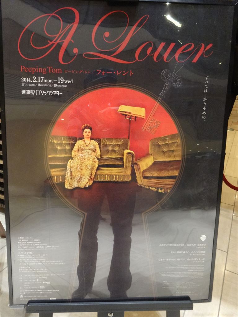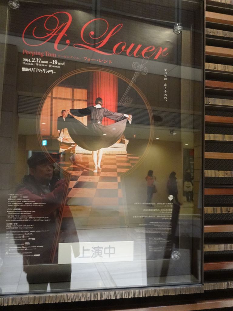 題名:CAVA's BARBER〜その床屋を待たせた客〜 劇場:青山円形劇場 日時:2014年2月22日17:00-18:20 料金:3000円 座席:[ア]ブロック18番(劇場中央平場2列目センター) 出演 CAVA<サバ> 丸山和彰/黒田高秋/藤代博之/細身慎之介/田中優希子 演奏 Corydalis Trio ピアノ:パトリス・ペリエラス、ダブルベース;マルク=ミシェル・ルベビヨン、バンドネオン&アコーディオン:セバスチャン・デゥバール 作・演出・振付 丸山和彰 作曲・音楽監督 パトリス・ペリエラス 音響 鳥羽正生(エピキュラス) 照明 ジャック・ルベリロス 越川裕子(SPECTRE) 衣裳・美術 萩野 緑 宣伝美術 森宥綺 フランス版追加演出 フランシス・ペラン 企画・製作 五十嵐 寿 この前の公演をとても気にいったので再演を見にきました。 期待通りの濃密な1時間20分。バンドが3人、 舞台装置は、衣紋掛け、椅子、白い布、わく、鞄に帽子くらい。 こんな少ない小道具なのに場面がくっきり見えるのだからマイムは偉大です。 最初の床屋の場面は笑いが出るところ多数。 時間的には繰り返し演じるところが多いのですが、それが不思議な余韻に なっています。タンゴの生演奏も素晴らしい。またみてみたい。 PR 題名:ピーピング・トム『A Louer/フォー・レント』 劇場:世田谷パブリックシアター 日時:2014年2月18日19:30-20:50(この後ポストトーク) 料金:4000円 座席:1階I列19番(センターブロック) 劇団:ピーピング・トム 出演: URL:http://www.peepingtom.be/en https://www.youtube.com/watch?v=S6t0ub3JiUk ポストトーク:ピーピング・トムメンバー/野村萬斎 解説: 舞台はかつて栄華を極めた貴族の館、もしくは古い劇場の一角のよう でもある。正面には深紅のカーテンが、巨大な広間に流れる時間を封印 するかのごとく壁一面を埋め尽くしている。おそらく競売にでもかけら れているのであろうか、家具には白い布がかけられ、"その時"が訪れ るのを静かに待っているかのようだ。 屋敷の執事が、女主人に来客を告げる。行き交うゲストの波に、懐かし い歌手の姿がフラッシュバックする。その瞬間、途絶していた時間がゆっ くりと流れだす…。ゆがみながら、未来へ、そして、過去へ……。 どことなく不穏な空気が漂うステージ上で繰り広げられる、アクロバ ティックなダンス、交わされるせりふと力強い歌声、そしてブラックユー モアが、妄想と現実、過去と未来の境界をあいまいにし、観客をファン タジーの世界へ誘います。妖しくも魅惑的な禁断の扉を開きに、ぜひ劇 場へお越しください。 不思議な空間、なんかもう一度見たくなる後を引く感じ。 くねくね動く足、わけのわからない動き、超絶な技巧なんだろうけれど 何がなんだかわからない。頭を男で隠してうごく白いパンツ1枚の男、 たくさんの扉、異世界に紛れ込んだ気分。 筋書きはあってないようなものなのでしょう。 オペラ歌手も登場。わけがわからないのにまた見たくなるから不思議。。 ----ポストトークあり---- 日本の観客はどう? 毎回怖くなる。遅すぎて、わからないのではないか。 毎回くるたびに怖い。こんなに違う文化どんな風にうけいれられるの だろうかいつも心配。 砂の女、楢山節考などからインスピレーションを受けている。 日本の映画に興味があるのか 日本の映画は子供の頃からすごいなあ。黒沢監督とか、特に砂の女。 どうしてこんなにふかいのかミステリアスなところが。。 逆にベルギーとかでは? 映画もダンスもそうだが、同じ文化であれば大体想像がつく ダンスをやっている韓国人 予測がつかないわからなさがみすてりあす 超絶技巧というか、いわゆるコンテンポラリーダンスとちがう 特殊な動きがある。錯覚に陥るかんじがある 裏切り続けるみたいなことに興味がある? どう感じるのか、確かに超絶技巧が続くのだが 非常に美しい技術の確かな芸術。 この動きはすべてが女の感情をあらわしている 足がおれているのではとは、思いませんでしか? おれたことはない 扉と言うモチーフがよく使われるが執着があるの? それほど魅力があるのはなぜかわからないが惹かれる。 ドアはなにかがかくされている。誰かがではいりする、なにかサスペンス ドアはミステリアス。サスペンスを生む 歌ありダンスあり芝居あり、ビジュアルな部分というものの 総合性はこの世界を構築するのに必要? 物語は一番大切 ダンスサーカスマジック芝居、いろんな要素が台詞がはいってより深まっていく オペラの音楽コーラスがでてきたり、鳥肌がたつくらい情感がでる ダンスだけだとつまんないのではないか こらぼするときに、違うジャンルだから何をあわせようとするのか もちろんひとつのストーリーを作るのは難しいがそれだけ意義がある。いろいろ あつまってもっといろんなことが実現する 美しいダンス、25才の素晴らしいダンサーが1時間踊り続ける。 最初は新鮮な柿ひとつ食べる最初は美味しい、でも3つめはげんなり。 でもダンサーじゃない人が途中で参加すると自分が感情移入できてよりよくなる。 いろんなシーンがあってと