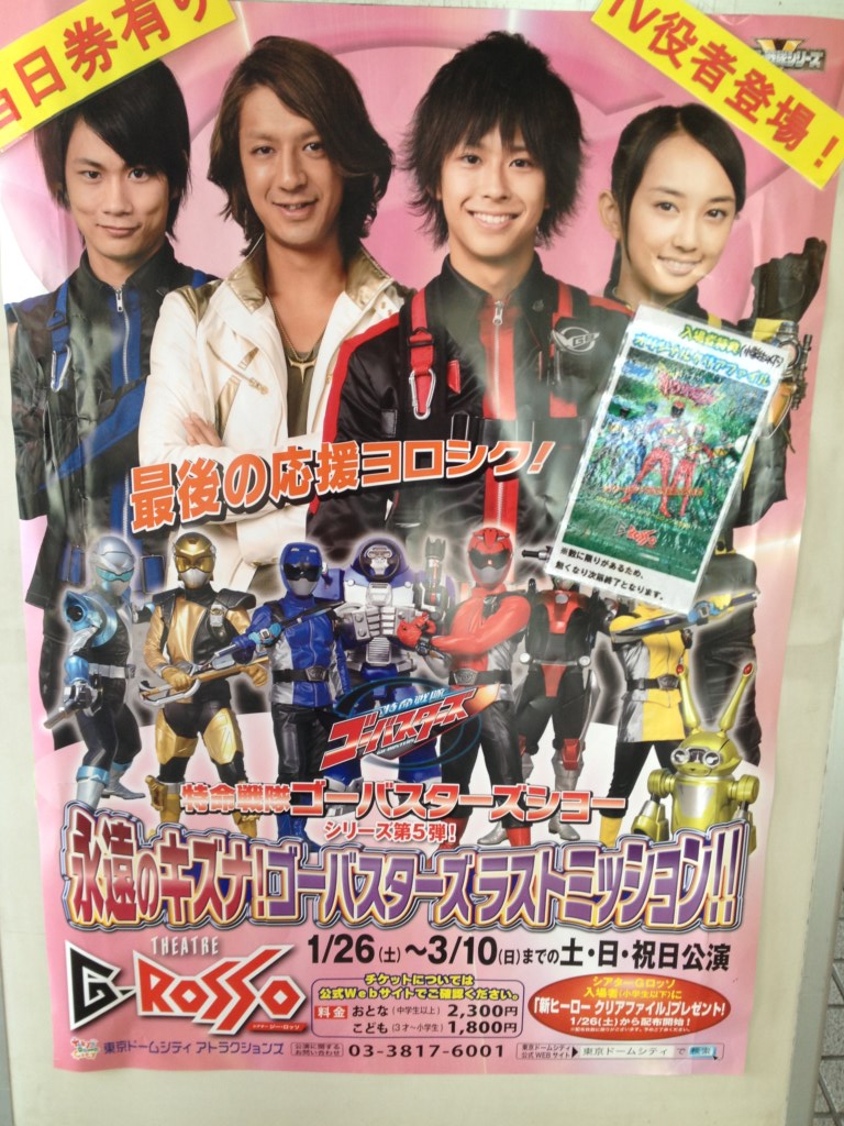 題名:見えなくなるだけで消えない 劇場:BankART1929 Studio NYK 1階ホール(横浜・馬車道) 日時:2013年4月14日14:30- 料金:2000円(1ドリンク付き) 座席:最前列右寄り 劇団:AAPA 作・演出:上本竜平 振付:永井美里 音楽:西川裕一/若鍋久美子 衣裳・美術:稲村朋子 制作:奥村優子(koen企画) 主催:BankART1929 出演:上本竜平[作・演出/出演]、永井美里[振付/ダンス]、 高田 真琴[ダンス]、宮野 玲[ジャグリング] バンクアートでの上演。客席ほぼ満員。 2000円で1ドリンクつくのは安くて幸せ、でも劇場内に 持ち込めないのは悲しい。 劇場にはいると、木のすのこの組み合わせでできた 円筒形の舞台真ん中に柱が1本 ダンスと音楽にジャグリングが寄り添う感じ。 こういう試みは続けてほしい。 PR 題名: 特命戦隊ゴーバスターズショー第5弾 <2/16~3/10特別公演> 劇場:シアターGロッソ 日時:2013年3月3日10:50-11:30 料金:2300円 座席:C25番(3列目センターブロック) 素顔の戦士たちのショー、それなのに当日券ありという看板。 ゴーバスターズおもしろかったのになあ。最終的な入りでも後方はあいていた ようでした。でも大きなお友だちもちゃんと多数きていましたね。 さて開演前にひさびさに前説のおねえさん。 このおねえさん、スカイシアターの時にはいつも前説をしていたのですが、 Gロッソにうつってからは終演時にしかあらわれなかったはず。 実は今回の物語はこのGロッソを舞台としていたのでした。前説おねえさんも 物語の中で出ててきたという。。Gロッソ自体が怪物「Gロイド」になってしまって 子供たちを取り込んでいこう。。 客席上空からヒロム本人登場、さらにステージの天井からリュウジとヨーコ本人 が登場。しかし、エンターの謎の触手攻撃に苦戦、、とそこへ陣本人登場。 エンターは退けたものの、Gロイドは削除できていない。 天才エンジニア・陣マサトがワクチンプログラムを作りGロイドを倒す! しかしなかなか開かない。陣「そうだ!踊ろう!!」w ここで陣による「よくわかるダンス講座」開始!!皆で踊ります!これが 楽しい。もちろん最後は大団円なのですが、Gロッソ自身を舞台とした 物語がかなり楽しかった。 またエンターの動きのキレが素晴らしかったのが印象的でしたね 題名:シルク・エロワーズ「iD」 劇場:五反田 ゆうぽうとホール 日時:2013年2月15日19:00-21:00(途中休憩あり) 料金:招待券(S席 9,800円 ?) 座席:1階席なかほど右寄り 劇団:シルク・エロワーズ(Cirque Eloize) 演目: ハンド・トゥ・ハンド: 男女のペアが鍛え上げられた身体とバランス感覚から次々と美しいポーズを 描き出していく。その演技に言葉はなくとも二人の思いが雄弁に語られている。 チャイニーズ・ポール: ステージ上にそびえたつのは高さ9メートルものポール。そのポールを激し く上下しながら次々と息をのむようなアクロバットを繰り出していく。 インライン・スケーティング: ローラー・ブレードを身に付けたアーティストが音楽に合わせて華麗に疾駆 を始めると、ステージは突如ストリートに変貌する。 トライアル・バイク: 人馬一体ならぬ人"車"一体。自転車を操ってステージ上を、そして壁面を自 在に駆け巡る。 コントーション/ビーボーイ: 柔軟性で魅了するコントーションと息をのむほど俊敏なブレイクダンスとの コラボレーション。人間の身体が秘める無限の可能性を感じさせられる。 アーバン・ダンス: 大迫力のダンスパフォーマンス。ストリートミュージックに呼応し、華麗 にiDの世界を彩っていく。 ジャグリング: まるで手に磁石がついているかのように自由自在にボールを操っていく。 場所を選ばないそのジャグリングはまさにフリースタイル。 エアリアル・フープ: 天井から吊るされたフープを自在に操るダイナミックな天空の舞。鍛え抜 かれた肉体と抜群の平衡感覚から生み出されるその美しさに溜息がこぼれる。 ジャンピング・ロープ: アーティストたちが己のテクニックを競い合うかのように次々とロープを 飛び越えていく。軽快な音楽とテンポよく繰り出されるアクロバティック に会場が一体となって盛り上がる! ハンド・バランシング: 自らの限界に挑むかのように頭上高く積み上げられた椅子の上で繰り広げ られる極限のバランス技。 エアリアル・シルク: 天井から垂れた一枚の布に命を預けて、恋人同士が儚くも激しい愛を謳う。 ストラップス: 身体を支えるのは天井から吊られた2本の細いロープのみ。筋力をフル活用 して上空を旋回したかと思うと中空にピタリと静止する。その造形の美しさ は見るものを釘付けにする。 シル・ホイール: 金属製のホイールと一体化したかのような激しいダンスにあなたはきっと 瞬きさえ惜しくなる。 トランポウォール: 重力から解き放たれたかのように垂直の壁面で繰り広げられる究極のアク ロバット。iDのフィナーレを大興奮のうちに締めくくる。 ---- 舞台上のセットに対してプロジェクションマッピングを効果的に 使いショーに奥行きを見せていました。ストーリーらしきものが
