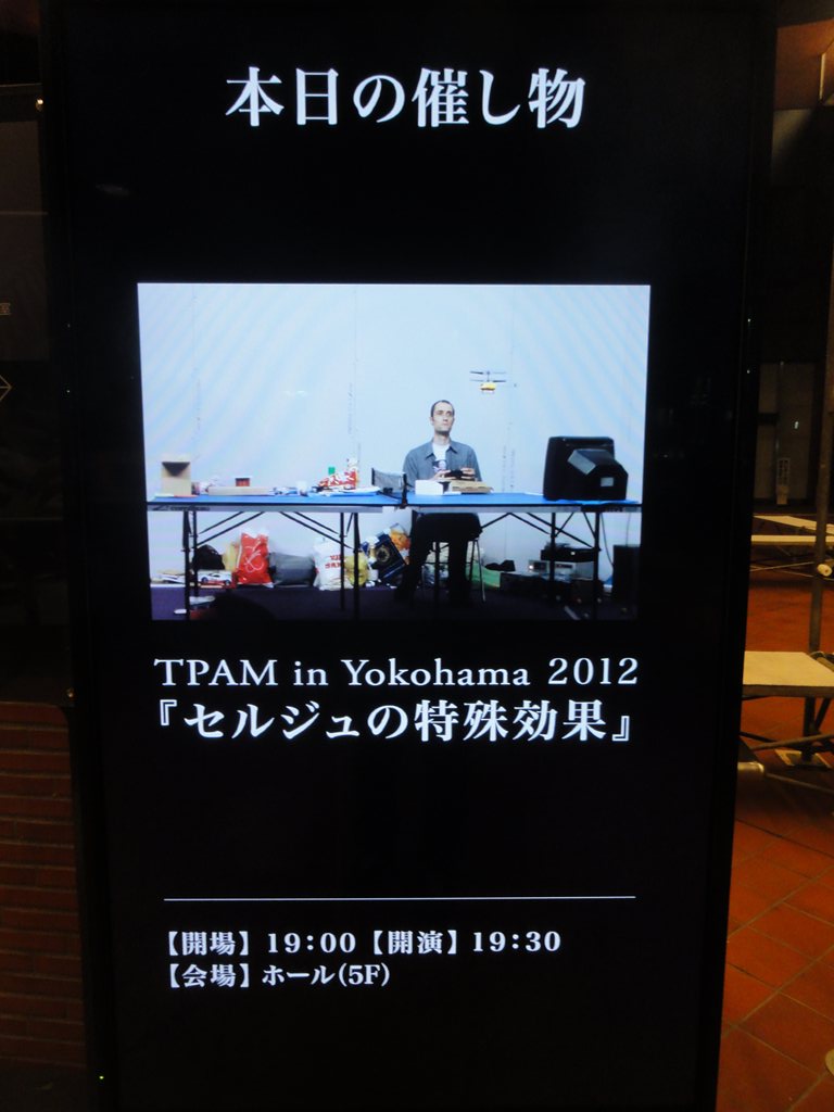 題名:浅草コシダカパフォーマンスライブvol.6 劇場:コシダカシアター(浅草ROX内4F) 日時:2012年3月15日19:30-21:20 料金:1000円 座席:左端前方 番組 ジャグリング:篤 ハットジャグリング:ひいろ ユニサイクルデュオ:WittyLook: 「雨のち」:5人の共同創作 ヨーヨーパフォーマー「Naoto」、サーカスエンターテイナー「サクノキ」、 ディアボロアーティスト「ツバサ」、コントーション「ありさ」 ハンドバランス「谷口 界」 コシダカシアターにははじめてきました。 浅草ROX内ですが、専用のエレベータに乗ってあがります。 ほぼ満員、空のテーブルがありません。ここはいつもは昭和歌謡レビューを やっているとのこと。これも一度見にこなくちゃね。真ん中に舞台の張り出し があり、舞台を横に見る形で座るというよくあるシアターレストランの 形状でした。 オープニングはキャスト全員がグラスを持って舞台の上に登場。それから 客席におりてきてキャストと客で乾杯!この公演毎回恒例なのだそうです。 私は注文が間に合わなかったので、エア乾杯w これは客に自然と一杯 注文させる良い趣向だと思います。 開口一番のあつしさんは、デビル、ボール、クラブによるジャグリング。 音楽に乗ったかなりユーロピアンな香りがする優雅な演技。 ひいろさんは傘の上に帽子をおいて登場、傘をひょいと取ると帽子が頭に にすぽん。帽子は1個から3個まで、そして面白かったのがバケツ。帽子 とほぼ同じようにひょいひょい扱って、頭にすっぽり。これは絵になりますね。 WittyLook はステージの上でユニサイクルショー。二人が縦になると舞台 上の照明にぶつかりそうで危ない!狭い真ん中の張り出しに客を寝かせて、 その上を一輪車でひょい!最後はすごーく高いユニサイクルにのる、、けど 天井がやばい!いつもとは違う意味で手に汗握りました。 10分間の休憩のあとサーカス学校卒業生による創作ステージ。つばささん が演出をされたそうです。5人のパフォーマによるひとつの作品。 まんなかにひとり、その周りを傘を持った黒子が取り囲んで始まり。。真ん中 がソロプレイでコントーション。足の指で舞扇をつかんで舞う、頭をこちらに 見せたまま体を前に海老反りにいって最後は膝が床についた!次は、 コントーションをしていた台に二人座って陣地争い。そこからいつのまにか ハンドトゥハンド?ヨーヨーが喧嘩の最中に出てきて、そこからヨーヨーへ。 さすが世界チャンピオン、見せ方がおもしろい。糸からはずれるヨーヨーは さしずめ超小型のディア両手に持つと伸縮自在のポイですね。そしてきれ いに音ぴた。バイオリンの演奏、ショートスタッフ(バトン?)のマニピュレー ションも超高速。ディアボロもかっこいい。最後はキューブをぐるんぐるん。 5人のソロプレイをマイムや物語でつなげてひとつの作品にしようとした 試みのように見えました。キャスト同士が絡み合うシーンが増えていくと もっと面白いものになるでしょうね。私は大人数でのステージが好きなので このような試みはずっと続けていってほしいと思います。次回のステージ を見るのが楽しみです。 この企画自体もいい感じですね。1時間半座ってみて1000円はお買い得 です。 PR 題名:AGAIN 이은결의 블록버스터 매직 〈THE ILLUSION LEE EUN GYEOL) 日時:2012年3月4日14:00-16:40(途中休憩あり) 劇場:충무아트홀 대극장(忠武アートホール大劇場) 劇場:忠武アートホール 大ホール 座席:1階12列27番(右側ブロック) 料金:R席80000KRW 出演:이은결 開演前に客席をカメラが写して、舞台上のディスプレイに表示し ています。そしてそこでハングルのテロップ、映像による客いじ りといったところでしょうか。客に色々問いかけて身振りによる 返事をさせて笑いをとっていました。案の定客席には小さな お子さま多数。 オープニングは一瞬でヘリコプターが出現する大ネタ! 美女出現して、人体切断やら消失に出現、瞬間入れ替わりなど 派手なものばかり。客の目は釘付け。 壁ぬけやオウム出現マジックなども。 ビデオカメラを使ってカードマジックも披露。非常に美しい 手の動き。そしてマジックとマジックの間にトーク、これが 客席に大受けの連続!!トークを盛り上げるためにマジックを しているようなもの? 2幕にはいると、消失・取り出し等細かなマジック多数を 流れるように繋いでみせ、そこから鳥。鳥をだしたり、 鳥を大きくしたり鳥かごだしたり、鳥かごが1つから2つ に分かれたり。もう何羽でも発生してしまいそう。 そしてその鳥が何羽もはいった鳥かごが布の下で消失。 客上げで、糸電話。言葉にあわせて糸で絵を書いて、、 実は客が彼女にプロポーズ!韓国舞台でしばしば見られる シーンがここでも起きるとは、指輪渡していました。 次は子供とお父さんを客上げ、鞄をひとつ宙吊りに しておきました。おもちゃのロボットや恐竜が戦うという 内容の文章に、キャラクタごとに新しい名前をつけていきます。 名前は大きなクッションを客席になげてそれを