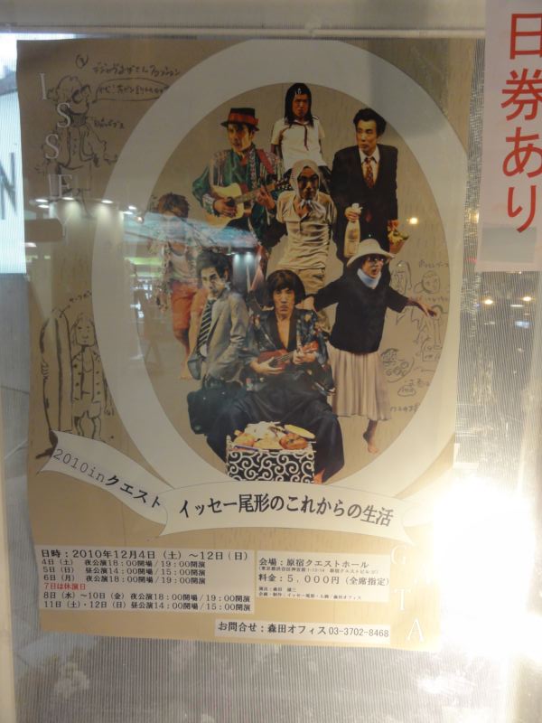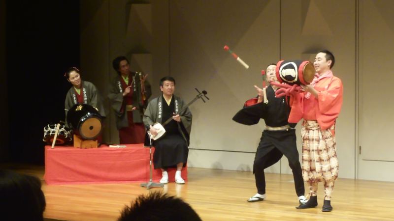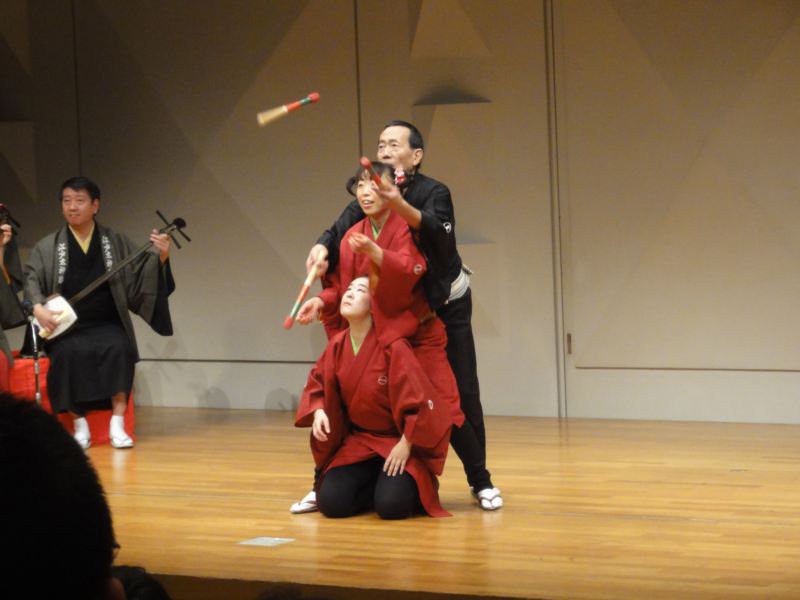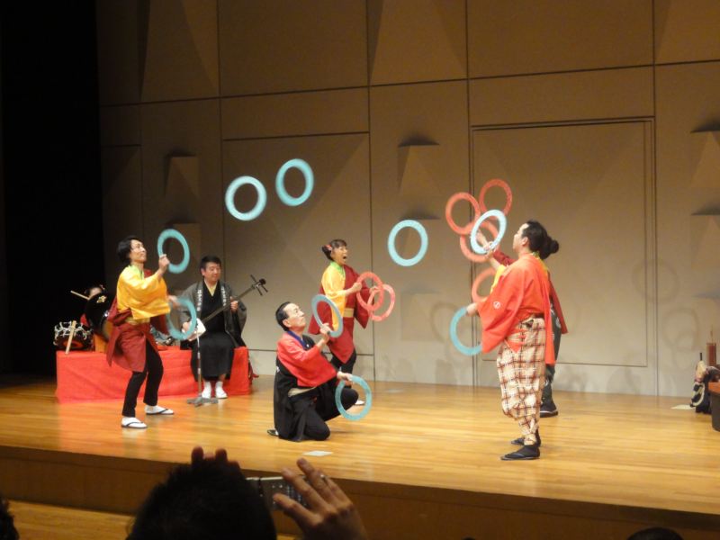題名:江戸太神楽其の十六 日時:2010年12月16日18:30-20:25(途中休憩あり) 劇場:文京シビックホール小ホール 料金:前売2000円(招待券で見させていただきました) 番組 日舞+二本撥 うんぷてんぷ (仲入り) 獅子舞 撥の組取り 茶番 一つ鞠 桑っぺら 曲独楽 輪の組取り 8割程度の入り。TV撮影もはいっていました。いつ放映されるのでしょうか。 オープニングは菊仙さんの日舞に二本撥の曲芸をいれたもの。なかなか良い感じの 趣向なので、来年はバージョンアップしたものを見せてほしい。舞の中に投げもの をちりばめればもっとおもしろいかも。 うんぷてんぷは初見。太神楽、バランス芸・ハンドトゥハンド、三味線・バイオリン のユニット。傘回し、バランス、花籠鞠、デュオ演奏、咥え撥土瓶、ハンドトゥハンドと その間にちょっと寸劇、バラエティに富んでいて見あきない。 生音の威力はすごいですねえ。 二部は万燈を持って客席内練り歩きから。社中全員での獅子舞と演奏。 次は撥の組み取り、3人で3本から6本、2人で6本。 茶番は親方と仙次さんによる太鼓の曲打ち。いいなあ曲打ち。 一つ鞠は花仙さん、衣紋流しに挑戦してちょっとがんばりましょう、 来年はちゃんとやるので皆さんきてくださいw くわっぺらはいつもどおりはらはら。 曲独楽は小さい子にお手伝いしてもらって糸わたり、よくやった>ぼうや 最後はキャスト総出で三本締め。 来年も楽しみです。 PR 題名:イッセー尾形のこれからの生活2010総決算! 日時:2010年12月6日19:00-21:15 劇場:原宿クエストホール 料金:前売5000円 座席:H19(右側ブロック通路側) 番組:(私が勝手に名付けました) 中学生少女恋愛告白される 似てないビートルズの店 リニューアル三越訪問するおばさん お受験の子供に囲まれてホテルで朝食をとる爺さん コピーライターのおじさん、女の園で苦闘 薪割りの爺さん 天草五郎 ひとみのショー 久々のイッセー尾形です。劇場ロビーで食べ物飲み物の大判ぶるまいは健在。 ワイン、紹興酒、おにぎりなどがあり、座り込んでしまって飲んでいるひとも。。 食い物飲み物あると祝祭的な気分になれて幸せ。 前説なく舞台が暗転し、明るくなると女子中学生の制服の後ろ姿、ふりむいた途端に 客席から笑いが飛び出しました。リボンまで振り回してみせましたよ。 いつも通り舞台の上で生着替え、次はいかにもビートルズっぽいなあと思ったら やはりビートルズの物まねバンドが今後の方針を悩んでいるところでした。 リニューアル三越に来たのは娘に帽子を買ってやろうとするおばさん、人ごみに押さ れてあっち行ったり、こっち行ったり。優雅に朝食を取ろうとする爺さんは行儀悪い 子供に文句を言うくせに、当人が輪をかけて行儀が悪い。。 コピーライターのおじさんは、和菓子のコピーと温泉のコピーを女子社員と一緒に 作ろうとしてますが、センスがちょっと。。。 薪割りの爺さん、よぼよぼな癖に薪を割る時だけシュタッ! 天草五郎は連載ものらしく、始まったとたんに大きな拍手。たくさんの仮面を前に 椅子に座り、次々と仮面をかぶって一人芝居をするという、昔ならば百目といった 芸でしょうか。すげーたわいもない筋書きなのに笑えてしまいます。場面転換が 起きてさてこれからどうなる?と言った時にベルがジリリリリ、おあとは次回だ そうで Orz 最後はドレスに綿入れを着たばあさんが、ウクレレ抱えて北の場末キャバレーで ライブのピンチヒッター。いかにもあるあるといった感じの歌詞ばかりです。 あっという間に終わった2時間でした。長いこと見てなくて久々に同じホール で見ると何やら時の流れを感じてしまいましたよ。 題名:ジャグリングステージ チャンネルppqp 日時:2010年10月30日 17:00-17:50 劇場:調布市 せんがわ劇場 料金:無料 座席:客席中央 監督・演出:瀬田カズヒロ 助監督:iku 演出:Poikeda 出演:にしのじゅんじ、田中ヤスト、岡本飛び地、佐藤ゴロー、石原ユキヤ 市松、暇人久町 音響:球磨川至 照明:ゆず 運搬:植野 撮影:淡路達人、糟谷 受付け:おのあ、ゆい 開場誘導:植野 チャンネルppqpに寄せて(監督 瀬田カズヒロ):(公式Webより) 今回のステージは、道具を操る(=ジャグリングする)ことによって見えてくる 「 形、パターンとそのイメージ 」がテーマです。 道具をとにかくたくさん投げる、ではなくて、ある道具をある条件で操った時に見 えてくる形や、パターン。そして、それはただの形ではなく、音楽や照明によって 何かのイメージに結びつくかもしれません。 形、パターンについて表現、挑戦するステージに。 いろんなイメージが、チャンネルの様に切り替わっていくステージに。 番組:(公式Webより) 1.オープニング ppqpの文字を模した道具を用いたパフォーマンス。 ステージテーマであった、ジャグリング、パターン、形(イメージ)を木琴の音 を節目に、さまざまな動きで表現。演者が話しだしたり、笑えたりと、このステー ジの要素がすべて含まれている重要な演目。 出演:瀬田カズヒロ iku Poikeda 岡本