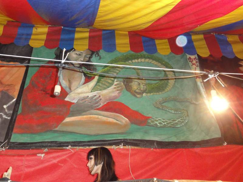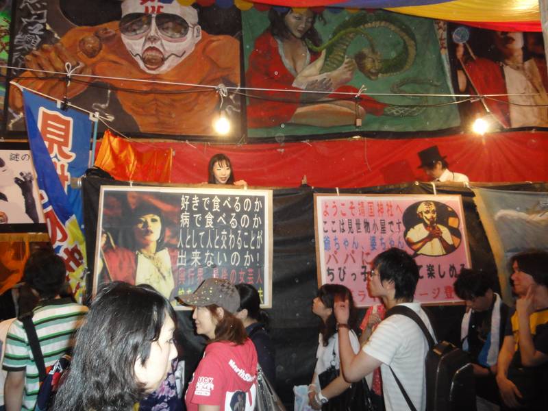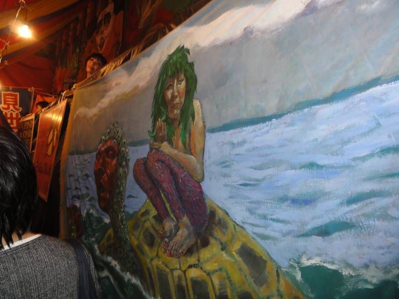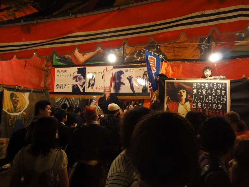 題名:見世物 日時:2010年7月16日20時10分あたりから20分間 劇場:靖国神社境内特設テント 料金:大人600円 番組: 奇術:摩訶ダミアン 空中回転少女:A-GEHA 謎のコレクター:銀子 蛇女:小雪太夫 おばけやしきの隣で上演しておりました。入り口前に長蛇の列。 出演していないキャストは表に出て顔をさらしています。 みんなびじーん。 小屋の前で15分くらい並んで入場、4つの番組をエンドレスでつないで やっているので適当なタイミングではいって適当なタイミングで出るという 形です。もちろん全員立ち見。 小屋の前にはあやしげな絵がたくさん、こういう絵が昔の見世物には つきものだったのですね。レトロな風情がわくわく感をより高めます。 ここが入り口、ここから先は撮影禁止です。 私が中にはいれたときはちょうど奇術の真っ最中でした。白紙の本に絵がはいったり、 どこからともなくハトが出てきたり。。 2番目は上からたらした布に絡み付いての曲芸、いわゆるティッシューというやつです。 フープも天井近くにとめてあったので、ティッシューにたら一人ブランコするのかも しれません。このひとかなりきれい。 次は謎のコレクター、えーとどういう芸ですか?透明な箱の中にさそりを入れて舞台 にもちこみ、客に見せました。箱を長い棒でつるして客の頭上を経由させてよくみせ ます。次には箱からだして自分の太ももにおいたり、指でふりまわしたり。この方もきれい。 そして最後はおまちかね蛇女の小雪さん、この方が一番若い! まずはチェーンネックレスを鼻からいれて口にだす!! ぶるんぶるん振り回す。そのうえそのチェーンを使って水のはいったバケツを持ち上げる! いやーすごい鼻力です。 最後はお待ちかね、蛇女!真っ赤な襦袢を着て、生きた蛇を食べます!!細長い蛇の胴体を食いちぎったかと思ったら胴の 方からちゅうちゅう生き血をすっていました。かなーり壮絶な光景。これで演者が若くて かわいいのですから、日本の見世物業界もまだまだ大丈夫!? おなかいっぱいででてきましたよ。 PR 題名:おばけやしき 日時:2010年7月16日19時45分ごろから10分程度 会場:靖国神社境内特設テント 料金:大人500円 靖国神社みたままつりでの上演。みたままつりはめちゃくちゃな人出、そんなにメジャー なんですか? お化け屋敷はいるのって何年ぶりでしょうか? 押すな押すなの繁昌で、入り口の口上に惹かれて次々と人がはいっていきます。 はいった先は細い通路がうねうねと曲がっており、ブラックライトで照らされておりました。 そして時折おばけーがうぉーっと飛び出してくる!! 何出てきたかよくわかりません(^^;)はいっている客全員がハイテンション。 いやー手作りでアンティークですが、たのしゅうございました。 題名:HIRO-PON ソロ公演「SEX, HIRO-PON, MIME & ROLL」 日時:2010年6月26日13:00-15:15(途中休憩あり) 劇場:博品館劇場 料金:4500円 座席:G14(7列目中央) 出演:HIRO-PON(がーまるちょば) 場内ほぼ満員。 開演前にはマイクスタンドとエレキのアンプが舞台中央においてありました。 舞台にHIRO-PONがスッと現れてエレキを構えて開演。番組ごとに完全に暗転し、 しばし時間をとるために?音楽が流れていました。 【第一部】 『SEX,HIROPON,MIME&ROLE』 オープニングエレキギター演奏。 最初は音を出していると思わせて、 時々ちょっとずつずれてそうじゃないことがわかってきます。 『罠』 暗転のBGMは「キッスは目にして」王子様として出てきて罠をしかけるのですが、 オペラ歌唱?の振り付けにはいっちゃいます。そして自分で踏んづけて、、 『太陽にほえろ!』 暗転BGMは遠吠えする犬を叩いて「太陽に向かって吠えるんだ」と強要する声。 刑事が被害者の写真をとった後、客席に降りてきて容疑者候補の写真を撮ります。 刑事のほんのちょっとした仕草で客席爆笑、間が良いんですよね。容疑者を追っか けるときにふすま芸もすこし披露。観客が容疑者として舞台に上げられ、本物のカツ 丼を食べさせられた後でジェスチャーゲームに参加させられて自白。 私が犯人です! 舞台の上でほんとにカツ丼食べてさせてました。実は太陽にほえろを一度もみたこと がないので、パロディ部分がわかりません! 『本』 公演のベンチに本が一冊放置されています。なんとはなしにそれを取り上げて読み 出す男。最初はギャグ満載らしく大笑いしていたが、どんどんシリアスになっていき。。 最後は周りが真っ暗、本から漏れる明かりだけで顔が照らされ、、読み終えたときは 髪の毛が真っ白。よぼよぼの爺さんのようになって本をおいたままベンチから去りま す。 ベンチにおいた本がバトンのように次の人へとわたっていくのです。 『ダメだこりゃ』 エアードラム・エアーベース・エアーギター、エアートランペット、エアーキー ボード、 を一人で演奏していきます。途中までまじめに?エア楽器を弾くと後は 自動演奏! そして最後にボーカルがでてきたところで暗転! 『かごめ かごめ』 殺人事件の犯人と出会ってしまった