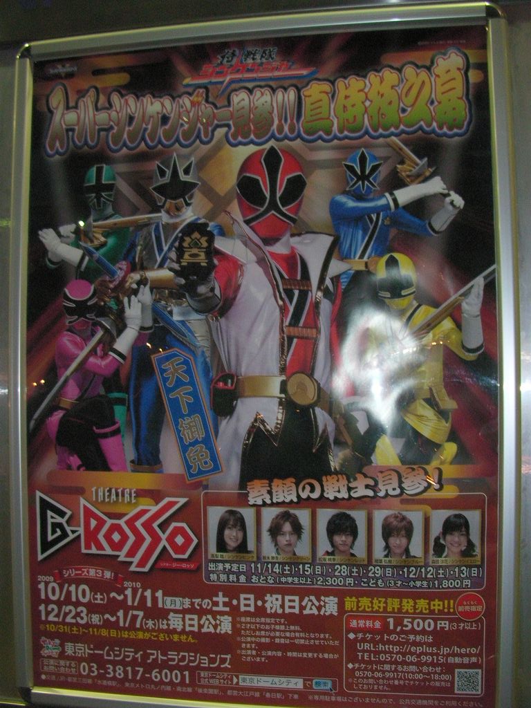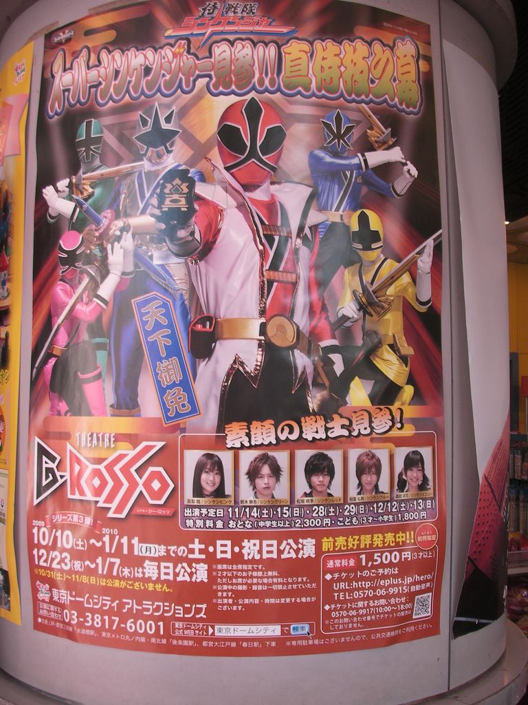 題名:侍戦隊 シンケンジャーショー第3弾「 スーパーシンケンジャー見参!!真侍技之幕」 日時:2009年12月12日14:50-15:30 劇場:シアターGロッソ 料金:2300円 座席:O列センター(劇場内まんなか) 出演:松坂桃李・相葉 弘樹・鈴木 勝吾・森田 涼花・高梨 臨 2度目の素顔の戦士たちです。 ようやくトーキョードームポイント確保! 入り口のちょっと手前、レッドの後ろにポイント加算機がありました。いままでは レッドにみとれて気がつかなかったのね。しかし私以外に誰もポイントゲットして いなかったのはなぜ?それほど認知度低いの?>TDP。ちなみに20ポイントでした。 オープニングで黒子ならぬ桃色子さんが、みんなでもじからの練習、そこで私に座っ ていた坊やが書道フォンを取り出してかっこよく、火!、なりきり感満点です。 私の隣の母子連れ、どうみてもお母様が子供をだしにしてきたとして思えませんで したよ。戦士たちが登場するごとにお母様がわーわーきゃーきゃー、時折お母様は ほらほらと子供を抱き抱えて戦士たちを見せようとするけれど興味なくむずがる子供、 3ー4歳くらいかなー、いやーお疲れさまです>お子さま。 舞台はお約束通り、今回はちょっと引いた座席からなので全体がよく見通せました。 素顔の戦士たちの動きもこころなしかよくなっていたような気が。 変身のシーンはあいかわらず見事なすりかわり。はりぼて巨大ロボットがなくなって 映像にかわってしまったのはやっぱり寂しい。あのチープさが好きだったのですが。。。 カーテンコールではかんだり笑いが止まらなかったりしてぐずぐず、きわめてアット ホームな終わり方でした。次回くるのはいつかなー PR 題名:ZED(ゼッド) 日時:2009年12月10日15:00-17:06(途中休憩あり) 劇場:シルク・ドゥ・ソレイユ シアター東京 料金:プレミアビュー15000円 座席:Cブロック6列50番(中央前方ブロック6列目右より) URL: http://www.zed.co.jp/home.php Guide and Founder: Guy Laliberte Artistic Guide: Gilles Ste-Croix Executive Producer:Francois Macerola Writer and Director:Francois Girard Director of Creation:Line Tremblay Set Designer:Francois Seguin Costume Designer:Renee April Composer and Arranger:Rene Dupere Lighting Designer:David Finn Choreographer:Debra Brown Choreographer:Jean-Jacques Pillet Sound Designer:Francois Bergeron Acrobatic Equipment and Rigging Designer:Scott Osgood Acrobatic Performance Designer:Florence Pot Make-up Designer:Eleni Uranis Production Manager:Michael Anderson コンセプト:(公式Webより) 人生は冒険。そこに、 詩 ( うた ) が生まれる。 彼の名は、Zed(ゼッド)。彼が旅する世界は、天と地。そこであらゆる生命と、大いなる 女神と、スフィンクスと…命の躍動に出会います。 さまざまな経験を重ね、彼自身が成長すると同時に彼が生きた天と地という2つの世界 がひとつに結ばれます。 彼の経験と彼が生きた世界のすべてが、心で感じずにはいられないもの。 この叙情あふれる冒険の旅を通じて誰もが人間の、人生の経験の本質に迫っていくこ とができるでしょう。 アクト: バトン(Batons) すべての始まり、火のまじない、二つの世界の出会い アーティストの体と一体となり、暗闇の中で存在感を放つ美しいバトン。アクロバットとダ ンスを組み合わせることで三つのバトンを自由自在に操り、機敏さと、類ないコントロー ル能力で観るものすべてを魅了します。 演じるのは、出演者の中で唯一の日本人であり、バトントワリング競技で世界チャンピ オンに輝いたトップアスリートです。 バンジー(Bungee) 天の誕生 ステージの遥か上空から四人のアーティストが飛び降りてくるバンジーパフォーマンス。 まるで熱帯魚を思わせるような鮮やかで美しいフリンジが、アーティストのアクロバティッ クで華麗な動きとあいまって、観るものを幻想的な世界へいざないます。 ラッソ(Lassos) 地の誕生 武術の才能をもった六人のアーティストによる投げ縄のパフォーマンス。ラッソロープを 巧みにコントロールしながら披露する力強いアクロバットは、地の誕生を表しています。 ポール&トランポリン(Poles and Trampoline) 天に向かって 「ZED?(ゼッド)」でしか観られないこのパフォーマンスは、チャイニーズポールとトラン ポリンの異なる演技を融合させました。アーティストは、天にいる妖精に誘われ空中高 く飛び上がり、躍動感あふれるアクロバットを披露します。 ソロ・ティシュー(Solo Tissue) 初めての光景 天から下がる布に包まれたアーティストが、優美なアクロバットで主人公Zed(ゼッド)を 魅了します。空中で繰り広げられるパフォーマンスは、息を呑むようなバランス力と柔軟 さがあり、劇場を幻想的な雰囲気に包み込みます。 ハイ・ワイヤー(High Wire) 炎の振り子 ステージから8メートルの高さに張られた細いワイヤーに、燃えさかる炎の振り子が揺れ る、緊張感あふれるセットで繰り広げられるパフォーマンス。卓越したバランス感覚で、 三人のアーティストは死をものともしない跳躍やアクロバティックな動きを披露します。 ジャグリング(Juggling) ケルヌーンの火 地中深くに存在