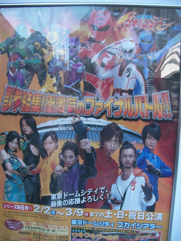 題名:獣拳戦隊ゲキレンジャーショー第6弾 「獣拳結集!衝激気のファイナルバトル!!」 日時:2008年2月16日10:30-11:05 劇場:東京ドームスカイシアター 料金:1500円 座席:3列目右ブロック 出演: 鈴木裕樹さん(ゲキレッド役)、福井未菜さん(ゲキイエロー役)、 高木万平さん(ゲキブルー役)、三浦力さん(ゲキバイオレット役)、 聡太郎さん(ゲキチョッパー役) 荒木宏文さん(理央役)、 平田裕香さん(メレ役) 概要:(公式Webより) メレがなぜかムザンコセ、リンシーたちと闘っている。 ゲキレンジャーが登場しメレに加勢すると、 そこへ現れた理央がジャンに最後の決闘を申し込んできた。 メレは2人の間にわって入り、闘う必要はないと2人を止める。 これまでの激・臨の闘いも、全てはロンによる策略だったのだ! そのことがわかった7人は、激・臨のわくを越えて全員の力を合わせ、 不死身のロンとのファイナルバトルに挑む!! マイミクさんが朝8時から並んで整理券をとってくれたおかげで 良い席でみれました。 最終的には3/4程度の入りだったので、座席位置さえ気にしなければ 開演直前にきても見れましたね。前の方にゲキバイオレットとゲキ イエローのコスプレした人が座ってましたよ。 オープニングはメレ様登場。いやーかわいいです。 それから素顔の5戦士たち、あいかわらずゲキチョッパーの突きと 蹴りが一番きれいです。 最後に理央様登場、一番の拍手が巻き起こります。誰を見に来てる のか明らかな状況ですね。 ゲキレンジャーたちがやられてしまいそうになったときに、メレ様が 「子供たちの声が聞こえないのか」、そこでバエ登場!子供たちに がんばれー!!と叫ぶのを促すのでした。もちろんそこでもりもり 挽回するゲキレンジャー。素顔の戦士たちもきれいに飛ぶのですね。 ロンは変身スタイルのみでの登場。 変身後の新しいパターンとしてはゲキレッドが命綱付で登場し、 右サイドにある塔をするするするとよじ登っていくシーンがありました。 最後は全員でロンを倒して大団円。旅立って奈落に飛び込む理央様 に続いて、かわいこぶりっこで飛び込むメレ様に胸がきゅん。 カーテンコールは、メレ様がうれしそうに理央様と手をつないでお りました。ゲキチョッパーが「メンチカツ好きな人!」と言って手 をあげさせました。 そして理央様は、、、なんか挨拶がすごく苦手なようで、キャスト皆が 取り囲んでわくわくしながら見ているところで「来年もよろしく お願いします!」えーと来年てなんですか? となりで見事にメレ様がらぶらぶでフォローしておりました。 メレ様は「理央様が好きな人!」と言って手をあげさせたら、かなり の人があげてましたよ。メレ様は弁舌さわやかで理央様と好対照。 いやー見に来てよかった! 理央・メレでスピンアウトストーリー作ってくれないかしらねえ。 最後にはゴーオンジャーが登場しました。明日からですねえ。さて どんな物語になるのかな。 PR 題名:第76回懐かしい江戸へいらっしゃいの会 「どんつく、どんつく、どどんがどん」 日時:2008年1月27日18:00-19:30 劇場:文祥堂イベントホール 料金:3500円 座席:最後列右端 出演:丸一仙翁社中(仙翁親方、仙若、朱仙、花仙他) 番組: 獅子舞 傘の曲 曲独楽 曲撥 一つ鞠 水の曲 昨日みた電王ファイナルステージと比べて、観客の平均年齢が 贔屓目に見ても40歳は違います。私が下から3番目くらい? 開演5分前にたたく二番太鼓から開始! 「芝居小屋の一日」 江戸太神楽の本芸は獅子舞なのですが、今回は芝居小屋の一日という 想定でみせてました。 1番太鼓、 大太鼓をどーんどーんどんとこい、とたたく。 芝居小屋には必ずやぐらを組んであって太鼓がある。 開演1時間前に30分くらい叩いていた。それが芝居があるという合図。 2番太鼓、閉め太鼓、おたふく来い来い、と叩いている。 最後に撥を入りの形にして縁起を担いでいた。 能管、締め太鼓、大太鼓で中入り。 追い出し太鼓、でてけでてけ、てんてんばらばら、からからから、 錠前を下ろす音まで演じました。 親方が太神楽をはじめたのが昭和25年。正月の門付けは1日40軒で 20日間かかったそうです。獅子舞は、花仙さん。 日本の曲芸は、ひざと腰を使って動かない、上半身だけで芸をする のがポイントだそうです。 太神楽に関する質疑応答。回答は親方。 Q:太神楽、にてんがはいっているのはなぜ? A:8代将軍あたりから太にかわった。それまでは代神楽だった。 江戸っ子の粋、太鼓の太いを使ったのではないかと 思うのだが、すぐにはわからない Q:丸に一の文字は? A:江戸時代の太神楽の名称。 実はつに一になっている。 津で一番で丸一となっていたらしい。 叩いている桶胴自体が丸一という名前である。 Q:里神楽との違いは? 里神楽は地付のもの。町で残している神楽、里で残しているから 里神楽。国の重要無形文化財になっているものもある。 里神楽はもともとは獅子舞なかった。 Q:曲芸以外の芸は? A:茶番がある。 一軒のうちで2時間くらいやらされることがあっ