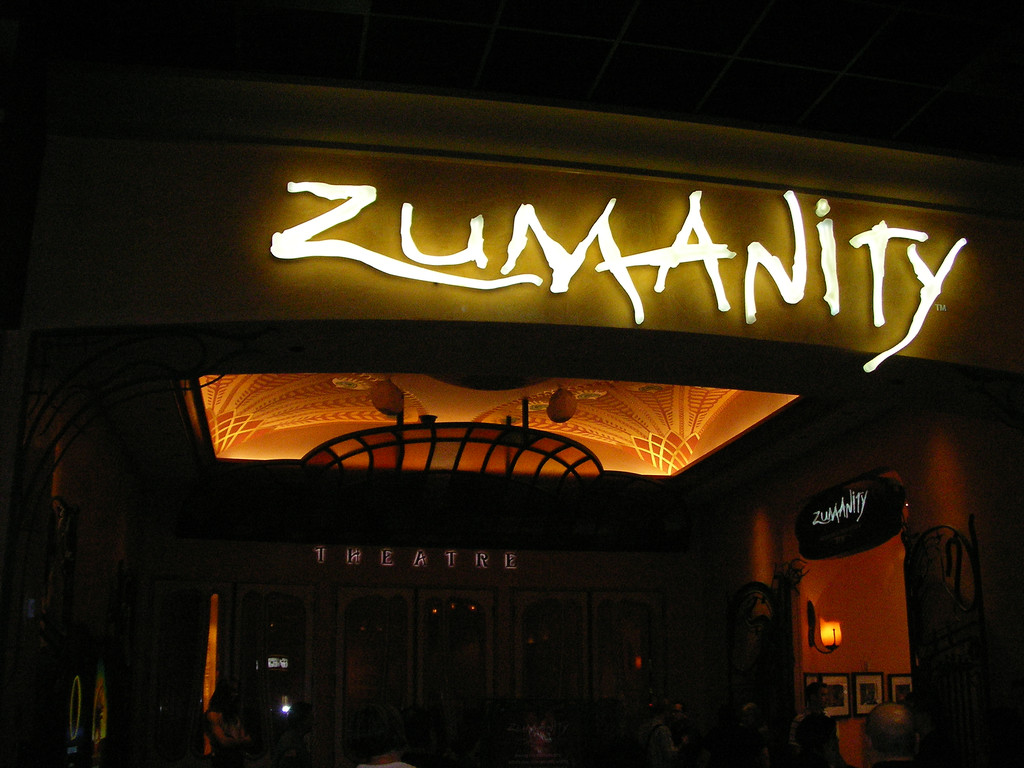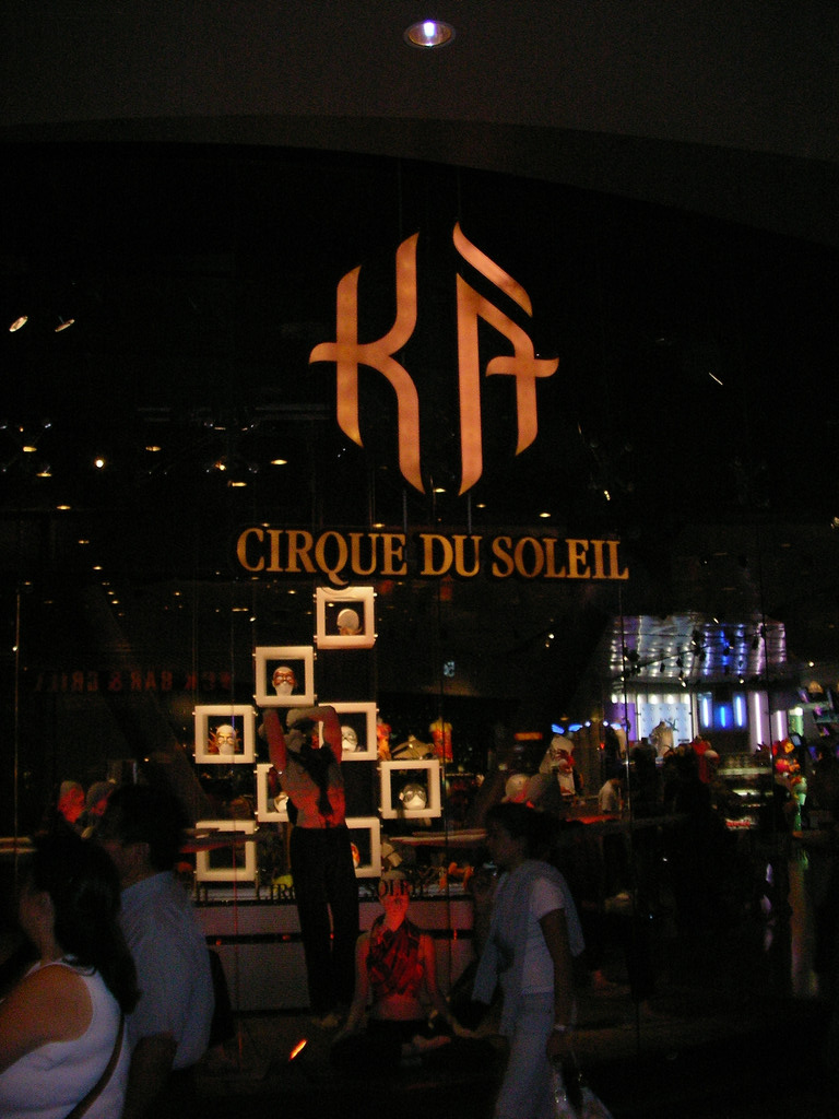 日時:2006年8月3日22:30-24:05 劇場:Jubilee Theater? at Bally's Las Vegas 料金:82USD 座席:B18 (通常の観客席2列目センター) 番組: Act1 Showtime! Putting It into the RIght Vernacular Act2 The Unbreakable Antics of The Long Twins Act3 Samson and Delilah Tonight, a Lesson from Acncient History Act4 An Aerial Expression of Strength and Grace Stoyan & Alexei Act5 Titanic Away We Go on the Mighty "Unsinkable" Ocean Liner Act6 Two-Time World Champion Jugglers Doubble Troubble Act7 The Finale A Tribute to Fred Astaire and Ginger Rogers 2日前にホテルのBOXOFFICEで購入。 ラスベガス最後の夜です。宿泊しているホテルにある劇場なので、パッキング やレポート書きなど帰国の準備をして一風呂浴びて、開演直前に劇場へごー! この劇場は前方がテーブル席になっており、床が舞台より相当低く なっています。長細いテーブルが舞台と直角に配置されており、 観客は座って横を見る形となります。椅子を舞台の方に向けるだけの 空間的余裕がありません。椅子に座ると舞台の床が首の高さになります。 ぜひともかぶりつきで見たい方は別ですが、そうでない方はちょっと 後ろの通常の劇場席の方がずっと見やすいでしょう。 テーブル席の最後列には舞台に正対しているソファ席がありました。 まあそこならいいのかもしれません。 客席は左右の端と後方通路のすぐ後ろ1−2列を除いて満席。 テーブル席は6割程度の入り。さまざまな人たちが客席におり、ほとん どホテルロビーの人ごみがそのままうつってきてしまったような雰囲気 です。ラスベガスにきたので何かショウを見たいということでくるひと が多いのでしょうか? 私の左右に人がこなくてらくちん、と思っていたら開演直前に となりにおばさんがきました。このおばさんの香水の臭いが強烈!ほとん ど毒ガスの域に達してます。狭い客席にはいるのに常識というものを もっていないのでしょうか。ぷんぷん。劇場内に少しだけ対流があり、 少し楽になったりいっそう苦しくなったりを繰り返していました。 オープニングはまず天井から3人降りてきました。天井に丸い穴が開いて それがそのまま下がってくる感じです。私の頭上には女性、裸のおっぱい を真下から見るなかなか得がたい経験です。そして左右の上方にも舞台が 登場。前方舞台も左右の袖までキャストが登場し、舞台に半円形に 囲まれる形になりました。とにかく大人数が同時に舞台にでる、 キャストが多ければ多いほど嬉しい私にはとてもすばらしい舞台です。 男性はYシャツ姿、女性はきれいなおっぱい丸出しで背中に羽など色々 しょって頭に大きな被り物。これほどたくさんの女性のおっぱいを見た 経験は今までにありません。おもわずかぞえちゃった、24人。彼女たち が舞台の両端にはけたあとに、舞台の後方の床がめくれあがるとそこは鏡、 せり上がりの床を上から見せる形になりました。もちろんせりあがって くるのもおっぱい丸出しの美女たち。これが15人。これでもかこれでも かというおっぱい攻撃?です。なんだかもうおなかいっぱい(^^;) しかしいかにも巨乳というひとはいません。 ブラジャーつけているキャストとそうでないキャストがいるというのは どういう色分けなんでしょうね。どうも歌手、主役ダンサー、ダンサー、 おっぱい担当、というふうにわかれているのかもしれません。 次は中国系のふたりによるHand to Hand。筒の中にお尻を突っ込んで 動くシーンがなかなかコミカルで面白い。もちろんおっぱいは出て きません。 サムソンとデリラは、色気でだまして髪の毛切って、最後には建物を 壊すというところをやってました。最後の建物ががらがら崩れ落ちる のはけっこう大掛かり。セットも大幅に入れ替え、おっぱいもたくさん。 その次はまた気分転換、男性ふたりによる上からたれた紐を使った空中 でぐるぐるまわり。テーブル席の上空まで飛び出していました。 次はタイタニック、乗船から船内パーティ、そして船が沈むまで。 左右の舞台も使っていくつもの場面を描いていました。沈没シーンの 機関室では本水と花火を使って迫力を盛り上げています。そして巨大 な船の模型が沈んでいく。。。おっぱいはなかったのでミュージカル を見る目で見てしまってました。凄いという評をいくつも読んでいた のでちょっと肩透かしの気分。えーとブロードウェイミュージカルの Titanicと比較しちゃいかんのですよね、きっと。 最後の色物にはふたりのジャグラー登場。リング5個のカスケードから、 それを全部相手に投げる形でのパッシングで始まり。パッシングの 最高は全部10枚?目がついていってません。ひとりが3枚を同時に 投げてもうひとりがそれを右手、首、左手で1枚ずつキャッチする というのを連続で行うのはとてもきれい。ボールはバウンズで、 フォースの5個をきれいに見せてました。足の下で観客拍手。 クラブは3本カスケードから1本テイクアウト、このタイミングが まことに見事でまったくぶれを感じさせません。ランアラウンドも まるでひとりでカスケードをしてい
