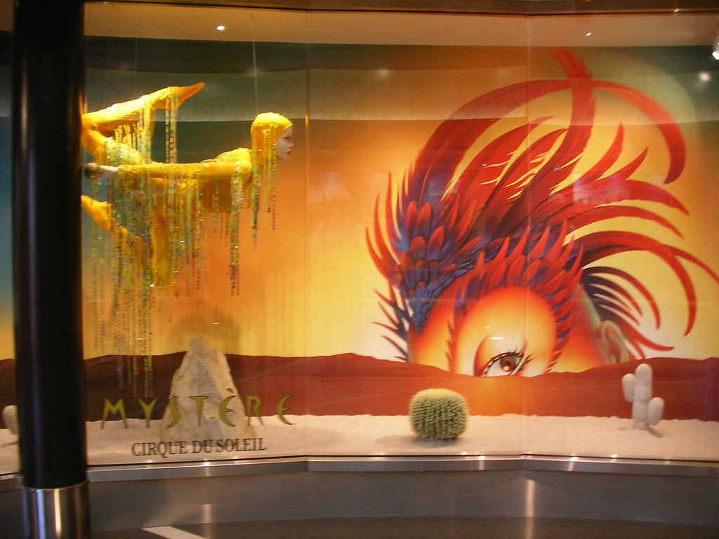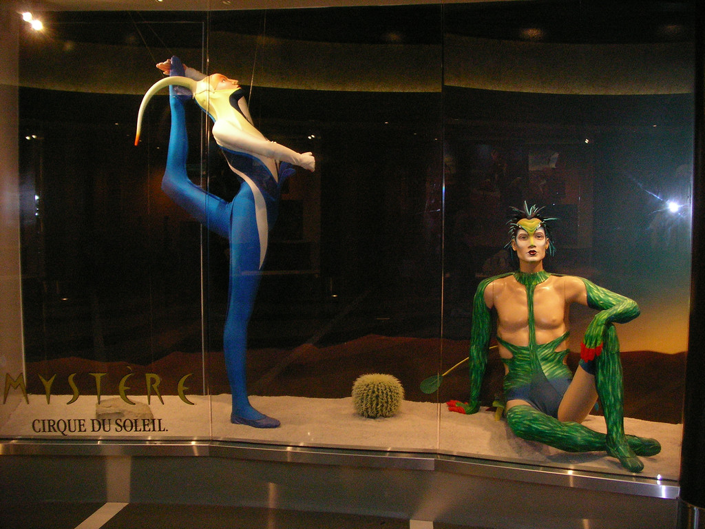 題名:La Femme 日時:2006年7月28日22:34-23:40 劇場:La Femme Theatre @ MGM Grand 料金:半額29.5+手数料・税7USD 座席:210ブロック左より角の場所 ショッピングコンプレックスのファッションショー内にある ディスカウントチケットやで衝動的に購入。 1時間前までに劇場窓口でチケットと引き換えということですが、 ひとりだったらまー30分前でも大丈夫でしょうということで 購入しました。座席はテーブル番号とその中の番号で指定されて いましたが、基本的にテーブル単位でしか決まっていないようです。 ようするにテーブル内では早く入場した者順ということですね。 もっともそんなに大きいテーブルでないので、いついっても同じと もいえます。全体として半分くらいの入り。前方のテーブル席は 舞台よりだいぶ低く、舞台を見上げる形になります。私が座った テーブルは一段高くなった舞台とほぼ同じ高さで前方テーブル席 がまったく邪魔になりません。見るならこの場所ですね。劇場内は 思ったより狭く、収容人員として300-400人といったところでしょう。 客席のカップル率高し、ひとりで見に来た私の肩身が狭くなるくらい。 こういう大人のショーを見るのに手持ち無沙汰というのもなんなので オリジナルカクテル 10USD を頼んでみました。お土産グラス付で14USD. この料金、税、チップ(17%!)込みだったのね。暗いところで 伝票がよく見えなかったので、この金額にチップを追加して払って しまいましたよ。スタッフも愛想が良かったわけだ。 1ドル余分につけて損した気持ち。。 飲んだカクテルの名前はDejuvu, シャンペン、ラム、オレンジジュース その他でオレンジベースのちょっと甘めのカクテルでした。お土産 グラスはかわいいので割らずに日本まで持ってかえる自信があれば 買ってもいいでしょう。 オープニングは白黒映画で本家?クレイジーホースの説明、楽屋裏 までカメラが入り込んでいきました。雰囲気はパリ。 舞台の最初は宮殿衛兵の縦長帽子をかぶっての群舞、もちろん 衣装は極めて限定された(^^;)褌スタイルです。ピシッと敬礼すると おっぱいがぶるるんと動く、というのを繰り返し行っていました。 見たところ、さほど巨乳はいません。 舞台の床は、前方に一人乗るとちょうどの周り舞台が3つ、後方には 舞台袖まで動く歩道が2本。舞台袖でポーズを決めてそのまま舞台に 動いて出てきます。舞台の高さもきわめてせまく、普通に立って すぐ上が天井といった感じです。ほとんど額縁ショーを見てると いってもいいでしょう。 そしてこの舞台にあたる照明が隠微、けっして全体を明るく照らし たりはしません。1点のみにスポットをあてたり、格子状に 模様をつけたり、、、この照明の中で手をかえ品をかえ、脱いだり、 半裸で踊ったりするわけですが、なんといいますかエロスというより 女体に映る照明の美しさをオブジェとして味わっているという感じですね。 その中で一番興奮したシーンは、舞台をより狭く使ったものでした。 幕を舞台の上から真ん中まで下ろし、真ん中にひとひとりが踊る分を 除いて左右も幕をしてしまいます。その中でダンサーの パンティ、ガーター、ストッキング、ヒールの下半身だけが舞台に 見えるのです。照明とあいまってそれだけですごくエロチック。 そこから踊りながらガーターはずしてパンティ脱ぐのです。 ダンサーをひとりひとり紹介するシーンもありました。ちゃんと着る もの着て、マイクでプロファイル(といってももちろん妖しいものですが) が述べられていました。合間には色物がふたつ。ひとつは 手や口からカードが際限なく出てくるマジック、もう出すだけを ずっとやるのは見ていてすがすがしい。客席に出たカードをきれいに 投げてたりもしました。ふたつめは自分の顔と両手で3頭身人形を 作ってのマイケルジャクソンの形態模写、Smooth Criminal, Beat It. けっこうよくできて笑っちゃいました。 この舞台は70分と短いですし、半額券も出ているので主だったショーを 見てしまった方にお勧めです。濃い劇場ファンだと大きい劇場のショー よりこの舞台の方がおもしろく感じるかもしれません。 私は日本でストリップを見に行ったことがないのでよくわからないので すが、日本でいうストリップショーとはまったく違うカテゴリのもの だと思ったほうが良いように思われます。 女性と見にいっても全然問題ないでしょう。というかカップルで行く ほうが良い気がしましたよ。 PR 題名:Mystere 日時:2006年7月30日19:30-21:00 劇場:Mystere Theatre @ Tresure Island Las Vegas 料金:150USD+E-TKTS手数料2.5USD 座席:Section 102 Row A Seat 11 (センターブロックの左隣ブロックの右端最前列) 一週間前に購入。奈落がめちゃくちゃ低いです。最前列の席なのですが、目の前に 邪魔なものが、後でキャストのお立ち台だとわかりました。 半円形の客席で、舞台上方にパイプの構築物、上方両側にバンド、上空は黄色、 帆船の柄、床は緑。開演前には客室案内係のふりをしたクラウンが