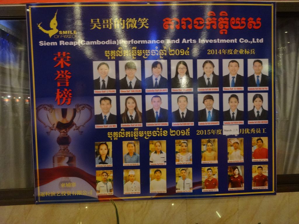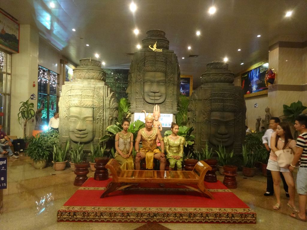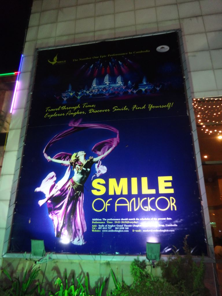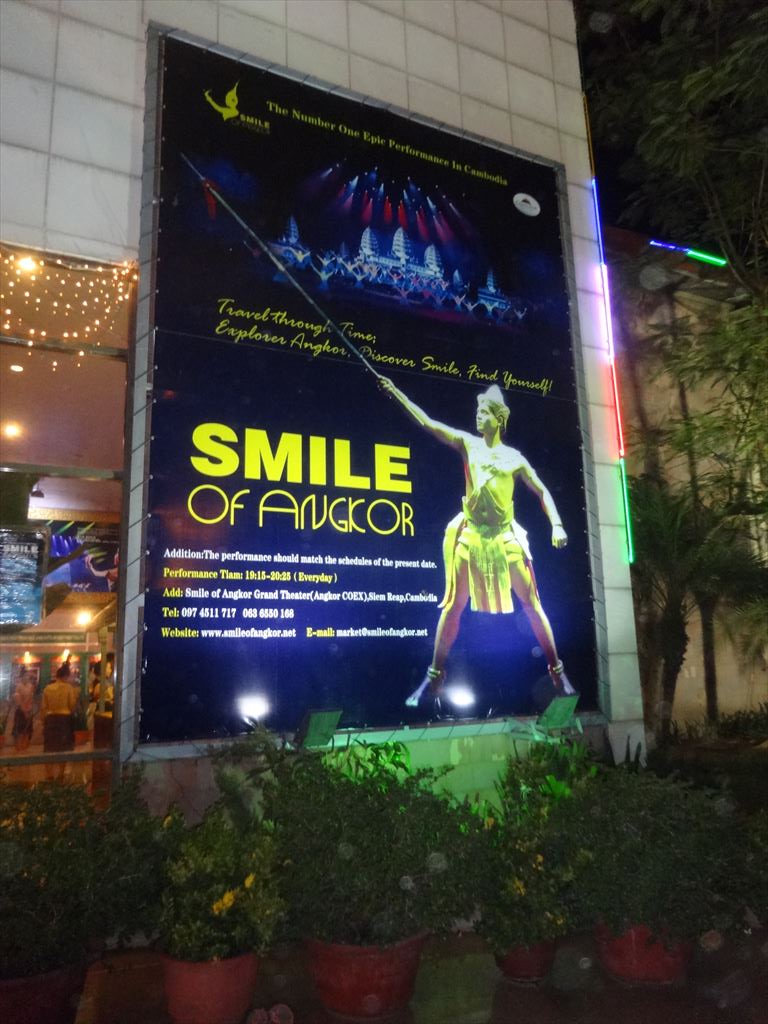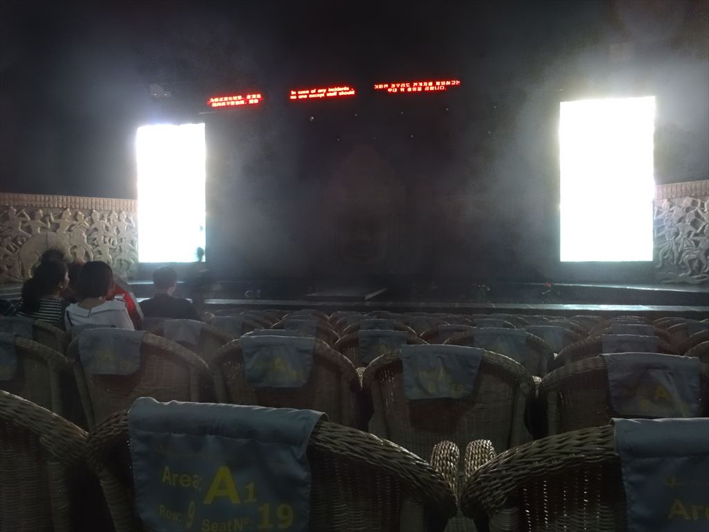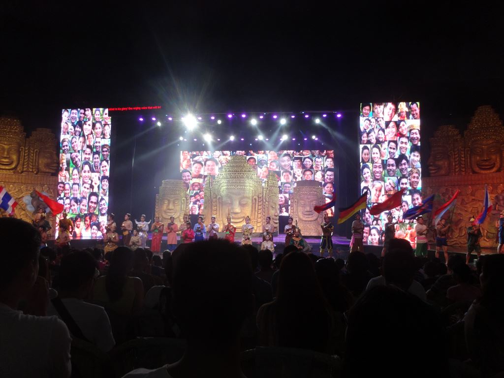 題名:Smile of Angkor 劇場:Smile of Angkor Grand Theatre(シェムリアップの街中から車で15分程度) 日時:2015年5月4日19:30-20:45 料金:Web直接予約割引25USD(定価40USD, 旅行代理店を通せばディスカウントあり) 座席:10列19番(客席中央付近) URL:http://www.smileofangkor.info/ Smile of Angkor tells the story of the Khmer empire and its wonder Angkor Vat. Travel through time and see Cambodia as it was a thousand years ago, from its legendary origins to the building of the temple of Angkor Vat. Smile of Angkor is an evocation of life in the majestic city of Angkor at the time of Suryavarman II. The show is 70 minutes long and is divided into six chapters: “Dialogue with God”, “Glorious Kingdom”, “Resurrection of the Gods”, “Churning the Sea of Milk”, “Prayer for Life and “Smile of Angkor”. Dialogue with God A child full of questions comes to Angkor and talks with God. The child travels through time, leading us on a journey to seek the mysterious Angkor Civilization. smile-of-angkor-26 jayavarman-7Glorious Kingdom Over one thousand years ago, a great Kingdom established its capital in the forest, creating a heavenly life for both men and gods. GO UP Churning the Sea of Milk This dance describes the legend of a war between the gods (devas) and the demons (asuras) fighting for Amrita, the Elixir of Life. smile-of-angkor-07smile-of-angkor-28Resurrection of God This is one of the most beautiful and mysterious relief sculptures and statues of Angkor Vat. Stories depicted in the embossments are revived and extended through the Shiva Dance and the Apsara Dance. GO UP Prayer of Life In this beautiful world, the forest looks like heaven and the peacocks dance gracefully. Lotus is blossoming? holy praying of peace echoes in the world… smile-of-angkor-10smile-of-angkor-27Smile of Angkor By smiling, people bring happiness to each other and become closer to the Gods. This is the message of the eternal “smile” of Angkor. シェムリアップのちょっと郊外にある劇場です。 なにもないところに忽然とあらわれる光り輝く建物! もうまぶしい!大型バスががんがんのりつけてました。 ロビーでは記念撮影用スポットが!一緒に撮影するのは有料です。 スタッフもアンコールワット風。 ブッフェもあるのですが私は使いませんでした。たぶん中国風。 キャストの大部分が中国人らしい 横長の舞台もまぶしい。最初はがらがらだったのですが開演前にはほぼ満席に! 客のほとんどが中国人団体観光客らしかったです。 中身はアンコールワットの歴史をレーザー光線と中国雑技、それにアプスラダンス で魅せる、といった感じでしょうか。 とにかくひかりものがまぶしい。 坊さんの大人数での詠唱、石像のかぶりものがシーン的に面白かった。 本水もつかってます。最後には水スクリーンに映像描写も。 まあシェムリアップにいてすることがなくて困ったら見に行ってもいいかもしれません。 PR