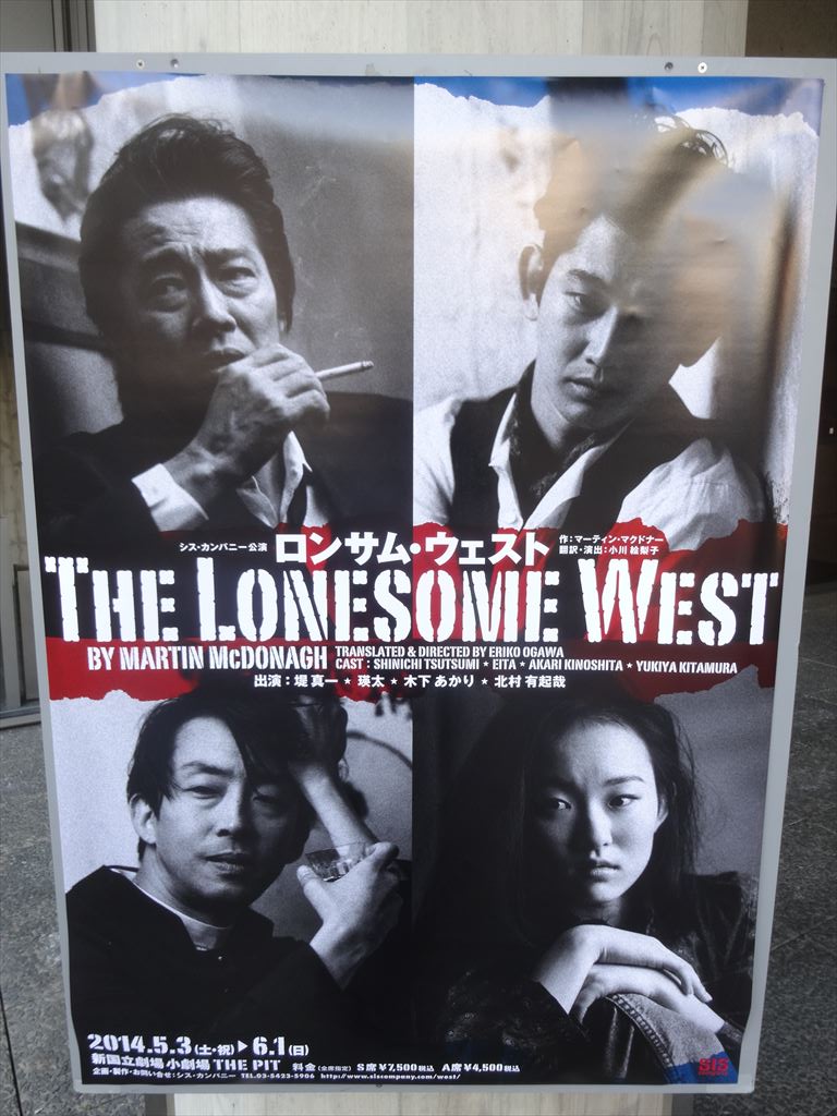 題名:ロンサム・ウェスト 劇場:新国立劇場小劇場 THE PIT 日時:2014年5月10日18:00-19:40 料金:S席7500円 座席:2列7番(2列目センターブロック) 劇団:シス・カンパニー 作 : マーティン・マクドナー 翻訳・演出 : 小川絵梨子 美術: 二村 周作 照明 : 小川 幾雄 音響 : 加藤 温 衣装 : 伊賀 大介 ヘアメイク : 宮内 宏明 舞台監督 : 瀬崎 将孝 プロデューサー : 北村 明子 企画・製作 : シス・カンパニー 『ロンサム・ウェスト』は、1996年に衝撃的なデビューを果たした『ビューティ・クイーン・オブ・リーナン』に続けて発表した作品で、1997年6月に、アイルランド・ガルウェイの劇団Druid Theatre Companyによって初演。その翌月には、英国ロンドン・ロイヤル・コート・シアターで上演され、先の『ビューティ・~』、『コネマラの骸骨』と共に“リーナン三部作”と呼ばれ、世界的に人気が高い作品です。1999年には、英国上演版と同じキャストでブロードウェイ・ライセウム・シアターにて上演。同年のトニー賞作品賞と主演男優賞にノミネートされました。 このアイルランド独特の空気感と閉塞感をまとい、登場人物4人だけで展開する物語に挑むのは、昨年一足早くマクドナー作『ピローマン』を演出し、2013年度の主だった多くの演劇賞を受賞した小川絵梨子。 翻訳にも才能を発揮する彼女が、アイリッシュ特有とも言える英語の言い回しやリズムを、どのように今回の翻訳に落とし込むのか、また、どんな切り口から攻め込んだ演出を見せるのか、ご期待ください。 出演は、毎日、殺し合いのような喧嘩になってしまう“どうしようもない”兄弟に、堤真一 と瑛太。 堤は、2012年に、小川絵梨子演出『TOPDOG/UNDERDOG』で黒人兄弟の屈折した愛憎を演じ、小川とは2度目のタッグとなります。また、2013年NODA・MAP公演『MIWA』での伸びやかな存在感が魅力的だった瑛太が、ガラリと異なる劇世界に挑戦。この手触りの異なる翻訳劇で、舞台初共演となる2人が、どんな兄弟像を見せてくれるのか、注目が集まります。そして、今回、オーディションを突破し、紅一点「ガーリーン役」を射止めたのが、木下あかり です。これまで、長塚圭史演出『あかいくらやみ~天狗党幻譚』『冒した者』等に出演していますが、このダークな物語の中で、一筋の希望を感じさせる存在の少女役で、重要な役割を担うこととなりました。最後に、物語の要を握る飲んだくれの聖職者:ウェルシュ神父には、映像・舞台の世界で、主役・脇役・ジャンルを問わず多彩な表現力を見せる北村有起哉が登場! この4人の役者たちと演出家、そして、マクドナーの劇世界との化学反応に、是非ご期待ください! ----------------- 舞台は兄弟の自宅、なんだか古い。親父の頭を銃で撃ち抜いた事故のあと 兄弟がふたりで暮らす。ものすごくバカな兄弟,どうしようもない兄弟喧嘩。 すごくやるせない雰囲気。神父がアル中、それもだめ。すごく駄目同士の 喧嘩なのにかなり笑いが起きる。すごくよくできた脚本と演出、それに役者 なのでしょう。最後は殺し合い、すごくだめなやつでまわりにいたら大変 迷惑だとおもうのにそういう状況を見て何度も笑ってしまうのはすごい。 いたたまれない重苦しい雰囲気なのに思わず笑ってしまった。 PR