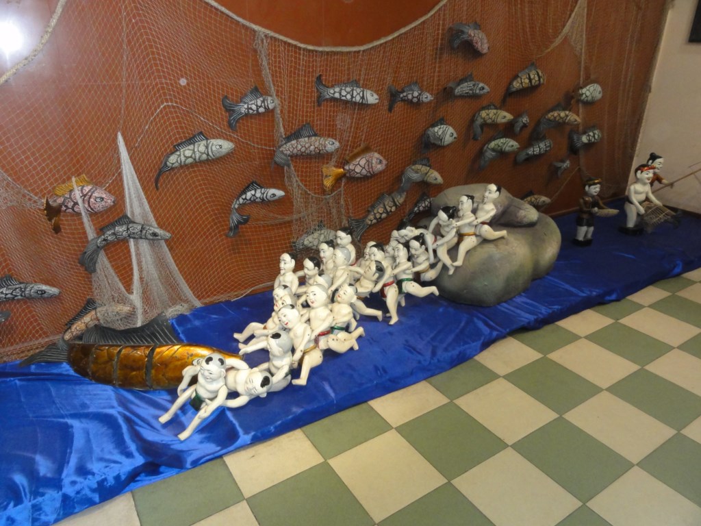 題名:注文の多い料理店 劇場:全労済ホール スペース・ゼロ 日時:2014年3月22日14:00-15:30(途中休憩あり) 料金:前売り大人4000円 座席:3列目13番(3列目センター) 劇団:結城座 原作:宮沢賢治 台本・演出:山元清多 写し絵・画 人形美術:寺門孝之 音楽:寺嶋陸也 照明:齋藤茂男 音響:島猛 装置:池田ともゆき 舞台監督:吉木均 宣伝美術:熊谷智子 写真:石川純 森眞一 坂田真理子 出演:結城孫三郎、結城千恵、荒川せつ子、結城育子 解説: 光と影で描く妖しの「写し絵」と人形たちの共演のはじまり!! 舞台はレストラント「山猫軒」 ちょっと怖くて楽しい 幻想的な結城座版賢治ワールドが炸裂します 第一部「賢さんのトランク」では、宮沢賢治の人となりを 芝居仕立てで紹介しながら「ひのきとひなげし」 「祭りの晩」を、 第二部では賢治の代表作「注文の多い料理店」を上演します。 人気画家寺門孝之の描き下ろしによる何百枚もの絵が、劇場中を ダイナミックに駆け巡ります。 暗闇から極彩色のガラス絵が色鮮やかに映し出される 結城座ならではの幻想的な世界は、2006年の初演以来 人気演目として全国各地で上演され、東京では久しぶりの上演 となります。 --- 山猫から写し絵の招待状をもらった少年が歩いていくとトランクに出会う そのなかには多数の原稿、その原稿を読むと宮沢賢治のプロフィールを スライドと語りで紹介。 雨にも負けず、、も登場。その間に写し絵で物語が語られるのでした 舞台の真ん中にトランク登場。 後方は黒い幕。そこに後程写し絵が投影されるのです。 開襟シャツとシャツとネクタイのキャスト登場、 そこで山男の話、祭りの晩、ひのきとひなげしのはなし その間にシャツ姿の少年と、コート姿のおじさんが 狂言回しとしてぼけとつっこみしながら物語がすすんでいきます 後半はずっと注文の多い料理店、 人形と写し絵が交互になります。写し絵がとても美しい。 プロジェクターを持ったキャストが幕の前にも出てきて登場。 人形と写し絵がコラボした意欲的な演出、写し絵に風情があって なんとも言えない情感をかもし出していました。 ただ、スペースゼロはそれなりに大きいので、最後列付近から 小さい人形の動きがちゃんと見えるのか心配になりましたよ。 こんな風な風変わりな演出の作品はもっと出てきてほしいものです。 PR 題名:『「同胞」神聖の言葉』と銘打った水上人形劇 劇場:タンロン水上人形劇場 日時:2013年1月1日15:35-16:25 料金:1万ドン(約450円) 座席:G-7(劇場真ん中) 制作:Hoang Tuan, Dang TIen 監督:Hoang Tuan 人形の造形と設計:Chu Luong 作曲:Dang Huu Phuc 舞踊振付:Khanh Toan 番組: 1.民族楽器の合唱 2.演目「同胞」・ベトナム人の始まりに関する伝説のひとつによりますと、龍の王様 Lac Long Quan は山の女王 Au Co と結婚して、100人の息子をもうけました。 3.労働、農業生産、戦争(魚釣り、トラとの戦い、野良仕事) 4.横笛を吹きながら踊る 横笛と菅笠はベトナム北部山岳地帯にある各少数民族の精神生活にとって欠かせないものです。特に定期市場や村の祭りなどに、男女は横笛と菅笠を使って愛の言葉を交わします 5.扇子踊り 6.宮廷舞踊(Luc cung hoa dang) もともと仏教の舞踊ですが仁愛がしみこまれ日常生活と近いものです。この舞踊はインドから生まれベトナムに取り入れられてから、グェン王朝時代(19世紀のミンマン王)に改編され、宮廷舞踊となりました 7.テーグェン(Tay Nguyen)の舞踊 テーグェンは中具高原地帯にある各省を呼ぶ名前です。テーグェン地方のドラ演奏はユネスコ国連教育科学期間により世界無形文化遺産として認定されました 8。チャム族の舞踊 チャム族の文化はベトナムに取り入れられたインド文化が地方化されることを示しています。 9.「国の祭日」という踊り 10.各民族の大団結 タンロン水上劇場は池袋芸術劇場での引っ越し公演を見たことがあり、 今回は本拠地での鑑賞となりました。 元日の午前中に窓口に行ってチケットを購入しました。 クレジットカード使えず。10万ドン=5USDというレートでUSDが使えましたよ。 3時半の回に来たときは本日は21時の回以外はすべてSOLDOUT 翌日以降もかなりSOLDOUTになっていました。さすが正月! 劇場はさほど大きくなく、うっかりすると見逃してしまいそう。 観客は中国人、ロシア人、日本人という感じでしょうか、顔つきだけでは なかなか区別がつかないもので。。。 オープニングは5分押しで始まりました。 きれいなおねえさんが前面に立って合奏です。かわいい!と思っていたら 次以降はおばさんが前にたっての解説でした。まるで看板のピンのような。。 劇場舞台はもちろんプール。そして人形が出るオープニングシーンは上から 本水がざあざあ流れて龍と鳥との大スペクタクル、そこで大きな卵が割れて ベトナム人が多数でてきたのでした。 今回は扇の踊りやテーグェンの踊りとか、池袋やホーチミンで見ることができ なかったパターンがいろいろ見れてなかなか興味深かった。 番組が変わるたびにベトナム語で解説が入り