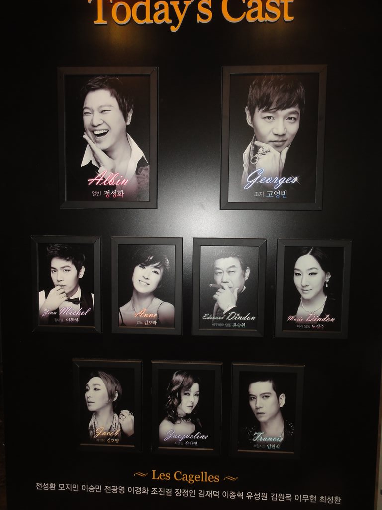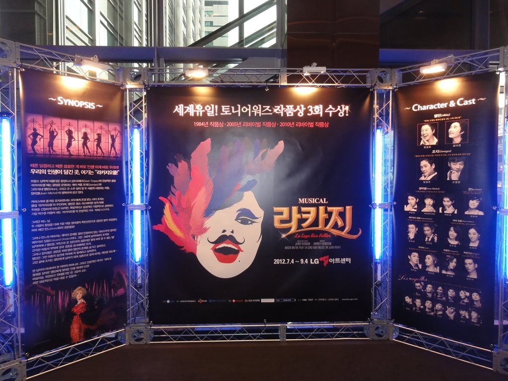 題名:Musical La Cage 日時:2012年8月10日20:00-22:50(途中休憩あり)、8月12日18:30-21:20 劇場:LGアートセンター 料金:VIP席130000KRW(+2000KRW手数料) 座席:1階6列目6番(左ブロック)、12日は1階の後方 開演20分前に客席にはいったらがらがら、まだ10人くらいしか 客がはいっていませんでした。でも開幕時には満員、ソウルの 観客の出足の悪さ健在のようです。 ここは最前列だと頭の高さが床になり、見上げる形となります。 6列目で多少床がみえるレベルでした。 見終わった感想としては、キャストが良い!ということに 尽きました。みな歌って踊れます。1幕最後には泣けた。 言葉がわからないのに心情がひしひしと。。 鳥かごのダンス、白鳥がはいっていたけれどそうだったの? レディーズはかなりしっかり動けてます。 主役コンビが歌えて踊れてかなり良い。そして泣けます。 やはりレストランでは泣ける。 そして息子が謝るところ、ポイントついてますね。 とにかくキャストが良いのです。 もう一回見たくなって再度見にいきました。 女性指揮者の顔面にひげあり! 黒鳥の姿で4羽の白鳥を踊ります、そのシーンが印象的、 フレンチカンカンも素晴らしい。 かなりよいプロダクションだったと思います。 PR 題名:第13回バレエフェスティバル全幕特別プロ マカロワ版「ラ・バヤデール」 日時:2012年8月8日18:30-21:15(途中休憩2回あり) 劇場:東京文化会館 料金:S席15000円 座席:12列23番(12列センターブロック右端近く) 劇団:東京バレエ団 演目:「ラ・バヤデール」全3幕 演出・振付:ナタリア・マカロワ(マリウス・プティパ版による) 音楽:レオン・ミンクス(編曲:ジョン・ランチベリー) 指揮:ワレリー・オブジャニコフ 演奏:東京フィルハーモニック交響楽団 出演: ニキヤ(神殿の舞姫):アリーナ・コジョカル ソロル(戦士):ヨハン・コボー ガムザッティ(ラジャの娘):田中結子 ブロンズ像:ダニール・シムキン ラジャ(国王):高岸直樹 ハイ・ブラーミン(大僧正):木村和夫 マグダヴェーヤ(苦行僧の長):松下裕次 アヤ(ガムザッティの召使い):崔美実 ソロルの友人:森川茉央 影の王国ヴァリエーション1:岸本夏未 影の王国ヴァリエーション2:奈良春夏 影の王国ヴァリエーション3:乾友子 ニキヤはかわいくてきれい、たっているだけで絵になる上に、 ぴしっときめるところは決める。繊細に踊っているのに凄い 技術!ソロルかわいいかんじ、力強くはないのだけれど、 かろやかに舞ってました。そしてニキヤとかわいいコンビ。 王様貫禄あり、ガムザッティはどっしりと落ち着いていて やはり貫禄あり。軽くはないのだけれど安定感ありまくり。 いやー、まさに王女。 大僧正はけなげ、ニキヤに岡惚れしたのがよく感じられます。 それにしてもすごい筋書きですね。ニキヤさえ僧正に囲われ てくれればすべては丸くおさまったのに。 2幕はニキヤを思って大麻を吸うソロルのシーンから始まり ます。麻薬で乱れた頭でニキヤとの白昼夢?この中の群舞は よかった。4人ずつ6列、同じ振付で一糸乱れぬ動きでわくわ く。主役ふたりのデュエットも美しい。ニキヤのシェネの回 転速度が素晴らしく速くて思わず拍手。 最後は夢落ち。 三幕は洞窟の中に仏像があるという怪しいシチュエーション。 その中に金ぴか仏像が踊ります!これがシムキンさん、ソロ ダンスであやしさ爆発!ロボットダンス?仏像はこのシーン だけなのですね。 繊細さと華やかさと妖しさが同居した舞台でお腹いっぱいに なりました。 題名:ルドルフ ザ・ラスト・キス 日時:2012年7月28日12:30-15:20(途中休憩あり) 劇場:帝国劇場 料金:補助席9000円 座席:1階補助席30番(Rの後ろ、ほぼ中央) 出演: ルドルフ:井上芳雄 マリー・ヴェッツェラ:和音美桜 ステファニー:吉沢梨絵 ターフェ:坂元健児 ラリッシュ:一路真輝 フランツ・ヨーゼフ:村井國夫 <男性アンサンブル>青山航士/島田邦人/杉山有大/照井裕隆/中島康宏/ 原 慎一郎/ひのあらた/松澤重雄/港幸樹/村瀬美音/山名孝幸 <女性アンサンブル>岩﨑亜希子/大月さゆ/樺島麻美/後藤 藍/鈴木結加里/ 保泉沙耶/舞城のどか/美鳳あや/望月理世/柳本奈都子/やまぐちあきこ ストーリー: 19世紀のオーストリア。 自由と平等を求めるハプスブルク家の若き皇太子ルドルフは、 厳格な父・皇帝フランツ・ヨーゼフとの政治思想的対立を深めていた。 妻との関係も冷え切り完全に孤立した日々を送るルドルフは、 美しく純粋な男爵令嬢マリー・ヴェッツェラと出会い、 道ならぬ恋と分かりながらも惹かれ合っていく。 一方、オーストリアは激動の時代を迎えようとしていた。 苦悩が深まるばかりのルドルフの安らぎはマリーだけであった。 しかし2人の関係は周囲の知るところとなり、ますます窮地に立たされる。 追い詰められたルドルフが辿る道とは… http://www.youtube.com/watch?v=DBq5CfoAezU http://www.youtube.com/watch?v=SEMj446xLk8 全てが赤い。。 深い深い、赤の世界。スタイリッシュですねえ。 盆が二重、天井から円形に吊るされたカーテンや幕による 場面展開でスピーディーに進む演出。恋