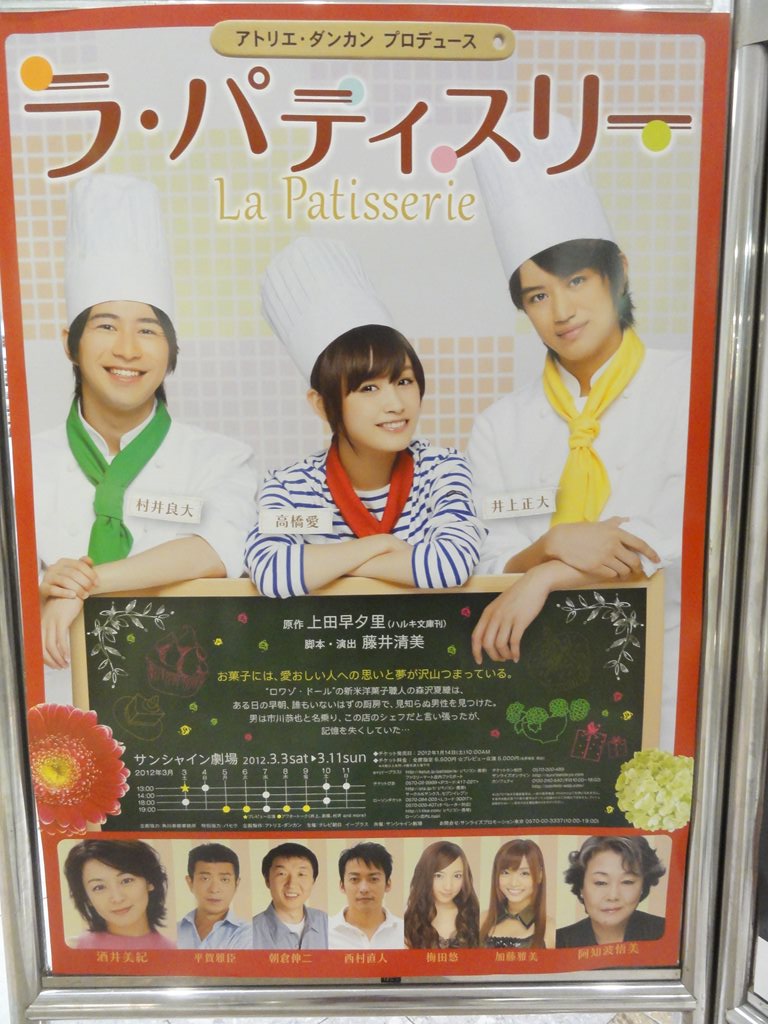 題名:アトリエ・ダンカンプロデュース「ラ・パティスリー」 日時:2012年3月7日19:00-20:50 劇場:サンシャイン劇場 料金:6500円 座席:1階18列19番 原作:上田早夕里(ハルキ文庫刊) 脚本・演出:藤井清美 出演: 井上正大 高橋愛 村井良大 酒井美紀 平賀雅臣 朝倉伸二 西村直人 梅田悠 加藤雅美 阿知波悟美 パティシエ監修:関根寛次 美術:升平香織 照明:中川隆一 音響:長野朋美 衣裳:十川ヒロコ ヘアメイク:宮内宏明 演出助手:林洋平 舞台監督:上田光成 音楽:和田俊輔 宣伝:葦刈健 宣伝美術:立川明 宣伝写真:加藤孝 宣伝スタイリスト:疋田奈々 宣伝ヘアメイク:ミタマイコ 運営:サンライズプロモーション東京 票券:後藤まどか 制作:蓬田恵美子 制作助手:佐藤きらら アシスタントプロデューサー:佐々木弘毅 プロデューサー:池田道彦 企画協力:角川春樹事務所 特別協力:パセラ 企画製作:アトリエ・ダンカン 主催:テレビ朝日イープラス 共催:サンシャイン劇場 ストーリー: 森沢夏織(高橋愛)は、あるフランス菓子店“ロワゾ・ドール”の新米洋菓子職人。 ある日の早朝、誰もいないはずの厨房で、飴細工作りに熱中している、背の高い見 知らぬ男性を見つけた。 男は市川恭也(井上正大)と名乗り、この店のシェフだと言い張るが店のシェフ、 美津子(酒井美紀)と吉野(村井良大)に不審者扱いをされ通報されてしまう。 駐在が来る騒ぎとなり駆けつけた店のオーナーの晴恵(阿知波悟美)は恭也が過去 の記憶なくしているにもかかわらず店の内部にまで詳しい事に、出て行った息子と 関わりのある人物ではないかと感じていた。 結局、晴恵の判断で恭也を店に受け入れ、戸惑いながらも先代の作り上げたロワゾ・ドール を盛り立てていく。 夏織は店で働くことになった恭也に次第に惹かれていくが…。 ---------------------------------------- 仮面ライダーディケイドのキャストが出演するということで見 に行きました。 動いているディケイドと動いている新カブト、それにモー娘の 高橋愛さんを見れたので満足。高橋さんや村井さんはかなりの 演技派だったのですね。井上さんはTVを通して見るよりイケメン、 客席の女性比率が高いのがわかります。 ストーリーは原作からエピソードをがりがりっと削って、 その上登場人物をがりがりがりっと減らした感じです。 がりがりしすぎてちょっと説得力ない雰囲気になっていた場面 があったのは残念。原作中一部のエピソードで間をいれながら 全幕ひっぱったというところでしょうか、。 原作もご都合主義でハッピーエンドなんですが、原作ではお菓子 作りへの愛が舞台より一層強く感じられました。 題名:AGAIN 이은결의 블록버스터 매직 〈THE ILLUSION LEE EUN GYEOL) 日時:2012年3月4日14:00-16:40(途中休憩あり) 劇場:충무아트홀 대극장(忠武アートホール大劇場) 劇場:忠武アートホール 大ホール 座席:1階12列27番(右側ブロック) 料金:R席80000KRW 出演:이은결 開演前に客席をカメラが写して、舞台上のディスプレイに表示し ています。そしてそこでハングルのテロップ、映像による客いじ りといったところでしょうか。客に色々問いかけて身振りによる 返事をさせて笑いをとっていました。案の定客席には小さな お子さま多数。 オープニングは一瞬でヘリコプターが出現する大ネタ! 美女出現して、人体切断やら消失に出現、瞬間入れ替わりなど 派手なものばかり。客の目は釘付け。 壁ぬけやオウム出現マジックなども。 ビデオカメラを使ってカードマジックも披露。非常に美しい 手の動き。そしてマジックとマジックの間にトーク、これが 客席に大受けの連続!!トークを盛り上げるためにマジックを しているようなもの? 2幕にはいると、消失・取り出し等細かなマジック多数を 流れるように繋いでみせ、そこから鳥。鳥をだしたり、 鳥を大きくしたり鳥かごだしたり、鳥かごが1つから2つ に分かれたり。もう何羽でも発生してしまいそう。 そしてその鳥が何羽もはいった鳥かごが布の下で消失。 客上げで、糸電話。言葉にあわせて糸で絵を書いて、、 実は客が彼女にプロポーズ!韓国舞台でしばしば見られる シーンがここでも起きるとは、指輪渡していました。 次は子供とお父さんを客上げ、鞄をひとつ宙吊りに しておきました。おもちゃのロボットや恐竜が戦うという 内容の文章に、キャラクタごとに新しい名前をつけていきます。 名前は大きなクッションを客席になげてそれを捕まえた 人がつける!一見したところランダム。 そしてへんてこりんな名前をつけてもらって、それを呼ぶ と巨大なぬいぐるみ登場、恐竜とロボットは人より大きく、 恐竜は倒れたら起きあがれません そして鞄をおろすと、適当につけてもらった名前を含む 文章が入った紙がそこに。。 次は、指の運動、親指から順に追っていって逆は小指から とか、右と左で違う指の形をするとか、かなり難しいです。 コンタクトジャグラーの凄い人も同じような感じのストレッ チをしていたような気が。。 それから黒幕の前に手だけ出して、手先の