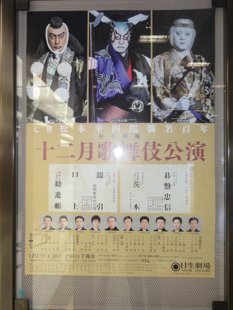 題名:ものみなうたで終わる 日時:2012年1月15日14:00-15:22 劇場:シアターカイ 料金:1000円 座席:最前列みぎより マイムと講釈とジャグリングの舞台ということで見にきて みました。上演前には、原発再開反対のビデオが流れてい たのでびっくり。 舞台上にはお茶箱による釈台。張り扇でお茶箱をばちっと 叩いて物語の開始!これは支配している1%の者たちにつ いて、99%の者が革命を起こす、革命戯曲なのだそうで。 この戯曲が表している世相と今の世相がよく似ているので、 死者と生者による連帯が行える。。 この戯曲は日生劇場のこけら落とし作品であり、そのとき は水谷八重子や仲代達也をはじめ総勢34人のキャストでやっ たものを今回はなんと3人! ひとしきり、物語の由来や現在と過去の縁を語った後、当 時の大道芸を想像するためにジャグリングパフォーマンス へと。。 まずは、クラブ3本、それからボール3個ー7個、槍でデ ビルスティックのパターン等。凄かったのはバランス芸、 槍の先にペットボトルの底を抜いたものを逆にさしておい て、槍をヘッドバランスし、槍の先のペットボトルにボー ルを投げ入れる!槍を3本繋いですごく高くした状態での 投げ入れは手に汗握りました。舞台の上では天井につかえ てしまうため客席に降り、それでも足りず座り込んでのバ ランスで天井ぎりぎりになったペットボトルに見事ストラ イク! それから作品解説のセッション。別の方が舞台に登場して この作品と上演の歴史を語られました。これは日生劇場で のこけら落としで演じられた大きな舞台だったが、不評で 不入り。 10年後に六本木の俳優座劇場で再演。鉄パイプでセット を組んだ演出で、これは好評だった。スターたちと若者た ちでは読みが違う 今回の公演で、34人のキャストが3人まで成り下がり、この 成り下がりが今日のテーマ。 これは世の中がまだ変わっていくぞという乱世の物語、大 衆のエネルギーが満ちあふれていた。歌舞伎とは傾く、非 暴力の戦いなのである。 キャストが入れ替わりまた講釈+マイムに戻って終了。 ポストトークではなく、ショーの中に舞台解説をいれこん でしまう、というのは珍しい演出のような気がします。舞 台のメタ階層を壊すひとつの仕組み?。内容はさておき、 このやり方はありかもと思いましたよ。 なんだか不思議な空間体験でした。 PR 題名:七世松本幸四郎襲名百年日生劇場十二月歌舞伎公演12/25(日)昼の部 日時:2011年12月25日11:00-14:30(途中休憩あり) 劇場:日生劇場 料金:招待券(一等席15000円、二等席6500円) 座席:GC階A列54番(中二階右手) 番組: 一、碁盤忠信(ごばんただのぶ) 佐藤忠信 染五郎 横川覚範 海老蔵 ○ 源義経 亀三郎 静御前 春 猿 塩梅よしのお勘実は呉羽の内侍 笑三郎 番場の忠太 猿 弥 小柴入道浄雲 錦 吾 忠信女房小車の霊 高麗蔵 二、新古演劇十種の内 茨木(いばらき) 伯母真柴実は茨木童子 松 緑 渡辺源次綱 海老蔵 ○ 家臣宇源太 亀 寿 太刀持音若 梅 丸 士卒仙藤 亀三郎 士卒軍藤 市 蔵 士卒運藤 高麗蔵 解説: 歌舞伎をはじめ、日本初のオペラや翻訳劇にも出演した近代の 名優、七世松本幸四郎(1870~1949)。そして、明治44年(1911)、 その年に開場した帝国劇場において七世幸四郎の襲名披露興行 を行いました。その襲名から百年目にあたる今年、それを記念 して、七世幸四郎の曾孫である三人を中心とした顔合わせによ り上演します。演目は、いずれも七世幸四郎ゆかりの作品です。 どうぞご期待ください。 昼の部一、碁盤忠信(ごばんただのぶ) 京都の堀川御所。源義経が奥州へ落ち延びた後、廃墟の館に 隠れ住むのは、義経の影武者として働く佐藤忠信。この忠信の 命を狙うのは、梶原景高と内通する舅の小柴浄雲。浄雲は、碁 盤を枕にうたた寝する忠信のもとへ忍び入るが、忠信の亡き妻・ 小車の亡霊が現れ、父の行いを窘める。一方、目覚めた忠信は、 危険を察知し、義経所用の鎧を身につける。やがて、大勢の捕 手に取り囲まれた忠信。 そこへ横川覚範が現れ、忠信に勝負を挑み、ふたりは闘い始め るが... 碁盤を片手に差し上げて闘う忠信の姿が盛岡山車などでも有 名な『碁盤忠信』は、七世幸四郎襲名披露狂言でした。今回は、 それ以来、実に百年ぶりの復活上演となります。 二、新古演劇十種の内 茨木(いばらき) 平安時代。源頼光に仕える渡辺綱は、羅生門に鬼退治に出か け、鬼の片腕を切り取って帰ってきた。だが、鬼が腕を取り返 しに来るので、陰陽師から物忌みを命じられた綱は、館に籠も り物忌みを執り行っている。そこへ伯母の真柴がはるばると訪 ねて来る。綱は対面を断るが、真柴が綱の無情を嘆き悲しむの で、仕方なく伯母を招き入れる。綱から羅生門での武勇伝を聞 いた真柴は、やがて、鬼の腕を見たいと言い始め... 茨木童子の伝説を題材に、河竹黙阿弥作の松羽目物の舞踊劇。 新古演劇十種のひとつです。前半は、伯母のクドキや左腕を隠 しながらの舞、後半は、本性を現した鬼と渡辺綱との大立廻り や花道の引っ込