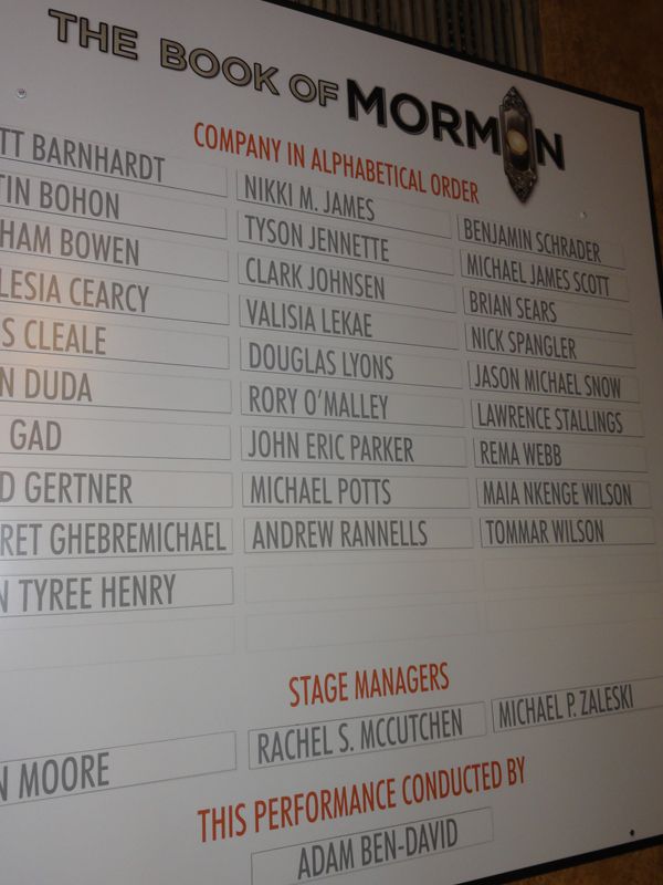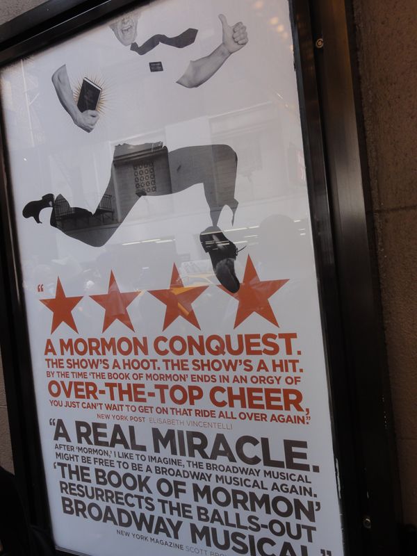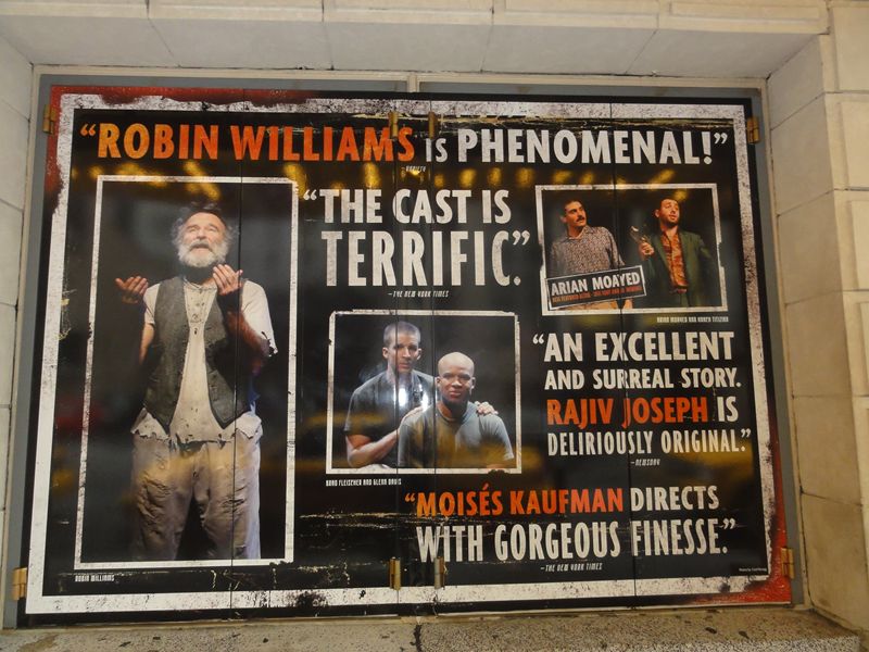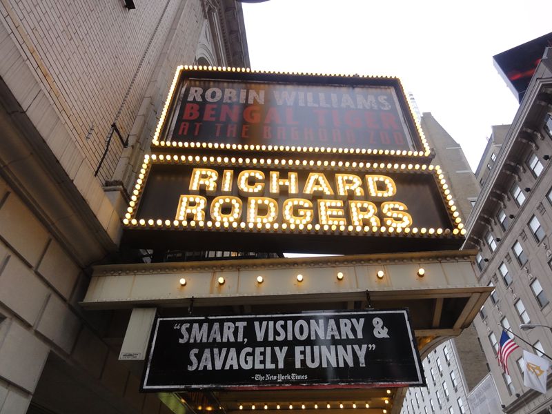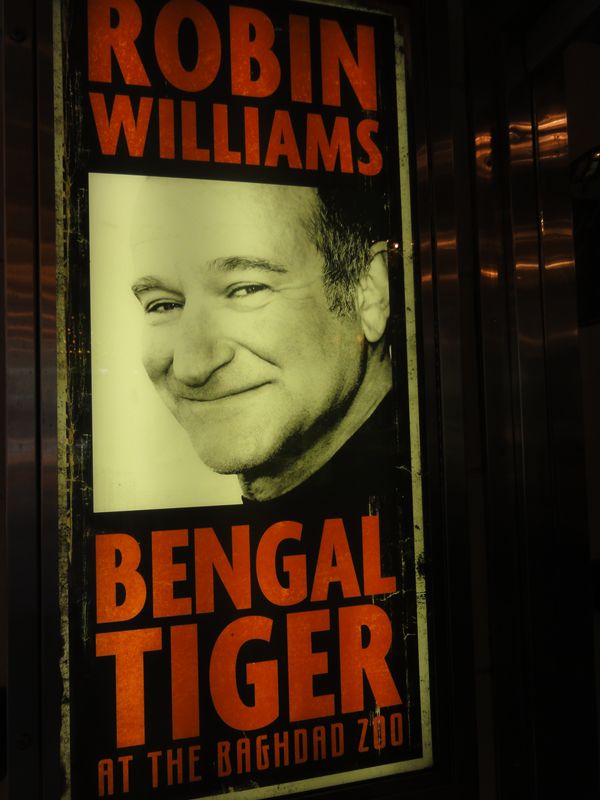 題名:Cirque du Soleil: Zarkana 劇場:Radio City Music Hall 日時:2011年6月4日20:00-22:10(途中休憩あり) 料金:TicketMaster 手数料込 139.25USD 座席:section ORCH2, row HH, seat 212 WRITER AND DIRECTOR (ZARKANA):FRANCOIS GIRARD DIRECTOR OF CREATION (ZARKANA):LINE TREMBLAY SET AND PROPS DESIGNER (ZARKANA):STÉPHANE ROY COSTUME DESIGNER:ALAN HRANITELJ COMPOSER AND MUSICAL DIRECTOR:NICK LITTLEMORE CHOREOGRAPHER (ZARKANA):DEBRA BROWN LIGHTING DESIGNER:ALAIN LORTIE IMAGE CONTENT DESIGNER:RAYMOND ST-JEAN SOUND DESIGNER (ZARKANA):STEVEN DUBUC ACROBATIC PERFORMANCE DESIGNER (ZARKANA):FLORENCE POT ACROBATIC EQUIPMENT AND RIGGING DESIGNER (ZARKANA):DANNY ZEN MAKEUP DESIGNER (ZARKANA):ELENI URANIS GUEST CREATOR - DRAMATIST:SERGE LAMOTHE Music by: Nick Littlemore Book by: Francois Girard Synopsis: Directed by the internationally acclaimed François Girard (The Red Violin, Silk), this new production features 71 international artists and follows Zark, a magician on a quest to find his lost powers. He finds himself plunged into a world inhabited by surreal and mesmerizing creatures. The music of Zarkana is composed by Nick Littlemore, a protégé of Sir Elton John. Zarkana is an acrobatic rock opera that blends circus arts with the surreal to create a world where physical virtuosity rubs shoulders with the strange. The story follows Zark, a magician who has lost his powers – and the love of his life – in an abandoned theatre populated by a motley collection of off-the-wall characters and incomparable acrobats. He runs into the Mutants, four sirens as sinister as they are fabulous, who are determined to divert him from his quest. Zarkana is a visual vortex set in a slightly twisted musical and acrobatic fantasy universe where, little by little, chaos and craziness give way to festivity and love regained. 両サイドと後方のぞいてORCHはほぼ埋まっていました。 TKTSにTTあたりからは90USD程度でていたようです。 劇場にはいるとロビーには人だかり、おなじみグッズ販売に加えて 白い人達がなにやら不思議な雰囲気を醸し出していました。 今まで見たシルクドソレイユの舞台のどれよりもたくさんの人たちが歩いてましたね。 満員のロビーの中にそこかしこにいる白い人たち、気分はもうお祭り。 客席に入ると舞台の上でももう何か始まってました。もうちょっと早く入ればよかったかOrz ラジオシティミュージックホールには2階と3階にしかはいったことがないので、オーケストラ 席にはいるだけでもう気分はうきうき。これはかなーーり広いですねえ。2階席が遠いわけだわ。 舞台の演出は音楽と曲芸が交互といういつものパターンにあわせて、舞台いっぱいの映像を 取り入れていました。フープによる曲芸などでは、床で本物が回っていると空中では映像が たくさんくるくる、ラジオシティのスペースを有効活用ですね。後ろからみてもかなり楽しい ノリでしょう。今回のモチーフはジャングル、いたるところに密林っぽいものが多数。 フープの背後は惑星?宇宙での曲芸? 両サイドでは生バンドによる演奏。 オープニングアクトはバウンズジャグリング、5ボールから始まり、3ボールで多彩な技、テー ブルの上下、箱の中などを使っていました。最後は8ボールまで。美しい軌道に加えて美しい足。 次は梯子乗りの頭の上で軟体というあわせ技、 梯子バランスしている状態で、頭に梯子を載せてその上に上って、二つ目の梯子の上で逆立ち! 大きな旗のパッシングは、ゆっくりあがってぴゅーっと落ちるといったおもしろい軌道。旗の先が 重くて旗の抵抗があるためでしょう。 ロシアンバーは伸身の2回宙返り半ひねり(だとおもう)が美しい。 綱渡りは、綱の上での縄跳びや肩車、二人組みが綱の上に立ってポールを抱えてそのうえでまた バランス! 空中ブランコはモチーフが蜘蛛、スパイダーマンとネタがかぶってませんか(^^;) ブランコを2列に して切れ目なく飛んでいるのが印象的でしたね。 2幕の冒頭は、サンドアニメーションアート。真ん中でサンドアニメーションを行っているのを 頭上のカメラで撮影して背面に巨大投影する形。私はこのアートを見たのは初めてだったので、 見る見る砂絵がかわっていくのをみて感動、実は今回の舞台で一番印象的だったのがこのアート だったりします。 クライマックスは組み体操。何人も並んだ上をぴゅーと飛び越えるとか、3人が鼎状になったうえで バランスするなど非常にテンポよく展開されて迫力満点。 全般的にテンポ良く進む上に、映像との合体により一層の迫力となり、大劇場でも十分なインパクトを 与える作品にしあがっていると思いました。これはロングランするでしょう。 PR 題名:Bengal Tiger at the Baghdad Zoo 劇場:Richard Rodgers Theatre 日時:2011年6月11日14:00-16:10(途中休憩あり) 料金:BroadwayBOX 割引 79USD 座席:ORCH L113(真ん中通路すぐ後ろ、センターブロック左端) Moises Kaufman (Direction) Written by: Rajiv Joseph 出演: Robin Williams (Tiger) Arian Moayed (Musa) Glenn Davis (Tom) Brad Fleischer (Kev) Necar Zadegan (Iraqi Woman, Leper) Hrach Titizian (Iraqi Man, Uday) Sheila Vand (Hadia/Iraqi Teenager) Hend Ayoub (u/s Iraqi Woman/Iraqi Teenager/Hadia/Leper) Corey Brill (u/s Tom, Kev) Sherman Howard (u/s Tiger) Daoud Heidami (u/s Musa/Iraqi Man/Uday) イスラムの礼拝堂の窓ガラスらしいものが舞台中央に鎮座していま