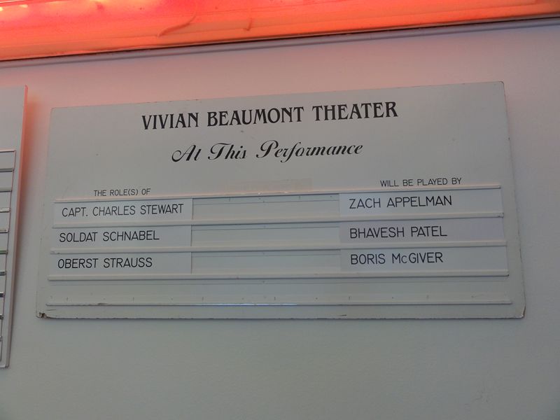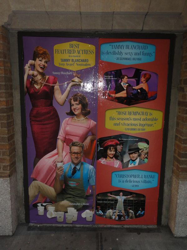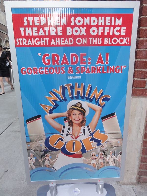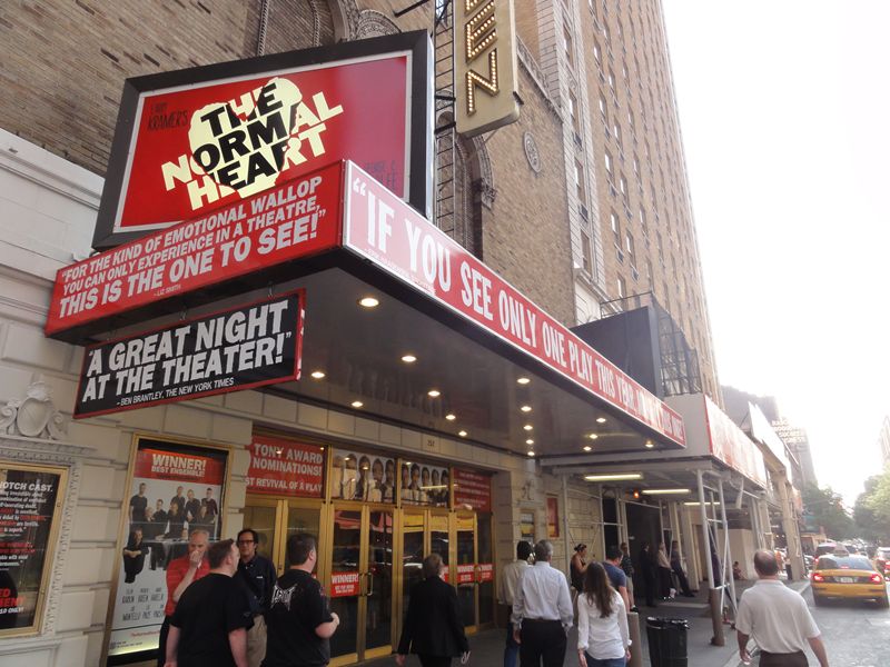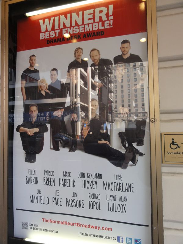 題名:Anything Goes 劇場:Stephen Sondheim Theatre 日時:2011年6月8日20:00-22:45(途中休憩あり) 料金:ORCH 127USD + Telecharge手数料10.25USD 座席:ORCH A106(最前列センター) Kathleen Marshall (Direction and Choreography) Derek McLane (Set Design) Martin Pakledinaz (Costume Design) Peter Kaczorowski (Lighting Design) Rob Fisher (Music Direction) David Chase (Dance Arrangements) Other Credits: Lyrics by: Cole Porter Music by: Cole Porter Book by: Timothy Crouse and John Weidman, Howard Lindsay and Russel Crouse and Guy Bolton and P.G.Wodehouse 出演: Elisha Whitney: John McMartin Fred, a bartender: Josh Franklin Billy Crocker: Colin Donnell Reno Sweeney: Sutton Foster(TONY Awards,Best Performance by an Actress in a Leading Role in a Musical) Captain: Walter Charles Ship's Purser: Robert Creighton A Reporter: Clyde Alves A Photographer: William Ryall Luke: Andrew Cao John: Raymond J. Lee Angels: Purity: Shina Ann Morris Chastity: Kimberly Faure Charity: Jennifer Savelli Virtue: Joyce Chittick Hope Harcourt: Laura Osnes Mrs. Evangeline Hacourt: Jessica Walter Lord Evely Oakleigh: Adam Godley FBI agents: Adam Perry, Kevin Munhall Erma: Jessica Stone Moonface Martin: Joel Grey Old Lady in a Wheelchair: Linda Mugleston TONY AWARDS ミュージカルリバイバル作品賞受賞。 水曜ソワレは午後8時からなのですが、午後5時に劇場前を通ったらもうキャンセ レーションの行列ができていました。どれだけ人気なのでしょう? 案の定リバイバル作品賞をとりましたね。 この劇場にはいるのは初めて、いったいいつできました?全然記憶にないのですが。。 1枚目は劇場正面から、2枚目は側面から。 この劇場は地上の入り口から入ったところが2階席最後列席へとつながる扉がある のでした。1階席に行くためには階段を2階分降りなければなりません。どうりで 外からはさほど劇場が大きく見えないわけです。 今回は定価で買った最前列センター。最前列が出てきたときに思わず買ってしまっ たのですが、買って正解!サットンフォスターの魅力満喫できました 床の高さが首あたりと床面が見える位置の上に足が伸ばせるのでなかなか快適です。 今回の客層もかなり高年齢、WAR HORSE と良い勝負? すぐ眼の前にいるオーケストラピットの指揮者も船員の帽子を被っていました。 前説は Captain, 「乗船前に携帯の電源を切りましょう」 Sister Act という前説 にも色々キャラクタを載せていておもしろい。 オープニングの船が出航するシーンでは紙テープが客席に向けて投げられて、 最前列にいる私はもちろんキャッチ。 セットは基本的に甲板、そこに客室が時折現れるという構成でした、 指示をやぶって仕事をやらないうえに秘密に乗船して 不法に乗船した男が他人と婚約中の彼女を奪うというひどい話ですがw、それでも 許せてしまうダンスの迫力。一癖もふた癖もある連中ばかりが乗船! 1幕最後のAnything Goes は圧巻でした。サットンフォスターを中心とした20人で のタップダンス。男性船員のタップは迫力だねえ。足元までみれる高さの舞台に 感謝。タップチップまで見えました。 2幕は色々あって大団円w 各キャストの見せ場がたっぷり、 話としては古くさいのですが、役者がそろっている。 サットンフォスターの迫力はすごい!でもサットンフォスターショーだと思いきや 他の役者も迫力満点。リバイバル作品賞をとるだけのことはあります。 PR 題名:The Normal Heart 劇場:John Golden Theatre 日時:2011年6月8日14:00-16:40(途中休憩あり) 料金:Playbill 割引75USD 座席:F116(6列目中央より6つめ) Joel Grey (Direction) George C. Wolfe (Direction) David Rockwell (Set Design) Martin Pakledinaz (Costume Design) David Weiner (Lighting Design) David Van Tiegham (Sound Design) Batwin + Robin (Projection Design) Written by: Larry Kramer 出演: Dr. Emma Brookner:Ellen Barkin Mickey Marcus: Patrick Breen Ben Weeks:Mark Harelik Felix Turner:John Benjamin Hickey Ned Weeks:Joe Mantello Craig Donner and Grady:Luke Macfarlane Bruce Niles:Lee Pace Tommy Boatwright: Jim Parsons Hiram/Examining Doctor:Richard Topol David and Felix :Wayne Alan Wilcox TONY賞リバイバルプレイ作品賞受賞。かなりせつない作品です。 広くない劇場です。両端でないかぎりどこにすわっても問題ない でしょう。最前列でも床が胸あたりにきますので大丈夫。 この劇場はほとんどストレートプレイにのみ利用されているはず? WAR HORSEよりちょっと客層が若い感じ。 ここでもアジア系の顔立ちはほとんど見かけません。 背景は白い壁、浮き彫りで文字がびっしり書かれています 読めるのは、、 This is a terrible problem.How come nobody's paying any attention of it? January 12 1982 GAY NEWS HEALTH CRISIS Everything, everything, is too little too late, by our silence, we have helped murder each other. Gay-related immune deficiency July 1982 The disease is renamed AIDS 年表になってます? 天井は照明を白木で囲んでおり、舞台全体が白い雰囲気です。 大道具は椅子と机程度。 オープニングは病院、順繰りに医者に呼ばれて、、新しい病にならなため には世界中のゲイがセックスをやめろと。。天井上の白木の部分にどこど このアパートとかオフィス、という説明が出て場面転換するのでした ゲイの中でも浮いてしまう主人公、助けてくれない弁護士。その間にも人は 死んで行きます。ライターの主人公