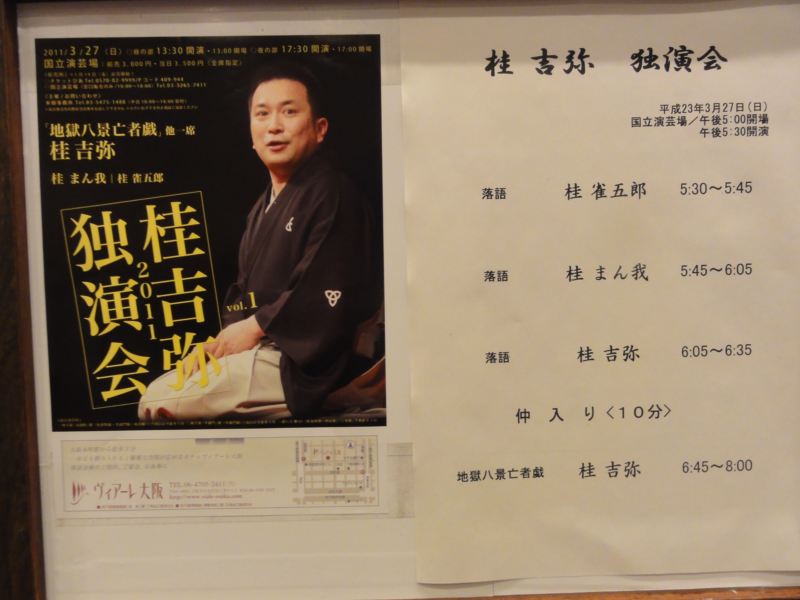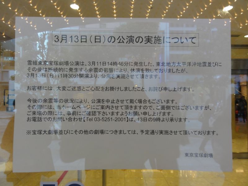 題名:桂吉弥独演会 日時:2011年3月27日17:30-20:00(中入りあり) 劇場:国立演芸場 料金:前売3000円 座席:3列5番 番組: 桂雀五郎 みかん屋 桂まん我 花見の仇討 桂吉弥 愛宕山 中入り 桂吉弥 地獄八景亡者戯 ちらしと共に米朝事務所、桂吉弥師匠からのメッセージがありました。 米朝事務所のメッセージには「私たちに今できることを精一杯行うことで、 少しでも皆様に元気を得て頂くことができればと考え、開催にいたりました」 国立演芸場の定席が中止になっているなかでの開催は悩んだことでしょう。 私は開催してくれてよかったと思います。 みかん屋は、抜けたみかん屋がいいかんじ。 花見の仇討は今の季節にぴったり、私も早くわーっと花見をしたいものです。 愛宕山は音曲がはいって京都の春の風景が見えるようです。 一八さんのぼやきがすてき。これだけみっちり愛宕山を聞いたのは初めての ような気がします。 中入り後は地獄八景、なんと途中で、マイクがあがってきて、漫才! いとしこいしでございました。 米朝・吉朝と継承された大王の顔には笑いましたよ。 この一席で70分でした。ちょっとあっさり風味。米朝師匠は90分あったそうですね。 そういえば、地獄を歩き回るメンツの中に「まついせんすい」という人が いました。この人、職業が歯抜きで独楽まわし、、、これって松井源水そのもの ですよねえ。こんなところで曲芸していたとは知りませんでしたよ。 PR 題名:キャラメルボックス2011スプリングツアー『夏への扉』 日時:2011年3月20日14:00-16:20 劇場:ル テアトル銀座 料金:定価6500円のところハーフプライス 座席:最後列から3列目中央付近 劇団:演劇集団キャラメルボックス 原作:ロバート・A・ハインライン 翻訳:福島正実(ハヤカワ文庫刊) 脚本・演出:成井豊+真柴あずき 出演:畑中智行、西川浩幸、坂口理恵、岡田さつき、大内厚雄 筒井俊作、實川貴美子、渡邊安理、多田直人、稲野杏那 林貴子、森めぐみ、小笠原利弥 この作品はハインラインの懐かしい名作SFを原作としています。マイSFベスト10 にはいるくらいに好きな原作が、世界初の舞台化ということで楽しみにしていました。 原作は猫とタイムトラベルで有名ですね。 当初は3月12日のソワレに行く予定でしたが、東日本大震災のために休演。 再度都合をつけて一週間後の観劇です。 客席ほぼ満員、当日券で座った私は後ろから4列目くらいで舞台からかなり遠いのですが、 舞台全面が見えてそれなりにみやすい。 なにはともあれ、まず満員だったことがうれしい。皆舞台を見にきているのね。 前説に制作の加藤さんが出てきてまず地震が起きた場合の注意事項の説明。 舞台の上の照明機材が音を立てて揺れた場合、即座に進行を止めるのだそうです。 これがだいたい震度3。その場合、荷物やコートなどで頭をカバーしてその場を 動かない。震源や規模が確認された場合、続行か中止か決める。 先週の地震でも落下など機材の損害はなかったとか。前方黒い客席、おけぴの ひとたち、舞台の振動が伝わるけれど地震と勘違いしないように。 緊急地震速報を受け取るモードだとマナーモードでも鳴ってしまう 周囲のお客さんの不安をあおってしまうので切ることをお願いします。 背景は2階立てのたくさんの扉。13くらいありました? ベンチャー企業でばりばりロボットの発明をしているエンジニアが主人公、もう ひとり(1匹)の主役がそのエンジニアの飼い猫。(この猫をちょっと太めの お兄さんが演じています。かなりずるい演出です、これだけで笑えてしまう) そのエンジニアが共同経営者と婚約者に裏切られて経営権をとられてしまいます。 共同経営者の娘、11歳のリッキーは、主人公が大好きで猫も好き。主人公は コールドスリープで逃避しようと一旦は決意するのですが、正面からぶつかろう と二人組に会いに行って返り討ちにあってしまうのです。 タイムラインを進むときはコールドスリープ、戻る時はタイムトラベル、そして いつも猫が一緒。主人公が開発したのはロボット、悪人は元婚約者だけ、最後は 泣かせるハッピーエンドという分かりやすい物語です。 猫役を俳優が行い、少ないキャストでたくさんの場面と登場人物をこなすため、 くどく見える演技をしているところもあります。 スピーディ(というか原作長いので)な進行に笑いを散りばめてたよりない主人公、 ちょっと重い猫、少女リッキーを劇団の古参メンバーが支える姿はこれからもキャラメルは安泰だろうと思わせます。 リッキーかわいい。猫ふてぶてしい、主人公見事に頼りないw カーテンコールは節電で一度だけ、そのかわり客席から退場するサービスでした。 一気呵成に進んだ舞台でしたが、休憩なしの2時間20分はちょっと疲れましたよ 題名:ロミオとジュリエット 日時:2011年3月12日16時ー19時 料金:A席5500円 座席:2階9列54番 右手入り口すぐひだり 劇団:宝塚歌劇雪組 原作:ウィリアム・シェイクスピア 作:ジェラール・プレスギュルヴィック 潤色・演出:小池修
