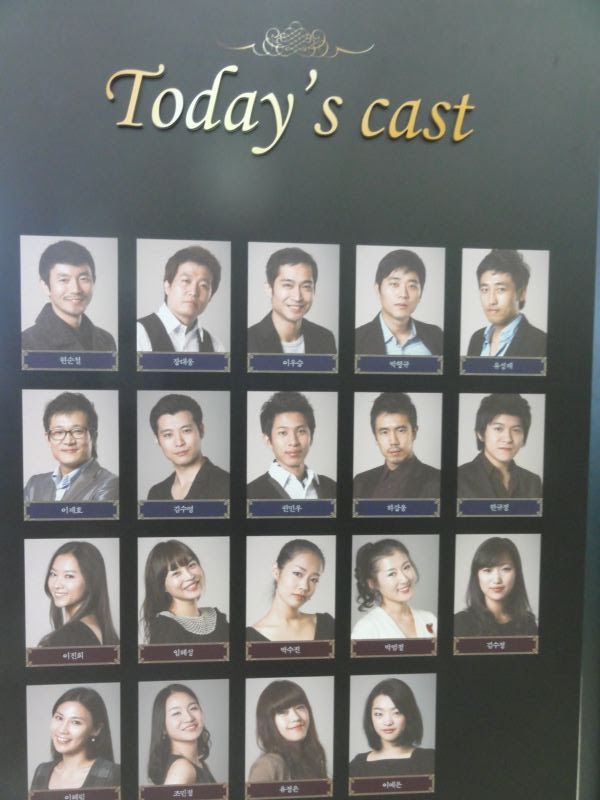 題名:天国の涙( Tears of Heaven) 日時:2011年2月27日14:00-16:25(途中休憩あり) 劇場:国立劇場ヘオルム 料金:R席13万KRW 座席:1階B26(6列目左よりブロック) ひさびさに国立劇場にきました。かなりの人気公演らしく、今回のスケジュール ではこの日程しかチケットがありませんでした。まあ買えたからよし。 主演男優はトリプルキャストで大人気俳優の回はチケットが瞬間蒸発して しまったとか。もちろん私が見たのは他のキャストの回でした。 この日は激しい雨でした。この劇場、地下鉄の駅から相当遠いのです。 しかも延々と坂をのぼっていかねばなりません。 それで明洞からタクシーに乗ってしまいました。 片道5000KRW,雨に濡れることを考えると安いものです 客層はさほど年をとっていないみたい。20代から50代まだまんべんなくと いった感じでしょうか。 私の右隣は若い女性二人連れ、私の左隣は中年カップルでした。 韓国語上演ですが、舞台の左右に字幕付き。英語で話す時には韓国語の 字幕がついていました、字幕は舞台下の左右にもついていて舞台前方 の人にも見えるようになっています。 冒頭は現代、両親を知らないヒロインが韓国に戻ってきたシーンから回想が はじまりました。 物語はかなりシンプル。ベトナム戦争のとき、踊り子を取り合う米国人将校と 若い韓国人兵士、踊り子は兵士を選ぶが、、というボーイミーツガールをちょっと ひねったものです。当初踊り子は将校と婚約しますが、その部下である兵士 にエスコートされるうちに情にほだされて。。。怒った将校は兵士を最前線 に飛ばしてしまいます。戦争シーンはほとんどでてきません。 若い彼氏が死んだと踊り子仲間に嘘をつかれて将校と結婚して米国に渡航。 踊り子仲間は自分のビザが欲しいばかりに嘘をつき。。。 彼女の妊娠がばれると旦那は堕ろせといいますが、それに反発して逃げ出して 嘘つき踊り子仲間に会いにいきます。そこで子供を産んでそのまま死亡。敵とも いうべきおんなに子供を託してしまい、娘はすくすく育ってスターに、彼女は ステージママに。 そして現代に戻り、韓国公演のプロデューサがなんと実のお父さん! 出演しているキャストは皆歌がうまく、朗々と歌い上げます。オペラ座の 怪人のような、ジキルとハイドのようなオペラみたいな口調。 これで終わり?と思うようなシーンがあるとそこからまた続く、といった 感じでどうも物語にメリハリがありません。でもその分楽曲が力強いので それなりな雰囲気を醸し出しています。 物語をみるというよりキャストをみるというタイプの舞台でしたね。 PR 題名:5月には結婚するわよ 日時:2011年2月26日18:00-19:50 劇場:ドンスンアートセンター5階小ホール 料金:25000KRW 座席:後方左より(自由席整理番号付き152番) 当日、劇場窓口で購入。場内満員。 期間限定公演だったはずがオープンランになってました。 舞台に対して左側に傾いて客席が設置されています。 体を右にひねってみる感じ。なんかちょっと微妙。 セットは下が居間で階段を上った2階が本棚。 壁から椅子や引き出しなどを引き出して場面転換していました。 舞台の右端は四角く切り取られた形状で、いったいなんだろう?と思っていたら なんとその四角く切り取られた部分の舞台上に人とセットが載って 舞台袖のカーテン裏から登場してくるのでした。テーブルと椅子と男がすっと はいってきてレストランに早変わり!とかね。 開演前には1階に黒板が出現していて数学の問題が書かれていました。なにやら 恋愛関係の問題がかかれているようですが、もちろんわかりません(^^;) この物語、皆でお金を積み立てて最初に結婚した者がそのお金を総取りする! という賭けを女子仲良し三人組で行ったところから始まります。 かなーりの年が経って賭け金が相当積み上がったところで、三人組のうちの ひとりが6月に結婚する!と宣言しました。後のふたりはさあたいへん。 舞台はもっぱら後のふたりが同居しているアパート、そのうちの一人の 婚活をメインに物語が進みます。 2階の本棚の一部をひっくり返すとデートの主題が現れます。服を着替えてGO! 最初はお金持ちでスノッブな相手、スープを飲むところを見とがめられ、作法が なってないということでお断り。 2番目の彼はフラワーチルドレン?ヒッピーのような風情でギターと歌、彼女は もちろんそれにあわせて、、でも彼は物を売りつけたかっただけなのね。 3番目に出た手段はリサイクル、ああ元彼なのね。でも彼女がいることがわかって没。 同居人同士で嘆いていると、最初に結婚宣言した彼女が破談になったとつたえてきて、、 元の状態にw ほんとに良くできた脚本です。言葉がわからなくても筋書きはばっちり。 キャラがたっていて、わかりやすく、みんないじらしく、かわいい。 しかも男の演技がすごい。彼氏3人と友達、結婚宣言した彼女の婚約相手の5役を 男ひとりで早変わりで演じ分けています。この変貌が素晴らしい。とてもひとり でや