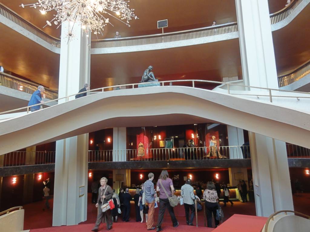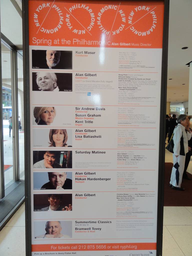題名:Lisa Batiashvili Plays Sibelius & Brahms's Second Symphony 日時:2010年6月11日14:00-16:??(途中休憩あり) 劇場:Avery Fisher Hall at Lincoln Center 料金:CAT1 85USD + 手数料8.0USD 座席:Orchestra G-103 Conductor:Alan Gilbert Violin:Lisa Batiashvili 曲目: MAGNUS LINDBERG (born in 1958) Arena (1995) JEAN SIBELIUS (1865-1957) Violin Concerto (1903, rev. 1905) JOHANNES BRAHMS (1833-1897) Symphony No. 2 (1877) めずらしい金曜マチネです。ブロードウェイミュージカル以上に年輩の客が多い。 というか、若い客がいない!金曜マチネならば当然ですか? 開演15分前に着席すると、舞台上にはオーケストラの何割かが着席して練習をし ていました。全員黒のスーツ、でもネクタイはさまざま。 この席は一番高いカテゴリの一番前の列です。一ヶ月前に売り切れだったのを何 度か公式Webにアクセスして購入することができました。このホールは最前列に 座ると舞台は頭の高さになります。 指揮者登場、東洋系の顔立ちです。生え抜きなんですね。 ひとつめの作品ではずっと不協和音が奏でられていました。いつ怪獣がでてきても おかしくない気分。ドラムが鳴り始めたときはとうとう怪獣が歩みはじめたと思っちゃ いましたよ。伊福部ゴジラに通じる感じ?かなりよい感じです。 かなりいいです 2曲目ではオーケストラのメンバーがかなり入れ替わりました。 バイオリンソリスト登場、真っ黒のオーケストラメンバーの中でひとり背中の大きく 開いた生成りのドレスが鮮やかです。かなり美人、肩の筋肉はかなりついています。。 演奏も力強くそれでいて鮮やかな音とでもいいましょうか。鋭角に空気を切り咲くよう な弓の動きにより、包み込むようなオーケストラの音響の中でそこだけ原色で塗られ たような音を響かせています。肘から先の筋肉がすばらしい。普通にしていると見え ない筋肉が、力をいれたとたんに顕わになるのです。 ドラムとバイオリンの呼応もおもしろい。 ビジュアル的にもかなりいいです。前の方で見てよかったと思える瞬間ですね。 3曲目はソリストがいなくなり、今度はオーケストラ全員参加のシンフォニー。 指揮者によって動かされるオーケストラが興味深い。楽団員によって指揮者を見る タイミングが違ってますね。でも問題ないんだーと妙なところに感心しました。 正直言って3曲目はCDで聞いていると飽きてたと思いますが、生音で色々見ながら 聞いているとけっこう楽しい。 指揮者かなりかっこいい、すごいオーバーアクションで汗びっしょりでした。 どうもお疲れ様です。 PR 題名:All-Ashton Repertory (American Ballet Theatre) 日時:2010年6月10日19:30-21:40(途中休憩あり) 劇場:Metropolitan Opera House(NY) 料金:Center Parterre 175USD+手数料5.5USD 座席: Section:PARTERRE Box:22 Seats:6 (2階席センターボックス席後方) Choreography by: Sir Frederick Ashton Music by: Alexander Glazunov Costumes by: Andre Levasseur Lighting by: Steven Shelley 番組: Birthday Offering Entree: Renata Pavam, Gemma Bond, Hee Seo, Simone Messmer, Stella Abrera, Christine Shevchenko, Irina Dvorovenko Mazurka Gray Davis, Carlos Lopez, Thomas Forster, Blaine Hoven Jared Matthews, Daniel Mantei, Maxim Beloserkovsky Thaïs Pas de Deux Maria Riccetto, Jared Matthews(代役) Awakening Pas de Deux Veronika Part, David Hallberg The Dream Titania: Xiomara Reyes Oberon: Cory Stearns Puck:Daniil Simkin Bottom: Alexei Agoudine Helena: Karin Ellis-Wentz Hermia: Kristi Boone Demetrius: Roman Zhurbin Lysander: Gennadi Saveliev 2階席は舞台全体が良く見えるのですが、やはり遠い。ダンサーの筋肉は良く見えません。 1幕はながして踊ってる感じに見えます。見せ場があるわけではなく、群舞がそろっている わけではなく、物語性があるわけではない。元々全体的に地味なのですね。 2幕は男性ダンサーのリフトが非常に自然で見ごたえがありました。きれいな筋肉だ。 最終幕は「真夏の夜の夢」、いわずと知れたシェイクスピアの喜劇です。なんとコーラス 団がオーケストラピットに出現しました。 パックは身軽で愛らしい、ひょいひょいステージを飛び回ります。妖精のダンスもかわいい。 全体としてかなりコミカルな振り付けです。凄さを感じさせる場面はあまりないのですが、 わかりやすくけっこう楽しかったのです。 題名:Promises, Promises 日時:2010年6月9日20:00-22:45(途中休憩あり) 劇場:Broadway Theatre 料金:ORCH Telecharge手数料込 136USD 座席:Center Orchestra Row A, Seat 103 Production Credits: Rob Ashford (Direction and Choreography) Scott Pask (Scenic Design) Bruce Pask (Costume Design) Donald Holder (Lighting Design Brian Ronan Jonathan Tunick (Orchestrations) Phil Reno (Music Direction) David Chase (Dance Music Arrangements) Other Credits: Lyrics by: Hal David Music by: Burt Bacharach Book by: Neil Simon 出演: Sean Hayes(Chuck Baxter) Kristin Chenoweth(Fran Kubelik) Tony Goldwyn(J.D. Sheldrake) Katie Finneran(Marge MacDougall) TONY Awards Best Performance by a Featured Actress in a Musical受賞 Brooks Ashmanskas(Mr. Dobitch) Dick Latessa(Dr. Dreyfuss). Peter Benson(Mike Kirkeby). Sean Martin Hingston(Mr. Eichelberger). Ken Land(Jesse Vanderhof, u/s Sheldrake, Dreyfuss) Cameron Adams(Miss Della Hoya, Ginger). Ashley Amber(Miss Kreplinski, Helen Sheldrake, u/s Miss Olson) Nathan Balser(Swing, u/s Dobitch, Kirkeby, Eichelberger, Vanderhof, Kar