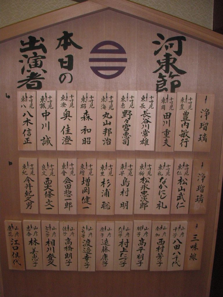 題名:春爛漫 ふたりライブ 日時:2010年4月8日19:00-20:45 劇場:アサヒアートスクエア 料金:2500円(ワンドリンクつまみつき) 座席:左側後方テーブル席 出演:ストレート松浦(ス)、ズッカーマン明子(ズ) 番組: ーオープニングー 2人でディアボロ スズ ジャグリングだよう ス 007 ズ This is ring! スズ 休憩 おおなわとび ス○○ズ パリジェンヌ ズ ジャグリングだわ ス 赤+白=サクラサク 会場の朝日アートスクエアからはスカイツリーが見えます。 ワンドリンクとスナックひとふくろつき。 ドリンクはアサヒの缶関係がずらり、私はオリオンビール、開演のころにはでき あがっていました。 前説にストレートさん登場。拍手のタイミングがわからない場合があるので演目 が終わったら拍手!実際わからない場合がありました(^^;) さて、ガッチャマンのBGMでオープニング、お揃いのつなぎの背中に大きな文 字で「ス」と「ズ」。最初はディアボロ、これはズさんの挑戦でしょうか。個人芸 と少しコンビ芸。スさんがズさんを背負い、ズさんが足をだしてその足の周りパッ シングをして、最後はズさんが脚立にのって紐をたらし、スさんが下からエレベー タ、これはたしかにひとりではできません。これは他でも受けそう。 最初のジャグリングは、ボール、クラブ、お椀回し、そして桶回し!小さい桶か らでかい桶へ、かなりインパクトがありました。最後はデビルスティックで、傘、箒。 ズさん007はスパイの隠密行動というところでしょうか。何かアイテムをもってこ そこそと移動、階段かけ上がり、綱渡り、綱を上る、そしておうちで一杯?そし て今度はそこからにげだします。移動に関する芸がてんこもり。ところで何持っ てたんですか? 1幕最後はまずスリラーでダンス、次にリングを投げて首でキャッチ!客席奥か らや舞台の幅を飛び越えても見事にキャッチ! 2幕はタンデムのエアバイクから、そこで客をふたり拾って4人でエア縄跳び。こ れはかなり受けてました。エア縄跳びは自分でやってもおもしろそうですね。そ の後人形フリで365歩のマーチ、この構成もよかった。もっと大人数でやったら 迫力でませんか? パリジェンヌはズさんがベレー帽に付け鼻でパリの大道芸人を演じました。1幕 でやったディアボロのエアジャグリング、さっきのイメージが残っているのでかな りおもしろい。風船を膨らませたり、ボール1個のキャッチボールでもイメージが 膨らみます。 2幕のスさんによるジャグリングは、長い棒で皿回しとチンバランス、シガーボッ クス、シェイカーカップ。最後は紅白でフラッグの振り回し。 カーテンコールでは、スさんが花形演芸大賞で銀賞をとったことを報告されました。 すばらしい!快挙ですね。これからも芸人としての道を精進していってください。 ジャグリングもパントマイムも見たことがない友人を連れていったのですが、パリ ジェンヌが一番おもしろかったそうです。 PR 題名:歌舞伎座さよなら公演御名残四月大歌舞伎第三部 日時:2010年4月4日18:20-21:50(途中休憩あり) 劇場:歌舞伎座 料金:一等席15000円 座席:1階8列15番 番組: 一、実録先代萩(じつろくせんだいはぎ) 乳人浅岡 芝 翫 松前鉄之助 橋之助 局錦木 萬次郎 局松島 孝太郎 腰元梅香 児太郎 亀千代 千之助 千代松 宜 生 局呉竹 扇 雀 局沢田 芝 雀 片倉小十郎 幸四郎 歌舞伎十八番の内 二、助六由縁江戸桜(すけろくゆかりのえどざくら) 花川戸助六 團十郎 三浦屋揚巻 玉三郎 通人里暁 勘三郎 福山かつぎ寿吉 三津五郎 三浦屋白玉 福 助 男伊達 山谷弥吉 権十郎 同 田甫富松 松 江 同 竹門虎蔵 男女蔵 同 砂利場石造 亀三郎 同 石浜浪七 亀 寿 傾城八重衣 松 也 同 浮橋 梅 枝 同 胡蝶 巳之助 同 愛染 新 悟 金棒引 種太郎 同 萬太郎 同 廣太郎 同 廣 松 禿たより 玉太郎 白玉付番新梅ヶ香 歌 江 奴奈良平 亀 蔵 国侍利金太 市 蔵 遣手お辰 右之助 番頭新造白菊 家 橘 朝顔仙平 歌 六 曽我満江 東 蔵 三浦屋女房お松 秀太郎 髭の意休 左團次 くわんぺら門兵衛 仁左衛門 白酒売新兵衛 菊五郎 口上 海老蔵 みどころ: 一、実録先代萩(じつろくせんだいはぎ) 奥州伊達家では、お家乗っ取りを企む江戸家老の原田甲斐一味が、幼い藩主の亀 千代の命を狙っているため、伊達の一門、伊達安芸が一味の反逆をくいとめようと闘っ ています。安芸の娘である乳人浅岡も父と心を合わせ、忠臣松前鉄之助とともに亀千 代を日夜守護しています。 ある日、御殿に籠りきりの亀千代を、局の沢田、錦木、呉竹、松島らが慰めるところ、 家老片倉小十郎が、甲斐一味の連判状を持参して出府します。一味の悪事の証拠が 手に入って喜ぶ浅岡に、小十郎は国元から連れてきた子をお目見得させたいと申し出 ます。この子こそ、離れ離れに暮らしてきた浅岡の実子の千代松。わが子に会いたさに ちぢに乱れる浅岡でしたが、主君への奉公が第一と、会わずに帰そうとします。ところが 亀千代の命で召し出された千代松。浅岡はお家の危機を語り、お家安泰となった時に は親子と名乗ろうと