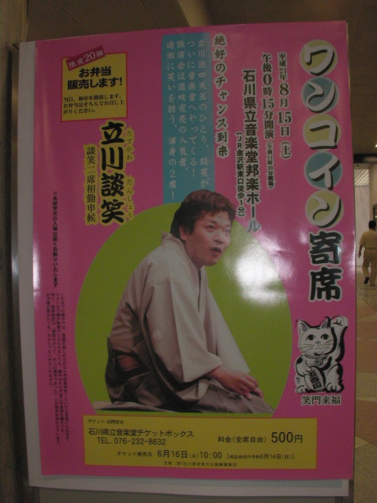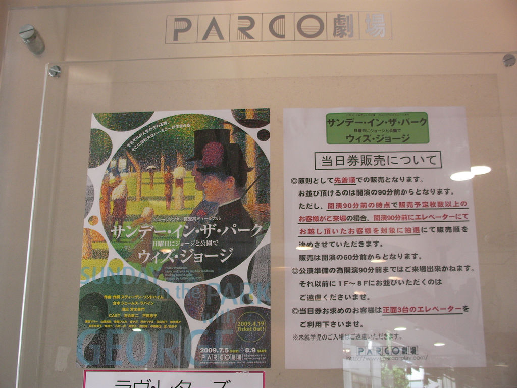 題名:Rent 日時:2009年8月22日18:00-20:40(途中休憩あり) 劇場:赤坂ACTシアター 料金:S席12600円 座席:1階F列29番(右ブロック通路側) 出演: Roger:Adam Pascal Mark:Anthony Rapp 他 満員立ち見です。舞台の左側にバンド、その上が舞台スペース。背景は煉瓦の壁に壁画付き、 真ん中にキャットウオークと階段。右側にがらくたのオブジェ、車と、、あとなんだろう? 来日したプロダクションもいくつか見ていますが、その中ではずば抜けてよい舞台でした。 主役のふたりが往年の雰囲気を漂わせている(といっても私は初演は見逃した!)だけではな く、アンサンブルが力強い。とにかく皆歌がうまい。心に染み渡る感じ。きれいに英語は発音して くれていて、台詞の部分はとても聞きやすい。でも歌になったとたんに聞き取れなくなる(泣) モーリーンのお尻美しい、エンジェルも身軽で歌がうまくてすばらしい。フラリッシュもきれい ああ初演の時にNYに行っていたはずなのになぜみなかったOrz 当時はさほど舞台鑑賞に のめりこんでいなかったのですねえ。過去に戻って自分に説教したい気分でしたよ。 PR 題名:ワンコイン寄席 日時:2009年8月15日12:15-13:15 劇場:石川県立音楽堂邦楽ホール(金沢駅前) 座席:2列目中央 番組: 桂宮治 饅頭怖い 立川談笑 錦明竹 立川談笑 片棒・改 ちらしには次のような断り書きがありました ---- これまでの様子では、落語を楽しめるのは小学校高学年くらいだと見受けられます。 小さいお子さまが無理やり入られましても、集中が持たず逆に可哀想な様子です。 特に、談笑師匠は「寄席はかつて大人の悪所であった」との信念をもたれています。 お子様が聴かれてもわかりづらいかもしれません。 ---- うーん、いろいろあったのでしょうか? 客席は1階がほぼ満席。 宮治さんはじめてききました。言葉にメリハリがあって聴きやすい。わかりやすいま んこわでしたね。客席も暖まっていきます。 談笑師匠登場し、1席でよいはずが、某所で2席やると約束してしまったのでと、 2席たっぷり演じてくれました。師匠は主催者側から政治と宗教の話はするなと堅 く釘をさされていたそうで、森元首相にちょっとふれただけでアパホテル社長宅へ インタビューにいった話を枕に。副業が枕に活きるということなんでしょうかね。 バカなよたろうと主人の対比、使者の滑らかな口上、煮詰まる奥さんが、真打ちが 前座噺をするとおもしろくなるのだということを示してくれてます。 談志家元のケチ話を枕にふってケチの噺に行くはずが出だしが「おいよたろう」 場内笑い、談笑師匠は高座上ででんぐりがえりw錦明竹に引きずられたのですね。 改となっているのは長男がミスターレディ、次男はパレードをはなすのですが、その 中にでてくるのはネズミの国とSFX。三男はもちろんケチなのですが、そこがXXX人 となっておりまして、片棒がでてきませんw 談笑師匠としてはきわめて穏当な枕に 噺でちょっと拍子抜けだったかもしれませんが、非常にお買い得感あふれる寄席で ありました。ワンコイン寄席は本来上演時間が1時間の寄席なのですが、今回は1時 間半、かなり得をした気分です。これで500円ですからねー。 題名:圓朝まつり2009奉納落語会第二部 日時:2009年8月9日15:15-16:15 会場:谷中全生庵地蔵堂 料金:2000円 番組:(客の投票により決定) 座席:最後列中央 むかし家今松 夏の医者、千両蜜柑、ざこ八、厳柳島、大山詣り よりひとつ ざこ八 桂南喬 明烏、佐野山、富士詣り、へっつい幽霊、松曳き よりひとつ へっつい幽霊 毎年恒例円朝祭りに伴う落語会です。 はがきによる抽選でチケットが購入できる 仕組みのです。もちろん満員、何度も膝送りをしていました。 番組は観客による投票で決定されます。 南喬師匠の方は、松曳き23、へっつい 51、富士33、明烏32、佐野山8であっさり へっつい幽霊に決定!今松師匠の方は、大山33、巌柳島30、千両30、ざこ八31、 夏の医者20と接戦だったため、決戦投票へ。挙手でざこ八になりました。ちなみに 私が投票したのは松曳きと巌流島、両方はずれOrz そのまま大山詣りをかければ よいものを、どうやら司会の師匠さんたちはザコ八をかけさせたかったようです。 ざこ八、最初のいい噺と最後のどたばた夫婦喧嘩の組み合わせがどうも違和感あ り。導入部も大家さんが怒髪天をついていてもおかしくないのに、よく来たな座れ、 というのもなんだか?滅多にかからない噺というのはそれなりに理由があるのだ なあということがわかる作品でした。今松師匠も同様の違和感を感じておられて、 これでも手直しされているとのこと。 へっつい幽霊はばっちり楽しめました。間抜けなお化けと若旦那がいい感じです。 圓朝まつりのフィナーレはもちろん住吉踊り! 題名:サンデー・イン・ザ・パーク・ウィズ・ジョージ 日時:2008年7月26日14:00-16:35(途中休憩あり) 劇場:パルコ劇場 料金:10000円 座席:C列15番(6列目センター) 作曲・作詞:スティーヴン・ソンドハイム 台本:ジェームス・ラパイン 演出:宮本亜門 翻訳: