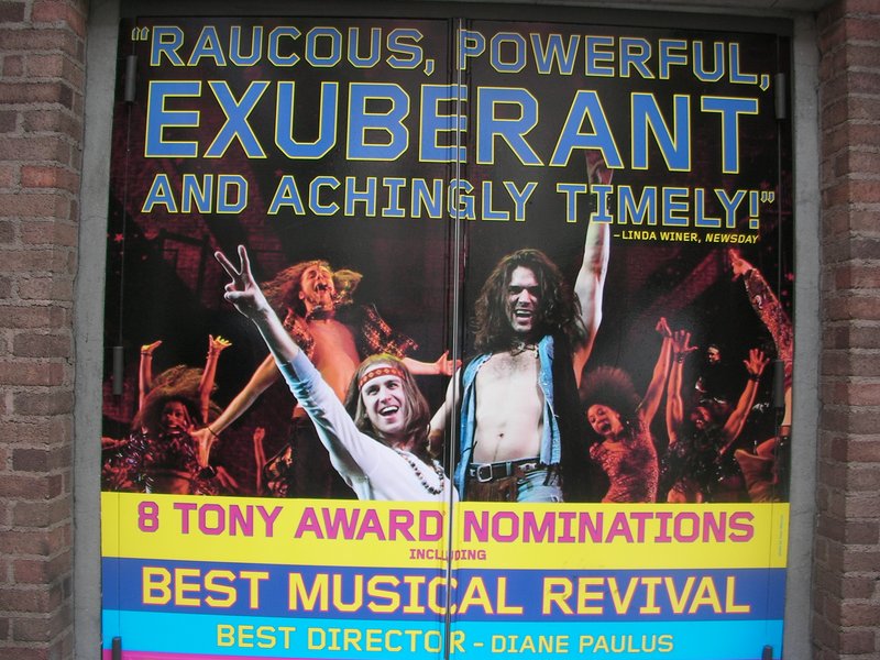 題名:Le Corsaire 日時:2009年5月30日20:00-22:30(途中休憩あり) 劇場:Metropolitan Opera House(NY) 料金:ORCH Prime 104USD + ABTWeb手数料 5.5USD 座席:ORCH C111 出演: Conrad, a pirate: Marcelo Gomes Birbanto, his friend: Carlos Lopez Ali, the slave: Jose Manuel Carreno Lankendem, owner of the bazaar at Adrianople: Daniil Simkin Medora, a young Greek woman: Nina Ananiashvili Gulnare, Medora's friend: Maria Riccetto Seyd, pasha of the Isle of Cos: Roman Zhurbin Lead Pirate Woman: Marian Butler Pirates: Gray Davis, Jeffrey Golladay, Blaine Hoven, Vitali Krauchenka, Patrick Ogle, Luis Ribagorda, Arron Scott, Isaac Staapas Pirate Women: Kelley Boyd, Isabella Boylston, Maria Bystrova, Zhong-Jing Fang, Nicole Graniero, Luciana Paris, Karen Uphoff, Jennifer Whalen Odalisques: Sarah Lane, Misty Copeland, Yuriko Kajiya Red Guards: Alexei Agoudine, Kenneth Easter, Joseph Gorak, Joseph Phillips Merchants: Roddy Doble, Jose Sebastian, Sean Stewart, Eric Tamm Bazaar Women: Eun Young Ahn, Gemma Bond, Nicola Curry, Caroline Duprot, Amanda McGuigan, Elizabeth Mertz, Jessica Saund, Christine Shevchenko, Devon Teusher, Leann Underwood Pirates' Dance: Marian Butler, Carlos Lopez, and Pirate Men and Women Forband: Marian Butler, Carlos Lopez, and Isabella Boylston, Luciana Paris, Luis Ribagorda, Isaac Stappas Pasha's Assistant: Alexei Agoudine Women in Yellow: Isabella Boylston, Marian Butler, Maria Bystrova, Sasha Dmochowski, Anne Milewski, Renata Pavam Women in Orange: Nicole Graniero, Leizabeth Mertz, Luciana Paris, Jessica Saund, Hee Seo, Mary Mills Thomas Women in Red: Eun Young Ahn, Gemma Bond, Kelley Boyd, Nicola Curry, Caroline Duprot, Amanda McGuigan, Elina Miettinen, Lauren Post, Kelly Potter, Devon Teuscher, Jennifer Whalen, Katherine Williams Children: Anastasia Barsukova, Ana Catherine Eustace, Camila Ferrera, Rachelle Fleury, Aquinnash Fox, Catherine Hurlin, Lindsay Karchin, Petra Love, Eve Marinelli, Cassidy McAndrew, Alessa Meni, Madeline Wittmann, Joseph Aboaf, Addison Albano, William Lese, Rory Lyndon, Kai Monroe, Phillip Perez, Joseph Shashaty Pasha's Wives: Gemma Bond, Nicola Curry, Caroline Duprot, Nicole Graniero, Isadora Loyola, Amanda McGuigan, Lauren Post, Kelley Potter, Jessica Saund, Christine Shevchenko, Sarah Smith, Devon Teuscher, Mary Mills Thomas, Leann Underwood, Jennifer Whalen, Katherine Williams Conductor: Daivd LaMarche Nina Ananiashvili がABTを引退するという話を聞いて見に来ました。演目として 海賊を見るのはこれが二度目。海賊はやはり大きく非常にダイナミックな 動きで魅せてくれます。 Ninaを見に行ったのに一番目を惹いたのは実はLankendem役のDaniil Simkin. 非常にスムースに重力を感じさせずにバレリーナをリフトしていて、なかなかのもの だと思っていたら、ソロでジャンプが思いの外高くて美しく、客席がどよめきました。 Conradは大きな体がより大きく見える動きでみていて晴々。 パシャの小芝居がかわいい、何度も客席から笑いが漏れてました。こういうキャラクター がひとりいるだけで舞台がかなり閉まりますね。 Aliは筋肉もすごいが、それに違わずジャンプもすごい。だてに半裸になってませんね。 Nina はやはり優雅でゆったりとした動きに気品が漂っておりました。ただジャンプが こころなし低い。幕間に私の席の後ろの老夫婦がNinaはとてもシャープで11年前 にもみたと昔話をしていましたよ。しかし2幕になるとNinaの素晴らしさはひかりました。 いやーアダージョはすごかった。うまく言葉にできません。回る回る、皆回る、 そして飛ぶ!どうして決めポーズがそんなに美しいの?ダンサーが飛びついて ばしっとポーズを決めるところが非常にきれいにきまっていました。ホントに技術の 2幕です。 しかし、冷静に考えてみるととんでもないストーリーなんですよねえ。 他人が金にあかせて買った奴隷を、商人もろとも拉致しちゃうという話ですから。。 2時間半みておなかいっぱい。 PR 題名:Hair 日時:2009年5月30日14:00-16:25(途中休憩あり) 劇場:Al Hirschfeld Theatre(NY) 料金:ORCH 122USD + telecharge 9.5USD 座席:ORCH C109 演出:Diane Paulus 振付:Karole Armitage 装置:Scott Pask 衣装:Michael McDonald 照明:Kevin Adams 音響:Acme Sound Partners トニー賞リバイバルミュージカル作品賞受賞。 満員です。なんとなく客席も自由な雰囲気。 代役がひとりいるのはまあ想定の範囲内でしょうか。この作品は、評価がよくて良席があっと いう間になくなってしまい、どうしようか悩んでいたのですが、三日前になってプレミア席と してブロックされていたらしい場所がでてきたのを無事購入できました。 開演前の舞台の幕には満月が投影されています。 左右の2階席の張り出しまで舞台から梯子がかけてあり、行き来できるようになっています。 バンドは舞台の後方、古いトラックの上と台のうえに鎮座しています。 舞台から1階の通路に降りれるように階段がしつらえています。また2階席に上がれるように 舞台の左右にはしごをしつらえてあります。かなり頻繁に客席に出てきて客いじりをするの ですね。これは通路側が美味しい。最前列前も頻繁にキャストが通っていじっていました。 開演前に隣に座ったおばさんが話しかけてきました。これをみたことがあるのか?ないとい うと「これは60年代の文化が完璧にはいっている!」と力説。私は60年よりちょっと前の生 まれだともうしたところ、そのころはもう