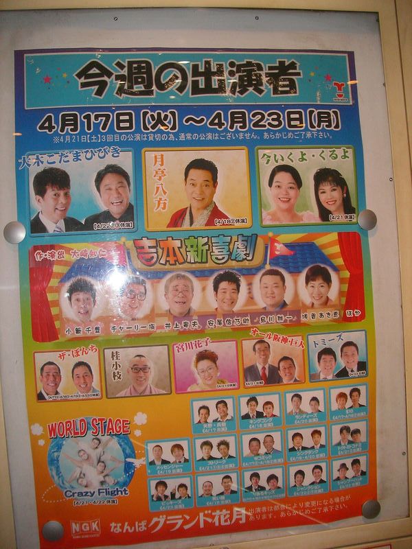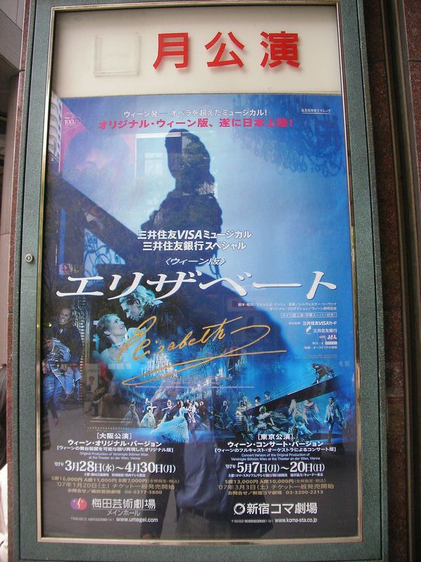 題名:なんばグランド花月 春満開大爆笑公演 日時:2007年4月22日9:45-12:20 劇場:なんばグランド花月(NGK) 料金:4000円 座席:1階B列18番(2列目センターブロック右端付近) 番組: 9:45~ シャンプーハット 漫才 9:55~ 桂小枝 漫談 10:05~ ザ・ぼんち 漫才 10:20~ 宮川花子 漫談 10:35~ 大木こだまひびき 漫才 10:50~ 月亭八方 漫談 11:05~ 今いくよ・くるよ 漫才 11:20~ 休憩 11:25~ 吉本新喜劇 「家庭教師はツライ」 作・演出 大崎 知仁 出演:小籔千豊、チャーリー浜、井上竜夫、安尾信乃助、烏川耕一、浅香あき恵 ほか 一ヶ月前のチケット発売日に吉本のWeb(じゃんじゃんネット)から購入。 NGKを見たのはこれで2回目、前回は全席自由だったので開場とともに阿鼻叫喚?の 図が展開されたのに、今回は指定席なので開演ぎりぎりにゆっくりときても大丈夫。 劇場前のチケット発券機に支払いをしたクレジットカードを差し込めば、自動的に チケットが印刷されて出てきました。 劇場内は飲食自由、当然売り子多数。イカ焼き300円也って何もの? 場内は満員、最後列には立ち見もちらほら。朝10時前からこれだけの集客はさすが吉本。 舞台の前半は各自10分ー15分の持ち時間での漫才と漫談。シャンプーハットは 前説込みで前座という感じでしょうか。海パンを膝まで下げて走るという設定 等のぬるい笑いですが、客席も暖かく見守っていました。暗転すると出てくる高座、 台の上に座布団が敷いてあり、その台がごろごろ動いてくるのでした。小枝さんは レポーターなんですか?漫談の途中に派手な仕草、針縫いや焼き芋食いなどがはいって 受けてました。この大きな劇場で一人の仕草で笑わせるのですからたいしたもんです。 ぼんちを見たのもはじめて、TVで見てたときよりだいぶ老けましたねえ。いつ 見ても波乱万丈に出演するというネタでした。おさむちゃんのハイテンションを生で 見ることができて満足。宮川花子さんも初見、相方の大助さんが倒れたことをネタに したピンでの漫談、いやこれが面白い。話といい、間といい見事なものです。また 聞きたいと思いましたよ。漫才だとどうなんだろうなあ、大助さんの早い復帰を 祈っています。大木こだまひびきは慣用句に突っ込みをいれるパターン、この人たち はTVCMに出てるんですか?ちっちきちー? またまた高座がごろごろと出て、今度は背景も松の絵に変わって八方師匠が登場。 師匠が子供のころの噺で、子供をしかるうつみのおっさん、というネタ。師匠の ちゃんとした噺を聞いてみたいです。ここでは落語が色物、ちゃんと膝代わりの 位置にいるんですね。トリはいくよくるよ、くるよさんの衣装がずり落ちる お約束を始めてみました。最後はスカートが足元まで落ちてしまって、マーメイド スタイル? 前半の番組が終わったら幕が下がり客電がつきました。でもインターミッションと いえるほどの時間はなく、すぐに吉本新喜劇が始まりました。トイレにダッシュで 行って戻ったらもう幕が開いてしまってましたよ。 舞台は立派な客間、女社長の一人息子が暴走族にはいってぐれてしまっているという 設定。チャーリー浜氏が先生役で登場し、お約束?のギャグを立て続けに炸裂させ ました。場内笑いの渦、これはやはり関西の伝統芸能といっても過言ではない技 ですよねえ。少しの言葉でこれだけ受けるのってほんとに素晴らしいものです。 吉本文化の蓄積がない私にとっては何がおかしいのかさっぱりわかりません。 ブロードウェイでコメディを見て、周りが皆笑っているのにさっぱりわからない 状況とほとんど同じでした。NYでも大阪でも異邦人の私 ;_; 作品としては、シリアスを演じる者とコテコテのギャグを具現する者とが混在し、 緊張と緩和を繰り返すコメディの王道を行く演出になっています。 主役である家庭教師(小籔千豊)がギャグをもっぱら受け持ち、そこに他のシリアス役が つっこむという展開。物語は息子が心変わりして暴走族から抜け、ハッピーエンド。 話の展開にまったく説得力がありませんが、それを突っ込むのはやぼというもの でしょうか。宝塚歌劇と同じく、筋書きはあくまで脇役、ギャグを引き立てる(宝塚 の場合はトップを引き立てる)ためにあるものなのでしょう。別の作品も見てみたい ものです。 PR 題名:エリザベート 日時:2007年4月21日17:00-19:50(途中休憩あり) 劇場:梅田芸術劇場 料金:S席16000円 座席:1階11列21番(左側ブロック8列目) 梅田芸術劇場にはじめてはいりました。梅田駅からちょっと歩きます。 三階まであるのね。相当広い劇場です。客席のほとんどが女性、普通 のミュージカルより観客年齢が高そうなのはチケット価格が通常の ミュージカルより高いせいでしょうか。ドイツ語ミュージカルなので 舞台の左右に字幕有り。劇中で翻訳を読んでいるとあらたな発見あり ましたよ。この翻訳を信用するならば、日本語版とはだいぶニュアン スが違いますね。黒い前幕にはエリザベート横顔の切り抜き、 そこからキャストが出入りすることがあ