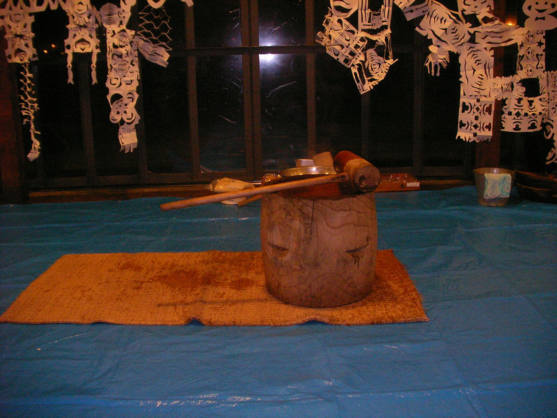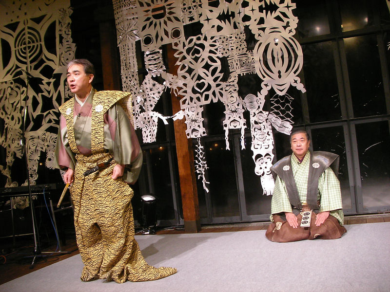 題名:朧の森に住む鬼 日時:2007年1月14日12:00-15:23(途中休憩あり) 劇場:新橋演舞場 料金:S席12600円 座席:前半1階2列39番(最前列右端スピーカー前)、後半2階2列33番(2階2列目右より) 劇団:劇団☆新感線 作:中島かずき 演出:いのうえひでのり 美術:堀尾幸男 照明:原田保 衣裳:小峰リリー ヘア&メイク:高橋功亘 振付:川崎悦子、松本錦升 アクション・殺陣指導:田尻茂一、川原正嗣、前田悟 アクション監督:川原正嗣 音楽:岡崎司 音響:井上哲司 音効:末谷あずさ、大木裕介 小道具・甲冑製作:高橋岳蔵 特殊効果:南義明 歌唱監督:右近健一 演出助手:山崎総司 舞台監督:芳谷研 制作:真藤美一(松竹)、柴原智子(ヴィレッジ) 制作協力:劇団☆新感線、ヴィレッジ 主催・製作:松竹株式会社 出演: ライ:市川染五郎 キンタ(ライの弟分):阿部サダヲ[大人計画] ・エイアン国・宮廷人など イチノオオキミ(大君):田山涼成 ソキブ(大君側室):高田聖子 ツナ(四天王 検非違使の長):秋山菜津子 ウラベ(四天王):粟根まこと サダミツ(四天王)/サダミツ似の兵士:小須田康人 ヤスマサ(四天王):横山一敏 ショウゲン(検非違使):河野まさと ダザイ (検非違使):礒野慎吾 インギン(検非違使):武田浩二 アラドウジ(検非違使):川原正嗣 オクマ(ツナの下女):中谷さとみ ・エイアン国・暗黒街ラジョウの民 マダレ(暗黒街のボス):古田新太 フエ:山本カナコ ハ:前田 悟 ・オーエ国の戦士 シュテン(オーエ国の姫):真木よう子 バラキ(シュテンの副官):村木 仁 トラド(シュテンの部下):逆木圭一郎 ホシド(シュテンの部下):吉田メタル カネド(シュテンの部下):保坂エマ ・エイアンの官女、ラジョウに集う人々 愛田芽久、安藤由紀、池永悦美、岡久美香、戸田朱美、中間千草、NAMI、松下美穂、 優花えり 満員です。新橋演舞場にくるのは久々。中島かづきさんの久々の新作 前半と後半で座席を交換して見てみました。 幕があがると頭上から雨が、、舞台前方に雨のカーテンが出来ているのでした。 その中で濡れながら大立ち回り。びんぼくさいかっこうでの戦いでこれから どうやってのし上がっていくのか楽しみ。朧の森では骸骨がある滝でもっとの水。 朧の森で魂を売り渡した?主人公はこれからとんとん拍子に出世。 鬼が求めるものは主人公の命、自分で自分を殺した場合にのみ命をとられる という契約。うーむ、抜け道はいっぱいありそう。 当人の嘘つき能力のおかげで嘘に嘘を重ねて他人を手玉に取って行きます。 ハウツーサクシードの悪者版といった風情で、悪い奴がぐんぐんのしあがる のが小気味良い。まずは敵に通じようとした将軍を出会い頭で倒した後、 相手国との交渉にその将軍の名を騙って対峙、相手国から金をせしめておいて 母国に戻ってその金を使って暗黒街のボスに顔をつなぐ。戦場から将軍の 遺言を伝えるという嘘をついて、でかいほうの国の四天王に取り込む。 舌先で女を手玉にとっていく、 悪であることがかっこいい。まあ良い奴なんて出てこないんですが、 嘘部の民のようなXXさんはきれい。いやー。 しかし、森の鬼に魂売ったことで良い事あったの? 阿部サダヲが凄く良く動く。とくに目が見えなくなった後が素晴らしい 座頭市やってもいいかも。情けない大君もなかなか風情あり。 本水が流れる 滝から川で、最後に滝に打たれて真っ赤な血の川。 もうちょい舌先三寸の切れがあればいいのに。 兄弟というだけで手の平返すのはちょっと弱いか。 小須田さんの歌があると思ったのにい。 新感線の芝居は出ていて楽しいなとは某氏の言葉。 PR 題名:狂言「寝音曲」 日時:2006年12月31日23:00-23:20 劇場:金沢市民芸術村Pit3 料金:無料 座席:最前列センター 出演: 太郎冠者:野村祐丞 主人:炭哲男 後見:鍋島憲 あらすじ:(ちらしより) 主人に、自分の前で謡いを謡うように命じられた 太郎冠者は今後、たびたび謡わさられては困ると考え、 「酒を飲まないと謡えない」と断ります。それならばと 主人は酒を飲ませますが、今度は「妻の膝枕で寝ながら でないと声がでない」と嘘を言います。どうしても謡い を聴きたい主人は自分の膝を貸すことにします。太郎冠 者は謡いはじめますが、寝ているときは謡えるのに、起 きると声がでなくなるようなふりをします。主人が何度 も起こしたり膝枕におろしたりするうちに、太郎冠者は 取り違えて起こした時に声を出してしまい。結局見破ら れてしまいます。 金沢市民芸術村10周年記念オールナイトイベントの一環です。 22時頃に会場につくとまだほとんど人がおらず、そこにいる スタッフらしき方と目があったら「狂言ですか?」と聞かれ、 「はい」と応えると「ではご案内します」。ええ、ここじゃ ないの?と思いつつ会場を出てついていくと「富山の方も こられています」。えーとえーと、よく確認したら出演者 と勘違いされたのでした。22時に出演者と待ち合わせして いたのだそうです(^^;) 炭さんと間違われたの?? 狂言の前には餅つきイベントがありました。もちろん 私も餅をつきました。ついた餅を客席後方