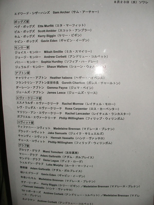 題名:シザーハンズ 日時:2006年8月23日ソワレ 劇場:ゆうぽうと簡易保険ホール 料金:S席12000円の半額 6000円 劇団:ニューアドベンチャーズ 振付・演出:マシュ−・ボーン 座席:後方左より 朝日新聞招待はずれ券の半額サービスで観劇でした。 左右両端ブロックは完全に空席でした。 これはダンスプレイです。歌はありません。台詞ありません。 生オケもありません。うーん、なんだか皆さん動きがもっさり。 日本公演の前の韓国公演で疲れちゃったのかなあ。 シザーハンズはたしかにかわいいし、二幕の群舞も見ごたえがありました。 パーティの群舞シーンはAMP白鳥の舞踏会シーンみたい。 しかし全編を通してダンスというよりパントマイムによるストレート プレイを見ているようでした。ジャンプはあるしピルエットはあるし、 群舞もあるのですよ。しかし全体的な印象が踊ることよりも物語を語る ことに重きをおいている感じがするのです。やたら説明クサイ動きとでも 言いましょうか。これなら台詞入れてその分動きに自由度持たせた方が ずっと面白いものになっていた気がしますね。 PR