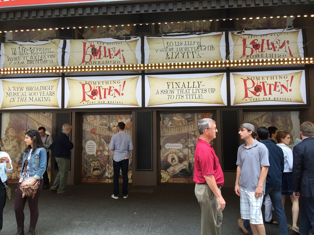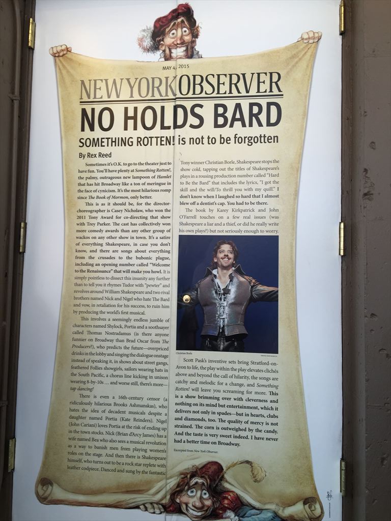 題名:Hand to God 劇場:Booth Theatre 日時:2015年6月7日15:00-17:00(途中休憩あり) 料金:TKTS 75.5USD+ TKTS手数料4.5USD 座席:ORCH BB104(1階2列目センター) Cast List: Steven Boyer - JASON/TYRONE Geneva Carr - MARGERY Marc Kudisch - PASTOR GREG Sarah Stiles - JESSICA Michael Oberholtzer - TIMMY Production Credits: Moritz von Stuelpnagel (Direction) Beowulf Boritt (Scenic Design) Sydney Maresca (Costume Design) Jason Lyons (Lighting Design) Jill BC Du Boff (Sound Design) Marte Johanne Ekhougen (Puppet Design) Other Credits: Written by: Robert Askins Synopsis: The good children of Cypress, Texas are taught to obey the Bible in order to evade Satan’s hand. But when students at the Christian Puppet Ministry put those teachings into practice, one devout young man’s puppet takes on a shocking personality that no one could have expected. The uproarious and provocative HAND TO GOD centers on shy, inquisitive student Jason, who finds an outlet for his burgeoning creativity at the Christian Puppet Ministry in the devoutly religious, relatively quiet small town of Cypress, Texas. Jason’s complicated relationships with the town pastor, the school bully, the girl next door and—most especially—his mother are thrown into further upheaval when Jason’s hand puppet, Tyrone, takes on a shocking and dangerously irreverent personality all its own. HAND TO GOD explores the startlingly fragile nature of faith, morality and the ties that bind us. The New York Daily News says, “HAND TO GOD is bound to leave you sore from laughing. It can’t be outdone—and shouldn’t be missed.” 1階席ほぼ満員。TKTSで2列目センターが出てきました。20分並んだかな。 床が目のたかさなので多少見づらいですが、まあ問題なし。 舞台はどこかの教室のよう、懺悔室らしき場所あり。 Flying high for Jesus、The LORD is my Shepherd というポスターあり。 懺悔室の幕が開くと人形が前口上、これまたダークで笑いがでます、 そして日曜学校の人形劇の練習から物語が始まります。 主人公は気弱なんですが、左手のマペットを1日中つけており、それが まるで生きているかのよう。別に腹話術をしているわけではないのですが、 独自の命があるようにみえてきます。 そのマペットが勝手に彼女に暴言はいておもわずたたきつけ、、、 そうこうするうちに母親は友人とできてしまい、そこのシーンがワイルドで凄い。 人形劇をするとよくないことが起きると主張しますが、母親によって続けるように 強制され、口から人形をやぶってしまいます。 まるでゾンビみたいな形になった人形にベッドの上で起こされ、そこからの一人芝居 *ひとりと一匹*が鬼気迫る演技。。 本当に左手が別に生きていて勝手に意識をもって、主人公の暗黒面が表面化したみたい、。 舞台はくるりと回って教会から外のブランコ、そして車中へと展開します。 母親と寝た友人の耳を、マペットが食いちぎってしまって1幕おわり。 どうなるかどきどき!壮絶な演技です。もうぐずぐずで壮絶、。 これ主演男優賞でもおかしくない。やっぱり笑いにはついていけないところあり。 2幕は別室で耳を縫い合わせるところから始まりました。 元の部屋に戻ると、そこは人形地獄? 人形が刺されたり血塗られたり、 怪しい記号がかかれていたり、いかにも悪魔憑きがやったよう。 悪魔祓いをしに来ますがもちろん返り討ちにあいかけ、、またまた閉じ込めたままで 別室でこれまたあれやこれやお母さん大奮闘、神経衰弱ギリギリの人たち、でもこちら 側にいるだけにより一層すごさが伝わってくるといった感じ。 窓から主人公が思いを寄せていた彼女がグラマラスな人形と一緒に侵入。 譜面台の上でくんずほぐれつ始めてしまいます。 譜面台の上では前戯から始まって体位を変えてと、すごくエネルギッシュに やっているのに、パペットを扱っている人間のほうは本当につまらなそうに やっているギャップがすごい。お子様には見せられないシーンです とうとうパペットに反抗した主人公は乱闘の末、パペットを脱ぎ捨てることに成功、 しかし白い布を手にかけてふいていると、ふたたび手が襲ってきて、、、 それを止めるためにハンマーで自分の左手を強打、最後にはくぎ抜きのほうで 強打しようとしたところ母親が止めて代わりに母親の手を強打。 みんな血みどろになって幕。。。 かと思ったら、そこから大きなパペットが出てきて一人語りが始まりました。 かなーり怖い終わり方でした。万人にはすすめられませんが、よくできた後味悪い 芝居を見たいという方におすすめです! TONYのどれかとってくれないかなーーと願ったのですがだめでしたね。 それにしてもキャスト全員がテンションすごく高くて、血管ブチ切れそうでしたよ。 ほんとにダークで濃密な空間でした。 2時間があっという間に過ぎてしまいました。 PR 題名:ALAN CUMMING SINGS SAPPY SONGS 劇場:CAFE CARLYLE 日時:2015年6月6日23:20-24:40(開演予定は22:45だが客入れで30分以上) 料金:(Cover 80USD + F&Bmin 25USD) +tax +tip (今回は合計130USD) 座席:入り口近くの壁の前に立ち席 解説: Alan onstage with his long time collaborator and Emmy-winning musical director, Lance Horne, and cellist Eleanor Norton debuts his brand new concert Alan Cumming Sings Sappy Songs at the legendary Cafe C