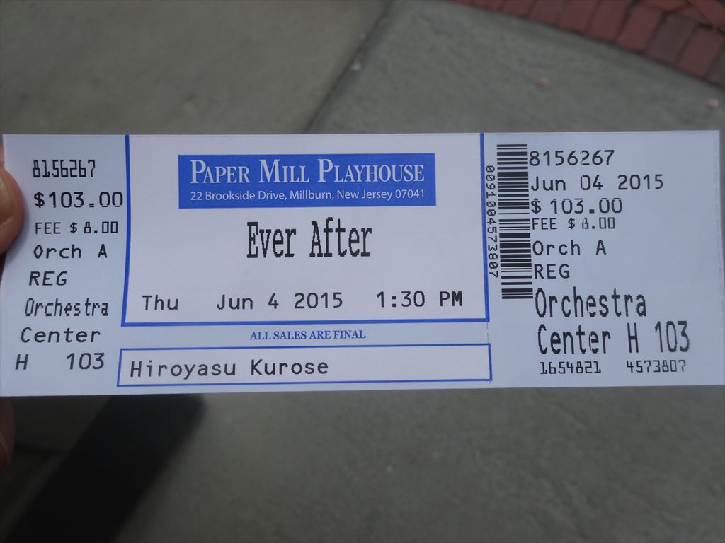 題名:HIROMI: THE TRIO PROJECT ft. ANTHONY JACKSON & SIMON PHILLIPS 劇場:Blue Note New York 日時:2015年6月4日22:45-23:55 料金:テーブル55USD+Web予約手数料6.5USD 座席:ピアノの真横、通路を挟んだ奥のテーブル(AMEX GOLDによるVIP席確保) 出演:HIROMI, ANTHONY JACKSON, SIMON PHILLIPS Savionがあまりによかったので、二日続けてBlue Note 通い。 今度は写真撮影一切禁止。 鍵盤がちょうど横から見える位置で超絶技巧を堪能。 Savion の時の床がキーボードに変わっただけですごさは同じレベル? 肘から先の筋肉のうねりがすごい、そして打鍵が見えません。 指が独立した命を持っているように思えてきます。 指を見てるだけで惚れました。これまたあっというまの1時間余。 もうこの距離で聞くことはないだろうなあ。 PR 題名:Gigi 劇場:Neil Simon Theatre 日時:2015年6月4日19:00-21:30(途中休憩あり) 料金:BroadwayBox割引89USD 座席:ORCH F-111 Synopsis: Set in the magical world of La Belle Epoque Paris, where fashion, glamour and passion prevail, Lerner and Loewe's celebrated musical is a romantic comedy about one young woman's journey to find her true self…and her true love. Featuring standards including "Thank Heaven for Little Girls" and "The Night They Invented Champagne. " Cast List: Hannah Florence(Gigi) (Vanessa Hudgensの代役) Victoria Clark(Mamita) Dee Hoty(Aunt Alicia) Corey Cott(Gaston Lachaille) Howard McGillin(Honoré Lachaille) Steffanie Leigh(Liane d'Exelmans) Cameron Adams(Parisian) Max Clayton(Martel, Parisian) Madeleine Doherty(Parisian) Ashley Blair Fitzgerald(Parisian) Alison Jantzie(Parisian)(Hannah Florenceの代役) Brian Ogilvie(Parisian) James Patterson(Dufresne,Parisian) Justin Prescott(Charles,Parisian) Manny Stark(Bonfils,Parisian) Amos Wolff(Sandomir, Parisian) Ashley Yeater(Marie-Louise,Parisian) Karla Puno Garcia(Parisian) Kathryn Boswell(Swing) Jeffrey C. Sousa(Swing) Richard White(Swing) Production Credits: Eric Schaeffer (Direction) Joshua Bergasse (Choreography) Derek McLane (Scenic Design) Catherine Zuber (Costume Design) Natasha Katz (Lighting Design) Kai Harada (Sound Design) James Moore (Musical Direction) John Miller (Music Coordinator) August Eriksmoen (Orchestrations) Matt Aument (Vocal and Incidental Music Arrangements) Sam Davis (Dance Music Arrangements) Other Credits: Lyrics by: Alan Jay Lerner Music by: Frederick Loewe Book by Heidi Thomas なんとーーーー Vanessa が休演ですと!!! 昨日のマシューに引き続き、主役の休演にぶちあたりました。 この時期に来て二日続けて主役休演は初めての経験です。もうがっかり。 この舞台で私は何をみればいいのー(涙) 舞台はもっさりしたダンスに、ストレートなボーイミーツガール.、まあ 育てゲー?、という物語。 パリの社交界へデビュー前の小娘を愛してしまった男の話ですね? 社交界のダンスと衣装賞ノミネートの華麗な衣装が目玉ですかね。とはいえ話 に起伏がなく、ダンスもいまひとつです。 Vanessaの代役の子は歌も演技も悪くない。でもVanessa見たかった。。 代役の子は目も口も大きくて舞台映えしそう。でも背が小さくてそういう顔で子供 体型なのでロリータを見てる気分。未成年にシャンパン飲ませちゃいけませんよ、 と思っちゃいました。 この子きっと伸びるだろうなあと思いつつ、そういう演技じゃなくて見世物的なも のを期待していたからなあと、、、 女の子にどんどん惹かれていくグスタフが結構よかった。すれてない草食系おじさん の風情がありました。ただお子様と草食系おじさんだから意外とぴったりきてるので あって、これVanessaだったら女性上位になってしまうんじゃないかなあとも妄想 しちゃいましたよ。 案の定6月21日でクローズです。 題名:Ever After 劇場:Paper Mill Playhouse(NJ) 日時:2015年6月4日13:30-16:10(途中休憩あり) 料金:111USD 座席:ORCH H103 Christine Ebersole (Baroness Rodmilla de Ghent) Margo Seibert (Danielle de Barbarac) James Snyder (Prince Henry) Charl Brown (Captain Laurent) Mara Davi (Marguerite de Ghent) Annie Funke (Jacqueline de Ghent) Julie Halston (Queen Marie) Andrew Keenan-Bolger (Gustave) Charles Shaughnessy (King Francis) Tony Sheldon (Leonardo da Vinci) Zina Goldrich (Composer), Marcy Heisler (Book and Lyrics) Kathleen Marshall (Director and Choreographer) Mary-Mitchell Campbell (Music Supervisor) David Gardos (Music Director) Rick Sordelet (Fight Director) Derek McLane (Scenic Design) Jess Goldstein (Costume Design) Peter Kaczorowski (Lighting Design) Nevin Steinberg (Sound Design) Leah Loukas (Hair & Wig Design) Telsey + Company (Casting) Synopsis: The world premiere of a brilliant new musical based on the 1998 film starring Drew Barrymore and Anjelica Huston. This is no fairy tale. Ever After sets the record straight on the fable of Cinderella. It was never about fairy godmothers, talking mice, or magic pumpkins. Her name was Danielle and it was always about her wit, her smarts, her strength, and her good friend Leonardo da Vinci. She makes her own dreams come true. Warm and romantic, funny and smart, this is the musical you’ve been waiting for. 数年ぶりのPaper Mill Playhouse, Millburn のレストランはいくつかかわっているよ うで。昔よく食べたモンゴリアンバーベキューのお店はなくなっていました。 いつもは老人でいっぱいのこの劇場ですが、今回は子供たちの団体鑑賞もたくさんいま した。やはり演目がわかりやすいせいでしょうか。 この劇場はA-D列までが水平で、その後ろからだんだんと傾斜がついています。