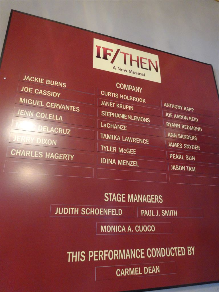 題名:New York Philharmonic Open Rehearsal 劇場:Avery Fisher Hall 日時:2014年6月5日9:45-11:45(途中休憩あり) 料金:20USD 座席:1階中央付近 番組: Christopher Rouse, "Symphony No. 4" (World Premiere – New York Philharmonic commission) Julia Adolphe, "Dark Sand, Sifting Light" (World Premiere) Max Grafe, "Bismuth: Variations for Orchestra" (World Premiere) Peter Eötvös, "DoReMi" (New York Premiere) 出演: Artists Alan Gilbert Conductor Midori Violin New York Philharmonic チャンスがあれば聞くオープンリハーサルです。 リハーサルなので通しをしない場合もあり、しばしば途中で止めて指示ややり直しなどが 起こります。 今回のは新進の作曲家の曲ばかりだったようで、指揮者と作曲家の打ち合わせも行って いたようでした。 弦楽器がとても明るく響く曲あり、不協和音でミステリーゾーンに突入するような曲あり。 20USDでこれを聞けるのはうれしい。 PR 題名:Bullets Over Broadway 劇場:St. James Theatre 日時:2014年6月4日20:00-22:45(途中休憩あり) 料金:Broadway offer 割引 110.25USD 座席:Left Mezzanine Row A, Seat 1(2階席左通路側最前列) Susan Stroman (Direction and Choreography) Santo Loquasto (Scenic Design) William Ivey Long (Costume Design) Donald Holder (Lighting Design) Peter Hylenski (Sound Design) Glen Kelly (Musical Arrangements and Supervision) Doug Besterman (Orchestrations) Andy Einhorn (Music Direction and Vocal Arrangements) Music by: Various songs from the 1920s and '30s Book by: Woody Allen 出演: BROOKS ASHMANSKAS(Warner Purcell) ZACH BRAFF(David Shayne) NICK CORDERO(Cheech) MARIN MAZZIE(Helen Sinclair) VINCENT PASTORE(Nick Valenti) BETSY WOLFE(Ellen) LENNY WOLPE(Julian Marx) HELÉNE YORKE(Olive) KAREN ZIEMBA(Eden Brent) JIM BORSTELMANN(Ensemble) PRESTON TRUMAN BOYD(Ensemble) JANET DICKINSON(Ensemble) BRYN DOWLING(Ensemble) KIM FAURÉ(Ensemble) CASEY GARVIN(Ensemble) KELCY GRIFFIN(Ensemble) DANIEL HORN(Ensemble) SARAH LIN JOHNSON(Ensemble) ANDY JONES(Ensemble) AMANDA KLOOTS LARSEN(Ensemble) KEVIN LIGON(Ensemble) SYNTHIA LINK(Ensemble) BRITTANY MARCIN(Ensemble) PAUL McGILL(Ensemble) JAMES MOYE(Ensemble; Sheldon Flender) BETH JOHNSON NICELY(Ensemble) ERIC SANTAGATA(Ensemble) 舞台はキャバレーから始まりました。虎の衣装の踊り達の ダンスシーンは楽しい。本物のキャバレーで見てみたい。 ギャングの群舞はどれも切れがよく、迫力満点でいかにも ストローマン。なんかダンスシーンになると違う舞台みたいw しかし筋書きもウディアレン、悪いわけありません。 一幕で光っていたのが愛人の歌とダンス、もう下手芸の極致、 最後はホットドックの着ぐるみを従えてダンス。 これもばっちり振りつけているのだろうと思うと恐ろしい くらいです。場内爆笑の渦がまいていました。 ショーストップは下手芸とギャングのタップでしたよ。 2幕はショーに的確なダメだしをするチーチがかっこいい。 ショーが成功するにつれてチーチの苦悩が増えていき、最後は 悲劇へと。あーあそこはスルーしてればと思っちゃいますよね。 良くできた筋書きに素晴らしいダンスでしたが、何の賞も取れ なかったのが寂しい。この作品が振付賞だと思ったんですが。。 題名:If/Then 劇場:Richard Rodgers Theatre 日時:2014年6月4日14:00-16:40(途中休憩あり) 料金:割引 Telecharge手数料込 109.45USD 座席:Section FMEZZ, Row A, Seat 6 Michael Greif (Direction) Larry Keigwin (Choreography) Mark Wendland (Scenic Design) Emily Rebholz (Costume Design) Kenneth Posner (Lighting Design) Brian Ronana (Sound Design) Carmel Dean (Musical Direction) Tom Kitt and Michael Starobin (Orchestrations) Other Credits: Lyrics by: Brian Yorkey Music by: Tom Kitt Book by: Brian Yorkey Synopsis: The musical follows two distinct storylines in the life of Elizabeth, a city planner who moves back to New York to restart her life in this city of infinite possibilities. When her carefully designed plans collide with the whims of fate, Elizabeth’s life splits into two parallel paths. If/Then follows both stories simultaneously as this modern woman faces the intersection of choice and chance. 出演: Elizabeth:IDINA MENZEL Kate:LACHANZE Lucas:ANTHONY RAPP Josh:JAMES SNYDER Stephen:JERRY DIXON Anne:JENN COLELLA David:JASON TAM Elena, U/S Kate:TAMIKA LAWRENCE Elizabeth Standby:JACKIE BURNS Ensemble, U/S Lucas, Stephen:JOE CASSIDY Ensemble, U/S David:MIGUEL CERVANTES Ensemble, U/S Lucas:CURTIS HOLBROOK Ensemble, U/S Anne, Elena:STEPHANIE KLEMONS Ensemble, U/S Josh:TYLER MCGEE Ensemble:RYANN REDMOND Ensemble, U/S Stephen:JOE AARON REID Ensemble, U/S Anne:ANN SANDERS IF/THEN Broadway Marc Delacruz Photo MARC DELACRUZ Swing, U/S David IF/THEN Broadway Charles Hagerty Photo CHARLES HAGERTY Swing, U/S Josh IF/THEN Broadway Janet Krupin Photo JANET KRUPIN Swing, U/S Elena IF/THEN Broadway Pearl Sun Photo PEARL SUN U/S Kate この劇場、こんなに2階が高かったのか。想定以上に 舞台までの距離がありました。うーん、我ながら怪しい 記憶力でした。1階の後ろが通常の中二階くらいの高さ まで上がっています。2階席も勾配が急で最後列はもの すごく高い位置となります。客席の間隔が狭く手すりが 低いのでうっかりすると1階に落ちるかも。。 舞台は鉄骨で組んだセット。2階にはキャットウォーク、 そこからまた上がる階段が左右にひとつずつ。 全部で4階、3階あたりでようやくこちらの高さ。 セットの天井になっていた部分の下はなんと鏡になって いたのでした。片方が持ち上がると45度に傾いて 床をうつしていました。 そして床には
