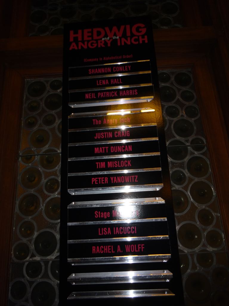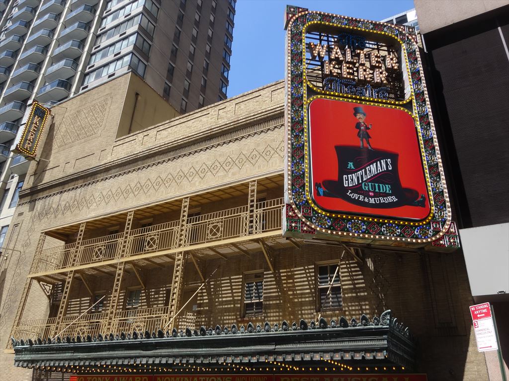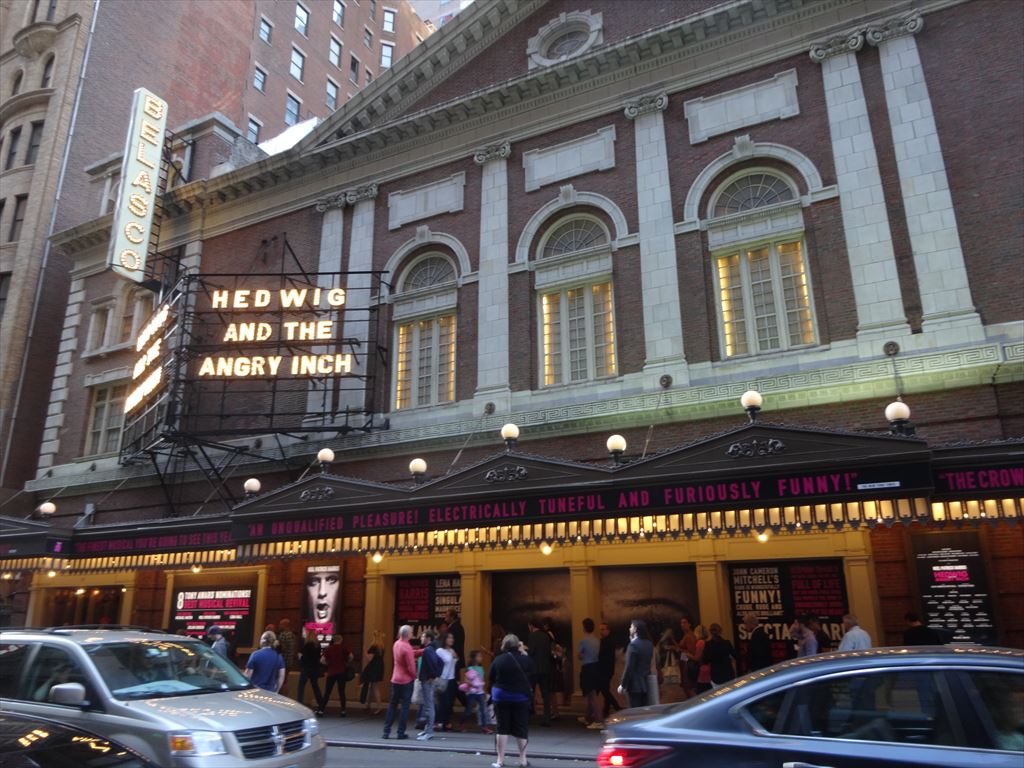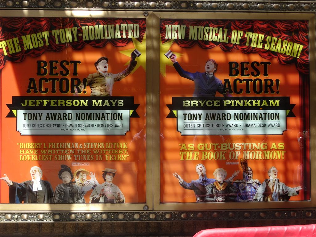 題名:iLuminate 劇場:New World Stages / Stage 4 日時:2014年6月2日19:00-19:55 料金:割引59.49USD 座席: Orchestra Row F, Seat 1 Miral Kotb (Director) Miral Kotb, John "JRock" Nelson, Dario Mejia, Marcus Allan Cobb (Choreographers) Miral Kotb (Lighting Designer) John "JRock" Nelson, Marcus Allan Cobb (Costume Designers) Written by: Miral Kotb and Athena S. Bienvenu Music by: Justin "Kanobby" Keitt and Christopher Tignor Synopsis iLuminate wowed the nation with their groundbreaking light suits on "America's Got Talent" and then took to the road, performing for awestruck crowds around the world. Now, iLuminate takes you on a fantastical journey in the latest production of their New York show, "Artist of Light," which tells the story of Jacob, a talented young artist who struggles to connect with the real world. He takes comfort in his magical paintbrush, which grants him the power to turn the characters of his imagination into living, breathing creatures. When a jealous bully steals the paintbrush and uses it for evil, turning Jacob's sweet creations into horrifying monsters, Jacob must face danger without the help of his miraculous tool. He fights to save his town and friends, all while knowing the paintbrush that brought him so much joy is now a weapon in the hands of a villain bent on destruction. Music, art, and the technological magic of iLuminate bring you a story of adventure and romance told through dance styles from contemporary to hip-hop to breaking and using the power of light. We invite you to join us for "Artist of Light," an original and wholly unforgettable theatrical experience! America's Got Talent を見ていて興味を引いた集団です。 一度リアルで見てみたいと思って来てみました。 舞台を真っ暗にして全身にプログラムされた照明をつけて、 様々なトリックを演出。前説までトリックがはいっており びっくりしました。 上下に胴体が別れたり、顔がとんでいったり、そして腕だけ がにょろにょろとなったり、ダンスの音にあわせて色がかわる。 ダンスと曲にあわせた照明効果は素晴らしい。暗闇を生か して空中浮遊や首がとんだり千手観音などは健在。 人間の顔すらイルミネーションで作っているのに感心。 確かにイルミネーションだと簡単に変身できるんですね。 思ったほどバリエーションは作れないのか、途中でちょっと 単調になったかも。でも見世物としては一度は見ておいて損は ない出来です。 PR 題名:Alice Ripley: Alice Imagines at 54 Below 劇場:54 Below 日時:2014年6月1日21:30-23:00 料金:割引34.75USD(Food & Beverage Minimum: $25) 座席:右寄りステージ前方席 出演: Alice Ripley Alice Imagines with special guests Louis Hobson & Jess Means 客席には空席あり。8割の入り? Next to Normal で感動したので聞きに来ました。最初は ドラムを叩きながらの歌、靴脱いで素足。伴奏はピアノのみ。 カーペンターズから A Song For You, Good Bye To Love 等スタンダードナンバーから始まりました。 Customer に関するポップな歌があって気に入ったのですが、 曲名不明。 レミゼ大好きということで、バリケードで皆が死んでいくと ころを熱演w、それから I Dreamed a Dream, Bring Him Home. Next to Normal から数曲をゲストと共に合唱。 サンジエゴでトライアウトをやっているヘンリーニールセン というミュージカルから数曲披露。 本当にパワフルな歌声でしたよ。 題名:Hedwig & the Angry Inch 劇場:Belasco Theatre 日時:2014年6月1日19:00-20:48 料金:Telecharge 手数料込 163.25USD 座席:ORCHESTRA Row L, Seat 9 Michael Mayer (Direction) Spencer Liff (Musical Staging) Julian Crouch (Scenic Design) Arianne Phillips (Costume Design) Kevin Adams (Lighting Design) Timothy O’Heir (Sound Design) Ethan Popp (Music Supervision) Lyrics by: Stephen Trask Music by: Stephen Trask Book by: John Cameron Mitchell 出演: HEDWIG:NEIL PATRICK HARRIS YITZHAK:LENA HALL GUITAR, KEYBOARDS, VOCALS:JUSTIN CRAIG BASS, GUITAR, KEYBOARD, VOCALS:MATT DUNCAN GUITAR, VOCALS:TIM MISLOCK DRUMS, VOCALS:PETER YANOWITZ 満員立ち見。 男性が多いかと思ったらそんなことはなくて年配のカップルが 多い雰囲気。でも女性もいましたね。 舞台の両側にバンド、まんなかには朽ちた自動車、後方空中 には自動車の壊れた部品、背景は廃墟の町。舞台の縁も壊 れた建造物、世紀末救世主伝説みたいw すぐに背景ははずされてステージドアが見えます。 ヘドウィッグは当初は最初はデニムの上下、ホットパンツ。 オープニングはベラスコ劇場の歴史を語り始めました。 ボックス席あたりで怪人がでるんだってw 車のボンネットにはいって頭だけだしていたかとおもったら キラキラ輝くまるで小林幸子のような扮装。頭からいっぱい 張り出してまるでライオンクイーン。 すぱっと脱いだら今度は黒のワンピース、 きらきらちかちか輝く光線ばかりがんがんもりあがっておりました エンディングは廃車がぐぐぐっと上にもちあがって舞台上に 消えてしまう。。その後ろから裸のヘドウィグ登場。 いやあ良い体してます。 場内の盛り上がりはすごく、リバイバル賞受賞もうなずけます。 おねえさんは最後はサンバのような衣装。 題名:A Gentleman's Guide to Love and Murder 劇場:Walter Kerr Theatre 日時:2014年6月1日15:00-17:25(途中休憩あり) 料金:割引 89USD+ telecharge手数料11.25USD 座席:ORCH D111(2列目センターブロック) Darko Tresnjak (Direction) Peggy Hickey (Choreography) Alexander Dodge (Scenic Desig