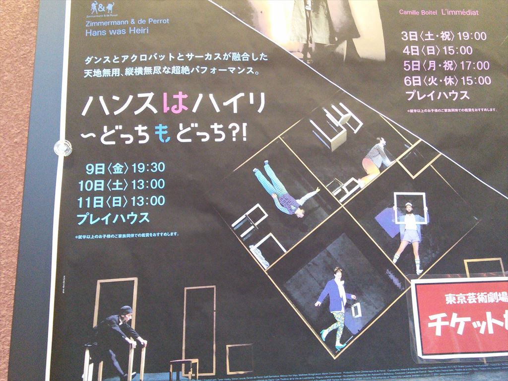 題名:ロンサム・ウェスト 劇場:新国立劇場小劇場 THE PIT 日時:2014年5月10日18:00-19:40 料金:S席7500円 座席:2列7番(2列目センターブロック) 劇団:シス・カンパニー 作 : マーティン・マクドナー 翻訳・演出 : 小川絵梨子 美術: 二村 周作 照明 : 小川 幾雄 音響 : 加藤 温 衣装 : 伊賀 大介 ヘアメイク : 宮内 宏明 舞台監督 : 瀬崎 将孝 プロデューサー : 北村 明子 企画・製作 : シス・カンパニー 『ロンサム・ウェスト』は、1996年に衝撃的なデビューを果たした『ビューティ・クイーン・オブ・リーナン』に続けて発表した作品で、1997年6月に、アイルランド・ガルウェイの劇団Druid Theatre Companyによって初演。その翌月には、英国ロンドン・ロイヤル・コート・シアターで上演され、先の『ビューティ・~』、『コネマラの骸骨』と共に“リーナン三部作”と呼ばれ、世界的に人気が高い作品です。1999年には、英国上演版と同じキャストでブロードウェイ・ライセウム・シアターにて上演。同年のトニー賞作品賞と主演男優賞にノミネートされました。 このアイルランド独特の空気感と閉塞感をまとい、登場人物4人だけで展開する物語に挑むのは、昨年一足早くマクドナー作『ピローマン』を演出し、2013年度の主だった多くの演劇賞を受賞した小川絵梨子。 翻訳にも才能を発揮する彼女が、アイリッシュ特有とも言える英語の言い回しやリズムを、どのように今回の翻訳に落とし込むのか、また、どんな切り口から攻め込んだ演出を見せるのか、ご期待ください。 出演は、毎日、殺し合いのような喧嘩になってしまう“どうしようもない”兄弟に、堤真一 と瑛太。 堤は、2012年に、小川絵梨子演出『TOPDOG/UNDERDOG』で黒人兄弟の屈折した愛憎を演じ、小川とは2度目のタッグとなります。また、2013年NODA・MAP公演『MIWA』での伸びやかな存在感が魅力的だった瑛太が、ガラリと異なる劇世界に挑戦。この手触りの異なる翻訳劇で、舞台初共演となる2人が、どんな兄弟像を見せてくれるのか、注目が集まります。そして、今回、オーディションを突破し、紅一点「ガーリーン役」を射止めたのが、木下あかり です。これまで、長塚圭史演出『あかいくらやみ~天狗党幻譚』『冒した者』等に出演していますが、このダークな物語の中で、一筋の希望を感じさせる存在の少女役で、重要な役割を担うこととなりました。最後に、物語の要を握る飲んだくれの聖職者:ウェルシュ神父には、映像・舞台の世界で、主役・脇役・ジャンルを問わず多彩な表現力を見せる北村有起哉が登場! この4人の役者たちと演出家、そして、マクドナーの劇世界との化学反応に、是非ご期待ください! ----------------- 舞台は兄弟の自宅、なんだか古い。親父の頭を銃で撃ち抜いた事故のあと 兄弟がふたりで暮らす。ものすごくバカな兄弟,どうしようもない兄弟喧嘩。 すごくやるせない雰囲気。神父がアル中、それもだめ。すごく駄目同士の 喧嘩なのにかなり笑いが起きる。すごくよくできた脚本と演出、それに役者 なのでしょう。最後は殺し合い、すごくだめなやつでまわりにいたら大変 迷惑だとおもうのにそういう状況を見て何度も笑ってしまうのはすごい。 いたたまれない重苦しい雰囲気なのに思わず笑ってしまった。 PR 題名:ハンスはハイリ~どっちもどっち?! 劇場:東京芸術劇場プレイハウス 日時:2014年5月9日19:30-21:10 料金:3枚セット券で5200円(この公演単体は3000円) 座席:1階席A-15(最前列センター) 構成:ディミトリ・ド・ペロ 振付:マルタン・ズィメルマン 構想・演出・舞台デザイン:ズィメルマン エ ド・ペロ URL:http://www.geigeki.jp/wp-content/uploads/2014/04/hans.mp4 出演:タレク・ハラビー、ディミトリ・ジュルド、ディミトリ・ド・ペロ、 ゲール・サンティスティヴァ、メリッサ・フォン・ヴェピー メティニー・ウォントラクーン、マルタン・ズィメルマン 解説: 乗越たかお(作家・ヤサぐれ舞踊評論家) あなたの部屋が、突然グルグルと回り出す…… 舞台の上では、そんなことも起こってしまう。 いまやヨーロッパのダンスはゲイジュツ的な面を追求するあまり、頭でっかちなものが増えてきた。ダンスよりも美術偏重で「ほとんど踊らないダンス公演」も珍しくない。しかし高い芸術性はそのままに、ダンスやサーカスなどの強い身体性を持ち込んだ舞台が登場してきた。それは「アート・サーカス」等と呼ばれ、おおいなるダンスの鉱脈となっているのである。 高い身体性も、ビックリ人間の離れ技ではなく、作品の深い表現のために生かされているのがポイントである。「動く身体の魅力と芸術的な満足感が、新しい次元で出会った舞台」…… この「ズィメルマン エ ド・ペロ」は、世界でも最も高い評価を得ているカンパニーのひとつである。 舞台上には窓・ドア・壁…… あらゆる所に四角い「フレーム」が登場する。それらは世界を堅固に構成している。しかし安定・安心して暮らしていたはずの世界が、まるごとひっくり返ってしまったら? それは本作最大の特徴である「