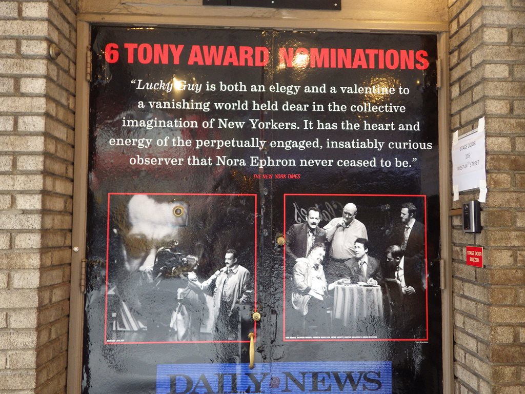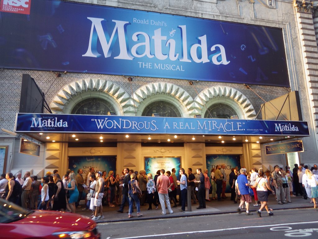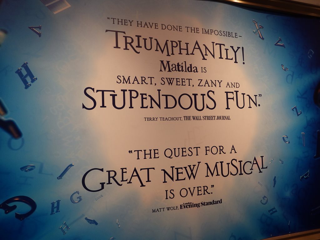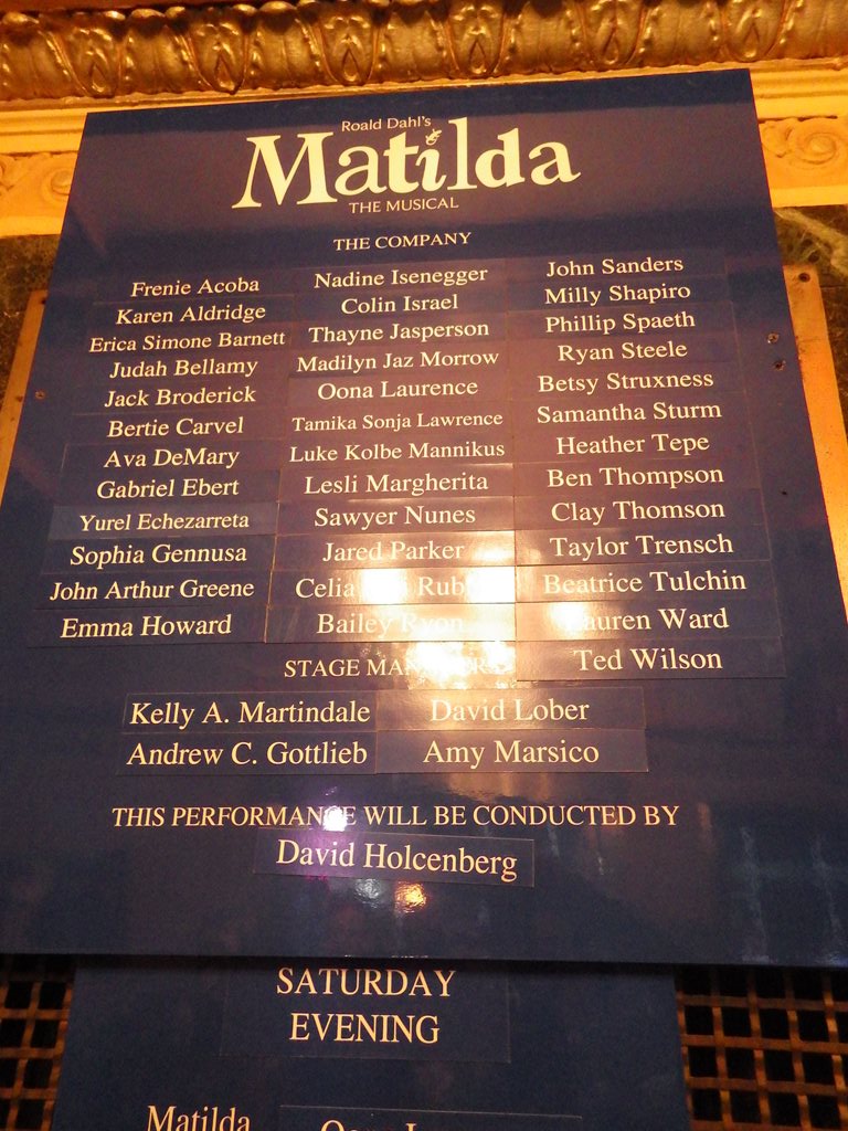 題名:Lucky Guy 劇場:Broadhurst Theatre(NYC) 日時:2013年6月2日15:00-17:10(途中休憩あり) 料金:手数料込152.75USD 座席:ORCH D-14 Production Credits: George C. Wolfe (Direction) David Rockwell (Scenic Design) Toni-Leslie James (Costume Design) Jules Fisher and Peggy Eisenhauer (Lighting Design) Scott Lehrer (Sound Design) batwin + robin productions (Projection Design) 出演: Tom Hanks (Mike McAlary) Maura Tierney (Alice McAlary) Christopher McDonald (Eddie Hayes) Peter Gerety (John Cotter) Courtney B. Vance (Hap Hairston) Peter Scolari (Michael Daly) Richard Masur (Jerry Nachman/Stanley Joyce) Brian Dykstra (Brian O’Regan) Michael Gaston (Jim Dwyer) Dustyn Gulledge (Dino Tortoricci) Andrew Hovelson (Reporter) Deirdre Lovejoy (Louise Imerman/Debby Krenek) Danny Mastrogiorgio (Bob Drury) Stephen Tyrone Williams (Abner Louima) 客席満員。 この座席では上手の後方はみきれていますが、まあぎりぎり問題ないような。 でも記事の見出しの後ろが切れちゃう。 トムハンクスがでると大きな拍手。トムハンクスを生で見るのははじめて。 いやー恰幅がよくなってますねえ。重鎮という姿が板についてます。 1幕は警察ものをかいた主役のとんとん拍子の出世物語。 回りのやっかみとか色々あってもガンガンやったものがちと言いますか。 物語は脇役が語ることで進みます。新聞記者しか出てこない記者ストーリー とでもいいますか、実際の取材行動などはほとんど描かれないのですね。 今日1本目と違って客の年齢が高い。40くらい?? 1幕まではなり上がる一方、そして事故で幕。。 2幕めは取材トラブル(といっていいものかどうか)で転落、しかし問題は クリアしてなんとか復活! 取材や記者会見がちょっと入る以外は新聞社のデスクが物語の場所 記者人生を講釈で描いた一代記という感じでしたね 全般的な筋書きはまあ聞いていてわかるのですが、ギャグにはついて いけません。英語力をもっとつけたいと思わせる作品でした。 PR 題名:Girl who Forgot to Sing Badly 劇場:The Duke on 42nd Street 日時:2013年6月2日12:00-13:00 料金:25USD+手数料5USD 座席:Orchestra K104 演出:Lynne Parker 脚本:Finegan Kruckemeyer 出演:Louis Lovett URL:https://www.youtube.com/watch?v=MOfnVHpi66Y 解説: Peggy and her parents are packers. They pack fruit into tins, foxes into boxes, even the longest word in the dictionary into a single breath. They pack a lot into every day. But, one day, when the phone stops ringing and the jobs stop coming, the real adventure begins. Storyteller extraordinaire Louis Lovett single-handedly guides us through every epic high and lowly low, switching seamlessly from hero to villain and man to mouse. Written by Finegan Kruckemeyer and directed by Lynne Parker, THE GIRL WHO FORGOT TO SING BADLY is a fantastical yarn about a young heroine with the voice of an angel (an angel who can't sing at all) who knows it's up to her to save the day and rescue her entire city. A “truly humorous, emotive and explosively creative piece of drama” (Herald Scotland), this winsome production hits one heck of a high note. 客席は子供の方が多かったかな。最後列しか残っていなかった のでそこを買ったら、なんと最後列だけ入り口が別!それより 前の席とは柵で切り離されていました。不思議な構造です。 アイルランドのダブリンからきた一人芝居。 大きな箱みたいなセットから人が登場して始まりました。 気が付くと外界に人が存在しなくなってしまったところ から始まります。無人の街を探索に出ていろんなものに出会い 最後は街を救う!迫力満点の独り語りに風変わりなセット、 不思議なファンタジーのストーリーに引き込まれました。 題名:Matilda 劇場:Sam S. Shubert Theatre 日時:2013年6月1日20:00-22:40(途中休憩あり) 料金:手数料込 147.75USD 座席:ORCHESTRA Row C, Seat 22 Production Credits: Matthew Warchus (Direction) Peter Darling (Choreography) Rob Howell (Set and Costume Design) Hugh Vanstone (Lighting Design) Simon Baker (Sound Design) Christopher Nightingale (Additional Music and Musical Supervision) Lyrics by: Tim Minchin Music by: Tim Minchin Book by: Dennis Kelly, based on the Roald Dahl novel Synopsis: Matilda is a little girl with astonishing wit, intelligence and psychokinetic powers. She's unloved by her parents but impresses her schoolteacher and, over the course of her first term at school, teacher and pupil have a profound effect on each other's lives. 出演: Matilda: Oona Laurence Bruce: Jack Broderick Lavender: Frenie Acoba Nigel: Luke Kolbe Mannikus Amanda: Beatrice Tulchien Eric: Ted Wilson Alice: Ava DeMary Hortensia:Emma Howard Tommy:Judah Bellamy Party Entertainer: John Sanders Doctor: John Arthur Greene Mrs. Wormwood: Lesli Margherita Mr. Wormwood:Gabriel Ebert Michael Wormwond: Taylor Trensch Mrs. Phelps:Karen Aldridge Miss. Honey: Lauren Ward The Escapologist: Ben Thompson The Acrobat : Samantha sturm Rudolpho : Phillip Spaeth Sergei: John Sanders MISS TRUNCHBULL:ERTIE CARVEL SWING:NADINE ISENEGGER SWING/ U/S TRUNCHBULL:COLIN ISRAEL SWING/ U/S PHELPS:CELIA MEI RUBIN SWING/ U/S PHELPS:CELIA MEI RUBIN ENSEMBLE:RYAN STEELE U/S MRS. WORMWOOD:BETSY STRUXNESS ENSEMBLE:SAMANTHA STURM SWING:HEATHER TEPE ENS./ U/S TRUNCHBULL:BEN THOMPSON SWING:CLAY THOMSON MICHAEL:TAYLOR TRENSCH SWING:THAYNE JASPERSONERICA SIMONE BARNETT BRUCE:JACK BRODERICK SWING:MADILYN JAZ MORROW SWING:SAWYER NUNES 満員、はいるのに時間がかかり上演開始時刻が遅れました。 客席にすごい活気がありました。客席には子供が多いかと 思いきや意外と年齢層が高い。舞台の回りは文字や