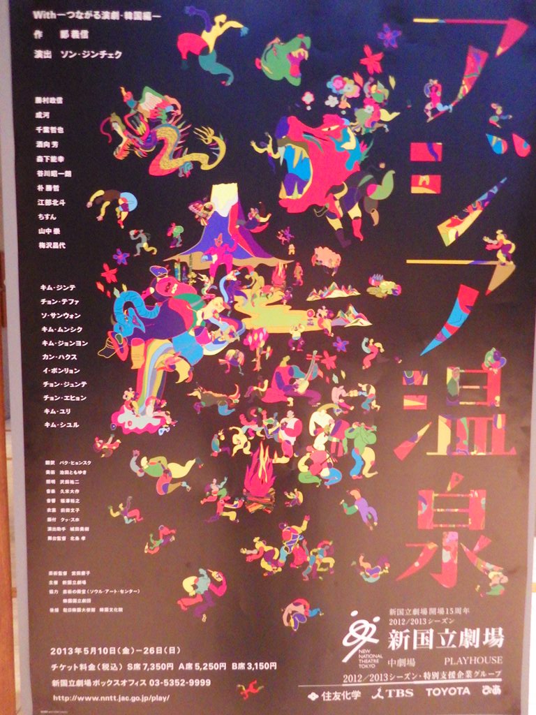 題名:歴史いぜんの記憶ーうむすな 劇場:世田谷パブリックシアター 日時:2013年5月22日19:00-20:30 料金:S席4500円 座席:1階2列目センターブロック 劇団:山海塾 演出・振付・デザイン:天児 音楽:加古隆/YAS-KAZ/吉川洋一郎 舞踏手:天児牛大/蝉丸/岩下徹/竹内晶/市原昭仁/長谷川一郎/松岡大/石井則仁 Ⅰ 跡形 あとに残ったしるし Ⅱ たち現れるものたち Ⅲ 水からの記憶 Ⅳ かなたへ吹き去る風の中で Ⅴ 樹の鏡 Ⅵ 限りない堆積と浸食 Ⅶ うぶす 「うむすな」は「うぶすな(産土)」 「うぶす」は生まれる 「な」は土・地 「うむす」は有と無を含む 初演は2008年7月シャトーバロン国立文化創造普及センター野外円形劇場(フランス) 野外バージョンとして制作された作品を劇場版に再創作し、東京初演。 両側に下げられた2つの砂時計 砂が敷かれた2つの場 瀧のように天から降り注ぐ砂 たち現れた火が孕み 水底から産まれ出る 風は流れ木々は震える 降り注ぐ砂が地をつなぎ また何かが生まれる 生まれることは死ぬこと 死ぬことは生まれること 宙の中で同じことが繰り返されるが それは決して同じではな ----- 初めて山海塾を見ました。とにかくかっこいい、DUNEだ!! いつ 砂鰊が床から出現してもおかしくない。 砂時計がふんだんにあり、砂の降る音から始まります。 全ての場面が美しい。非常に壮大で無限の時間を感じます。 降り続ける砂が永劫の時を表しているよう。 アンサンブルは精霊みたい。人間の体とは思えません。 天児さんのソロに至っては全てを統べる絶対者のごとく。。 この美しさを表す言葉を私は持っていません。 また見たい。 PR 題名:「ダイハツ プレゼンツ マイケル・ジャクソン ザ・イモータル ワールドツアー」日本公演( Michael Jackson THE IMMORTAL World Tour) 劇場:横浜アリーナ 日時:2013年5月19日13:00-15:15(途中休憩あり) 料金:VIP席25000円 座席:ステージ左サイド3列目 劇団:Cirque du Soleil WRITER AND DIRECTOR:JAMIE KING シャンタル・トランブレー(CHANTAL TREMBLAY):創作ディレクター MUSICAL DESIGNER:KEVIN ANTUNES ミュージカル・ディレクター:グレッグ・フィリンゲインズ(GREG PHILLINGANES) セットデザイナー:マーク・フィッシャー(MARK FISHER) 小道具/舞台デザイナー:ミシェル・キュリー(MICHAEL CURRY) 衣装デザイナー:ザルディ・ゴコ(ZALDY GOCO) アクロバットパフォーマンス・デザイナー:ジェルマン・ギューモー(GERMAIN GUILLEMOT) 仕掛け装置/アクロバット装置デザイナー:スコット・オズグッド(SCOTT OSGOOD 映像デザイナー:オリビエ・グーレ(OLIVIER GOULET) 照明デザイナー:マルタン・ラブレク(MARTIN LABRECQUE) サウンド・デザイナー:フランソワ・デジャルダン(FRANCOIS DESJARDINS) 振付:トラヴィス・ペイン(TRAVIS PAYNE) 振付:リッチ&トーン・タローガ(RICH AND TONE TALAUEGA) アクロバット振付:デボラ・ブラウン(DEBRA BROWN) 振付師:ナポレオン&タビサ・ドゥモ(NAPOLEON AND TABITHA DUMO) 振付:ジャマール・シムズ(JAMAL SIMS) 振付:ダニエル・“クラウド”・カンポス(DANIEL “CLOUD” CAMPOS) 振付:タマラ・レヴィンソン(TAMARA LEVINSON) 振付:マンディ・ムーア(MANDY MOORE) メイクアップ・デザイナー:フロランス・コルネ(FLORENCE CORNET) オープニングは壁掃除、巨大ディスプレイ上に壁。 舞台の両サイドには舞台を写すディスプレイ。 壁掃除や壁登り、吊りを使った壁歩きに映像とのシンクロ。 マイミストが狂言回しで登場、壁がなくなると映像の奔流。 ダンスまたダンス。ネバーランドの入り口前のスタチュー 見事に騙されました。素晴らしい演技です。 工場労働者とかロボット作成のような風景、それにちょっと吊り。 ぐらぐらゆれるポールの上で新聞を読んでいたかっと思うと、 PVを背景にSmooth Criminal。 マイケル・ジャクソン役の女性が服を脱ぎ捨てると張出ステージ でポールダンス、ポールでのコントーション。 張出ステージと後ろのステージでやるのは半半くらい? 張出だとお尻を見てる感じ。この2つのステージとスクリーンを 有効に使っていて、番組の切り替えがとてもスムーズ。 エアリアルフープを星空の背景でやったのはきれい。 音も大きく、映像や照明効果も多用、サーカスというより ダンスショー。曲芸はストラップ、ポール、コントーション 床運動程度。 マイケルのイメージが完成しすぎていて曲芸いれる余地ない のかもしれません。 題名:リトルマーメイド 劇場:四季劇場[夏] 日時:2013年5月18日13:00-15:35(途中休憩あり) 料金:A席8000円 座席:1階3列9番(3列目左端より) 劇団:劇団四季 作曲:アラン・メンケン 作詞:ハワード・アッシュマン,グレン・スレイター 台本:ダグ・ライト 演出:グレン・カサール 装置・衣裳デザイン:ボブ・クローリー 振付:ジョン・マッキネス 音楽スーパーバイザー、ボーカル及び附帯音楽アレンジ:マイケル・コザリン オーケストレーション:ダニー・トルーブ ダンス・アレンジメント:デヴィッド・チェイス 照明デザイン:ヘンクヤン・ヴァン・ビーク 音響デザイン:ギャレス・オーウェン パペット考案・創作:トビー・オリエ ヘア&メイクアップデザイン:シュールト・ディ
