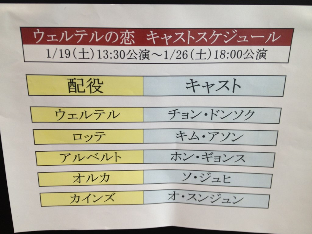 題名:ウェルテルの恋 ~原作:ゲーテ 若きウェルテルの悩み~ 劇場:赤坂ACTシアター 日時:2013年1月26日13:30-16:00(途中休憩あり) 料金:9800円(招待券でみました) 座席:1階P列23番 ストーリー: 「運命的な愛。その衝動がある男を突き動かす」 ある舞踏会でウェルテルは美しき女性、ロッテに出会う。彼女の黒い瞳に運命的な愛を感じたウェルテルは、一晩をかけて彼女の絵を描き、ロッテに婚約者がいる事を知っていながらも、その絵を渡す。 「愛とは何なのか?冷たい雨が胸に降るだけ」 そんな折、旅に出ていたロッテの婚約者アルベルトが帰国。彼との再会に感情露わに喜ぶロッテを見たウェルテルは大きな絶望を味わい、旅に出る。しかしウェルテルのロッテへの愛の感情は静まるどころか、抑えきれないほど大きく膨らんでいく。 「深い哀しみ、そして心の闇。絶望の果てにあるものは何なのか」 再び、深い悲しみの淵に落ちたウェルテル。そんな中、親しい友人であり良き理解者であったカインズが、愛憎関係のもつれで殺人を犯してしまう。もはや抜けどころのない絶望に苦しむウェルテルは、遂にある行動に出る……。 ------------------------------------------ 主演の方々はかっこいいのですが、どうにもうまく物語にはいりこめませんでした。 ウェルテルは他人の婚約者に横恋慕した勘違いさんで、ストーカー行為を繰り返す という内容。俳優さんたちの甘い歌声を楽しむ舞台ですね。 PR 題名:志の輔らくご in PARCO 2013 劇場:パルコ劇場 日時:2013年1月22日18:30-21:30(仲入あり) 料金:6000円 座席:M列21番(ほぼ最後列) 番組: 「親の顔」立川志の輔 「質屋暦」立川志の輔 仲入り 「百年目」立川志の輔 「親の顔」は初めて聞きました。 息子の試験成績が不良で学校に呼ばれた親子と先生との面談。 気楽に笑える噺でした。 「質屋暦」 質屋歴も初めて。 マヤ歴の終焉予言よりもっとすごいことが起きた日本の暦改正。 太陰太陽歴から太陽暦へ暦がかわって12月と閏月がなくなってしまった時のドタバタを、 質屋との問答で面白おかしく。質入れの契約が月単位でなっているため恐ろしいことが。。 「百年目」 檀那と番頭の会話の間合いが絶妙。志の輔の世界に持っていかれました。 ハノイに常設のサーカスがあると聞きつけ、見てみたいと思った。 そこでWebサイトを検索し住所まで突き止めた。日航ホテルの目前で、公園の中! しかしスケジュールがわからない。宿泊したホテルのコンセルジュにお願いして 何度か電話をかけれど全然繋がらない Orz そこでとにかく現地に行ってみることにした。冒頭の写真は昼のサーカス劇場の様子。 劇場入り口らしき外側には次のようなイラストもあった。 劇場敷地内には次の彫刻が飾られていた。 人民芸術家 Ta Duy Hien 像らしい。 Ta Duy Hien さんはベトナムサーカスの祖なのね。 http://vi.wikipedia.org/wiki/T%E1%BA%A1_Duy_Hi%E1%BB%83n だが劇場は生きている風情も見られない。劇場併設らしきレストランだけ営業されて いたのだが、そこらへんのスタッフにはなしかけてもどうもうまく話が通じない。 まあ私がベトナム語話せないのがいけないのですが。。 ホテルに戻ってダメもとでWebサイトのはしっこに見つけたメールアドレスにメールしてみたら 返事が返ってきた! -------------------- Dear Sir and Madam, Thank you so much for your interest in our Circus programme. We have every night show. it starts at 20pm on the Third, the Fourth, and The Fifth January. The price is 150.000VND for each person 120.000 VND for each person. The children under 3 is free. I hope you will have a good time in Hanoi. All the best to you and your dear. Sincerely Director's assistant ------------------ どうもありがとう!ということで3日の夜にGO! この夜は劇場生きてました! 劇場手前のチケットブースでチケットを購入、ひとり15万ドン。 チケットブースは向かって左側の小さな小屋。 どうやら座席指定らしい。記号をついたチケットをゲット。 劇場入り口に入ると両側がサーカスの写真。 昨年にこちらで開催されたサーカスフェスティバルの際の写真のようだ。 そして客席入口からはいると、、 開演20分前なのにまだ何やら準備をしているのです。大丈夫? 客入れに何かをするという発想はないみたい。 この日はビデオ撮影かTV中継があるようで、たくさんのカメラがはいっておりました。 予定時刻から15分おして暗くなって開演!客はだいたい4割程度かなあ。 ちょっとさびしい、でも子供たちの声は大きい。 題名:Hanoi Central Circus 劇場:Hanoi Central Circus(67 Tran Nhan Tong, Hai Bà Trưng, Hanoi) 日時:2013年1月3日20:15-22:30 料金:15万ドン(約700円) 座席:D列6番(4列目、正面から3席右) Web:http://www.vietnamcircus.com/default.aspx 番組: オープニング ティッシュー(男女ペア) Hand to Hand (男3人組) ボールジャグリング クラウン(水入り茶碗演奏とタップ) ロシアンバー 犬の曲芸 軟体 綱渡り(男女ペア) 熊の曲芸 チャイニーズポール クラウン(演奏すると犬が楽譜をくわえて、、) くわえばち フープ 梯子バランス(男女ペア) 猿の曲芸 開演30分前にはほとんど人がいません。 