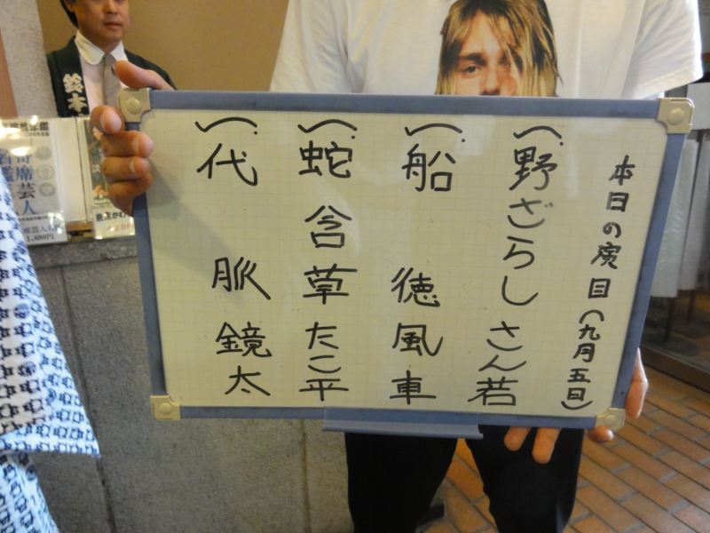 × [PR]上記の広告は3ヶ月以上新規記事投稿のないブログに表示されています。新しい記事を書く事で広告が消えます。 題名:早朝寄席 日時:2010年9月5日10:00-11:30 劇場:鈴本演芸場 料金:500円 座席:最後列中央 番組: 柳家 さん若 野ざらし 鈴々舎 風車 船徳 林家 たこ平 蛇含草 月の家 鏡太 代脈 すごく久々に早朝寄席にきました。こんな炎天下なのに5割近くはうまっているなんて 落語ブームはまだまだ健在なのですね。私は開演直前に入ったので、ゆったり座れる 最後列へ。どの列もそこそこ人でうまっていました。 のざらしは能天気な骨釣り姿がおもしろい。今回の落ちは野幇間バージョン、実はこの バージョンを聞くのは初めてです。なんか取ってつけたような感がありますよねえ。それ に考え落ちなのでなかなか通じにくい。やっぱり私は別の。。。 次は「気温で、30、、とならぶと西鉄稲尾投手の勝ち星みたい」と枕で暑く野球を語り、 船徳へ(^^;) 船の揺れがいい感じ出てます。 蛇含草は暑い中で熱い餅を食う噺、見てるほうが暑くなる(^^;;;;) うまそうに餅食ってました。 代脈を聞いたのは初めて、与太郎が医者をやるって噺なんですねえ。 来週は二つ目卒業記念公演だそうで、満員になるかも。。。 PR