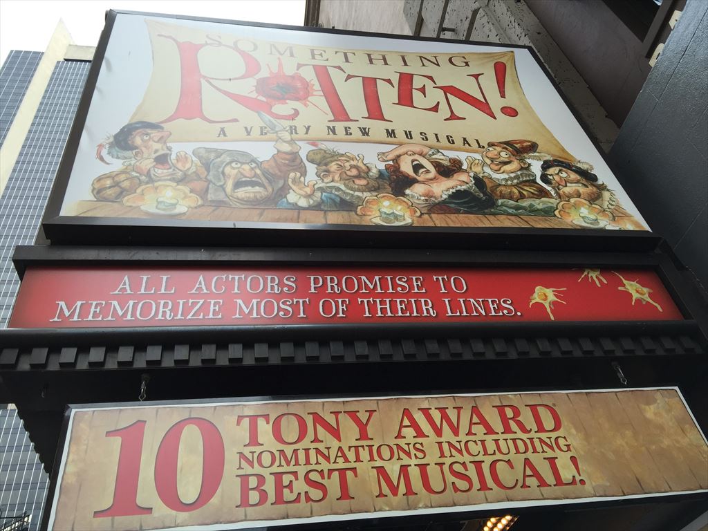 題名:Something Rotten! 劇場:St. James Theatre 日時:2015年6月6日 14:00-16:30(途中休憩あり) 料金:152USD, Telecharge 手数料込み 164.25USD 座席:CENTER ORCHESTRA Row B, Seat 104, Synopsis: The time is the '90s ? the 1590s. Brothers Nick and Nigel Bottom are desperate to write a hit play but are stuck in the shadow of that Renaissance rockstar known as The Bard. When a local soothsayer foretells that the future of theatre involves singing, dancing and acting at the same time, Nick and Nigel set out to write the world’s very first musical! Cast List: Brian d'Arcy James(Nick Bottom) John Cariani(Nigel Bottom) Christian Borle(Shakespeare) TONY Awards(Best Performance by an Actor in a Featured Role in a Musical) Heidi Blickenstaff(Bea) Brad Oscar(Nostradamus) Kate Reinders(Portia) Brooks Ashmanskas(Brother Jeremiah) Peter Bartlett(Lord Clapham,Master of the Justice) Gerry Vichi(Shylock) Michael James Scott(Minstrel,Ensemble) Linda Griffin(Ensemble) David Hibbard(Ensemble) Jenny Hill(Ensemble) Stacey Todd Holt(Ensemble) Aaron Kaburick(Ensemble) Austin Lesch(Ensemble) Beth Johnson Nicely(Ensemble) Aleks Pevec(Ensemble) Angie L. Schworer(Ensemble) Eric Sciotto(Ensemble) Brian Shepard(Ensemble) Chelsea Morgan Stock(Ensemble) Ryan VanDenBoom(Ensemble) Marisha Wallace(Ensemble) Bud Weber(Ensemble) Elizabeth Earley(Swing) Eric Giancola(Swing) Courtney Iventosch(Swing) Matt Wall(Swing) Production Credits: Casey Nicholaw (Direction and Choreography) Gregg Barnes (Costume Design) Natasha Katz (Lighting Design) Peter Hylenski (Sound Design) Phil Reno (Music Direction/Conductor) Glen Kelly (Musical Arrangements) Larry Hochman (Orchestrations) Other Credits: Lyrics by: Wayne Kirkpatrick and Karey Kirkpatrick Music by: Wayne Kirkpatrick and Karey Kirkpatrick Book by Karey Kirkpatrick and John O'Farrell 時は90年代、といっても16世紀! ヒット作にめぐまれずシェイクスピアにおされ気味になっている主人公たちは、 占い師にシェイクスピアが将来書く作品を予知してもらい、それを盗んじゃおうと します。そして降りてきた作品名が「Omulet」。まあ予知なんてそんなもの♪ そして歌とダンスと芝居を同時に楽しめる作品が未来の劇場を制覇すると占われて 史上初のみゅーーーじかるを作ろうとします。もちろんタイトルは「Omulet」 いやあばかばかしくておかしい。ミュージカルマニアのためのミュージカルです。 いたるところでどっかんどっかん受けてました。今年度ショーストップのナンバーが あったのはこのショーだけ!涙流しながら笑って拍手してましたよ。 本歌取りが多数、曲にダンスに台詞、タイトルもいれこんで、いったいいくつネタ を投下すれば気が済むのだといわんばかりのてんこもり。それをまたシェイクスピア が偵察に来て、、、 最後は裁判で偽判事w、シェイクスピアが援軍に出てきて米国島流しで手打ち。 fobidden broadway をオンで堂々とやったらこうなりましたという感じでしょうか。 カーテンコールはもちろん、全員総立ち。 すっごく楽しくて劇場を出たとたんに全部忘れてしまう、という娯楽作品を王道で行く ようなショーでした。もう一度見たかったのだけれど、最終日の日曜が休演で涙。。 PR