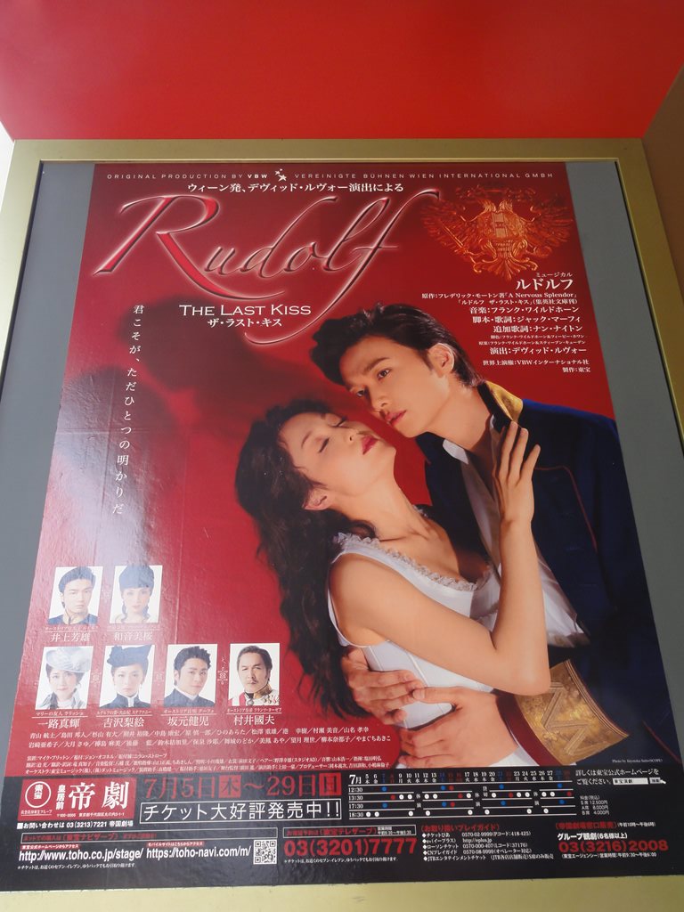 題名:Musical La Cage 日時:2012年8月10日20:00-22:50(途中休憩あり)、8月12日18:30-21:20 劇場:LGアートセンター 料金:VIP席130000KRW(+2000KRW手数料) 座席:1階6列目6番(左ブロック)、12日は1階の後方 開演20分前に客席にはいったらがらがら、まだ10人くらいしか 客がはいっていませんでした。でも開幕時には満員、ソウルの 観客の出足の悪さ健在のようです。 ここは最前列だと頭の高さが床になり、見上げる形となります。 6列目で多少床がみえるレベルでした。 見終わった感想としては、キャストが良い!ということに 尽きました。みな歌って踊れます。1幕最後には泣けた。 言葉がわからないのに心情がひしひしと。。 鳥かごのダンス、白鳥がはいっていたけれどそうだったの? レディーズはかなりしっかり動けてます。 主役コンビが歌えて踊れてかなり良い。そして泣けます。 やはりレストランでは泣ける。 そして息子が謝るところ、ポイントついてますね。 とにかくキャストが良いのです。 もう一回見たくなって再度見にいきました。 女性指揮者の顔面にひげあり! 黒鳥の姿で4羽の白鳥を踊ります、そのシーンが印象的、 フレンチカンカンも素晴らしい。 かなりよいプロダクションだったと思います。 PR 題名:ルドルフ ザ・ラスト・キス 日時:2012年7月28日12:30-15:20(途中休憩あり) 劇場:帝国劇場 料金:補助席9000円 座席:1階補助席30番(Rの後ろ、ほぼ中央) 出演: ルドルフ:井上芳雄 マリー・ヴェッツェラ:和音美桜 ステファニー:吉沢梨絵 ターフェ:坂元健児 ラリッシュ:一路真輝 フランツ・ヨーゼフ:村井國夫 <男性アンサンブル>青山航士/島田邦人/杉山有大/照井裕隆/中島康宏/ 原 慎一郎/ひのあらた/松澤重雄/港幸樹/村瀬美音/山名孝幸 <女性アンサンブル>岩﨑亜希子/大月さゆ/樺島麻美/後藤 藍/鈴木結加里/ 保泉沙耶/舞城のどか/美鳳あや/望月理世/柳本奈都子/やまぐちあきこ ストーリー: 19世紀のオーストリア。 自由と平等を求めるハプスブルク家の若き皇太子ルドルフは、 厳格な父・皇帝フランツ・ヨーゼフとの政治思想的対立を深めていた。 妻との関係も冷え切り完全に孤立した日々を送るルドルフは、 美しく純粋な男爵令嬢マリー・ヴェッツェラと出会い、 道ならぬ恋と分かりながらも惹かれ合っていく。 一方、オーストリアは激動の時代を迎えようとしていた。 苦悩が深まるばかりのルドルフの安らぎはマリーだけであった。 しかし2人の関係は周囲の知るところとなり、ますます窮地に立たされる。 追い詰められたルドルフが辿る道とは… http://www.youtube.com/watch?v=DBq5CfoAezU http://www.youtube.com/watch?v=SEMj446xLk8 全てが赤い。。 深い深い、赤の世界。スタイリッシュですねえ。 盆が二重、天井から円形に吊るされたカーテンや幕による 場面展開でスピーディーに進む演出。恋の成就はスケートで。 舞踏会がと回れば娼館へ。。もうだめだめな人間関係。 マリー強すぎw 「憂国の皇太子が愛人と心中」ということなんですが、 マリーが主役で振り回す感じ?王子さまはマリーですな。 題名:ウエスト・サイド・ストーリー 劇場:東急シアターオーブ(渋谷ヒカリエ11階) 日時:2012年7月18日19:00-21:30(途中休憩あり) 料金:A席10000円 座席:3階席1列目センターブロック 脚本&ブロードウェイ・リバイバル演出:アーサー・ローレンツ 音楽:レナード・バーンスタイン 作詞:スティーブン・ソンドハイム 初演時演出・振付:ジェローム・ロビンス ツアー演出:デイヴィッド・セイント 振付再現:ジョーイ・マクニーリー 出演: Tony:ROSS LEKITES Maria:EVY ORTIZ Anita:MICHELLE ARAVENA Riff:DREW FOSTER Bernardo:GERMAN SANTIAGO 初めてのヒカリエ、初めてのシアターオーブ、 そして今晩はシアターオーブのオープニンナイトでした。 ロビーにおたち台のようなものができて、報道関係者が ゲストに群がっていました。 劇場はヒカリエの11階から上にあります。まずは11階に 上ると広いロビー、そこにはカフェ。入場前にお祝いに 泡で乾杯! そこからエスカレーターで13階にあがり、劇場入り口に。 球体形状の客席外側が見える、近未来風のロビーです。 でも大人数が同時に出るとさばけるのかなあ。とにかく 劇場のつかみはおっけー。 今回は3階席、エスカレーターをずーーーーと上がって、 客席にはいってびっくり、3階席は傾斜がかなり急、そ のうえ目の前の手すりが低いのです。ちょっと前に乗り だしたら1階まですとんと落ちてしまいそう。高所恐怖 の気味がある人は3階前方は避けた方がよいでしょう。 私はかなり、、、 そのかわり舞台は全体が見やすく意外と近くに見えます。 前奏曲が始まった段階でもうわくわく。あまりにも有名 な曲なので何度聞いたことかわかりませんが、それゆえ 脳内にいろんな刺激がくるようです。 舞台の第一印象、みんなかわいい!若いっていいわねえ。 トニーは田舎からぽっと出の好青年という雰囲気、 マリアはしっかり世間知らずのおじょうちゃん。皆すごい お子様な雰囲気で、たしかにこの作品て抑圧されている 子供同士が同士討ちをしてしまう