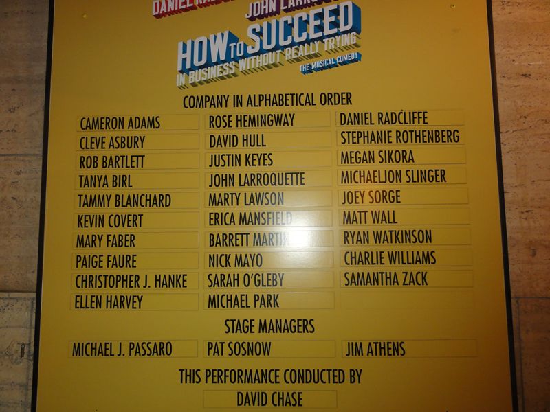 × [PR]上記の広告は3ヶ月以上新規記事投稿のないブログに表示されています。新しい記事を書く事で広告が消えます。 題名:How to Succeed in Business Without Really Trying 劇場:Al Hirschfeld Theatre 日時:2011年6月6日20:00-22:45(途中休憩あり) 料金:Telecharge 手数料込み142.25USD 座席:Center Orchestra Row B, Seat 107(2列目どセンター) Rob Ashford (Direction and Choreography) Derek McLane (Set Design) Catherine Zuber (Costume Design) Howell Binkley (Lighting Design) Jon Weston (Sound Design) Doug Besterman (Orchestrations) David Chase (Music Director and Arranger) 出演: J. Pierrepont Finch: Daniel Radcliffe J.B. Biggley:John Larroquette Rosemary Pilkington:Rose Hemingway Hedy La Rue:Tammy Blanchard Bud Frump:Christopher J. Hanke Twimble/Wally Womper:Rob Bartlett Smitty:Mary Faber Miss Jones:Ellen Harvey Bert Bratt:Michael Park Narrator:Anderson Cooper Kathy/Scrub Woman:Cameron Adams Mr. Ovington:Cleve Asbury Nancy:Tanya Birl Mr. Johnson:Kevin Covert Miss Grabowski/Scrub Woman:Paige Faure Mr. Davis:Justin Keyes Mr. Peterson:Marty Lawson Swing:Erica Mansfield Mr. Andrews:Barrett Martin Mr. Gatch:Nick Mayo Swing/Dance Captain:Sarah O'Gleby Meredith:Stephanie Rothenberg Miss Krumholtz:Megan Sikora Swing;Michaeljon Slinger Tackaberry:Matt Wall(代役) Swing/Asst. Dance Captain:Matt Wall 舞台の幕には摩天楼が描かれていました。たぶん満員。 私が座った席では舞台はあたまと同じくらいの高さになります。 オープニングは蜂の巣状の背景でサラリーマン体操w 能天気なストーリーで言葉がわからなくても大丈夫。 初演から50周年だそうですが、テーマは全然古くなってない? のがサラリーマン社会の変わらなさを物語っているのでしょう。 社長の愛人はとてもセクシー、きれいなおっぱいwって 履歴をみたらGypsy のヒロインではありませんか、この方の ストリップを最前列で見ましたっ その時はブラジャーが目の前 までとんできましたよ。いやーめっちゃ色っぽいです。 そして社長さんがいい、すごくかわいい。編み物してるところ とか最高、男でも編み物いいよねえ。社長さんは舞台の上で すごくひかってました(助演男優賞受賞でしたね) 情けないメールボーイの敵役?のおっさんもいい感じ。エンディング では天井から窓ふき姿で降りてきました。 そしてやはり特筆すべきはハリポタラドクリフさんのフィンチでしょう。 予想以上に歌って踊れる!ほんとびっくり。オープニングはオーケス トラピットから窓ふき姿で登場、するすると上にのぼっていきました。 1幕ではアイビーリーグのフットボールチームダンスを息を切らして熱演。 背が低いことを生かして、成り上がっていく感をうまく出している ように思えましたよ。 この舞台の圧巻は2幕の Brotherfood. 大迫力の群舞で飛び散る汗、 フィンチの顔も真っ赤。このシーンはまた見たい(と思っていたら TONY賞授賞式でこのシーンが演じられました) カーテンコールのラドクリフさんに対するスタンディングオベーション は凄いものでした。ほとんど怒号。これで主演男優賞は決まりか?と 思えたくらい。でも主演男優賞にはノミネートされていないのねOrz PR 題名:Priscilla Queen of the Desert 劇場:Palace Theatre 日時:2011年6月5日19:30-22:00(途中休憩あり) 料金:Broadway Box 割引 99.95USD(Ticketmaster割引込み) 座席:ORCH F109 Simon Phillips (Direction) Ross Coleman (Choreography) Brian Thomson (Scenic Design) Tim Chappel and Lizzy Gardiner (Costume Design)(TONYAWARDS 2011 Best Costume Design of a Musical 受賞) Nick Shlieper (Lighting Design) Jonathan Deans and Peter Fitzgerald (Sound Design) Stephen “Spud” Murphy (Orchestrations, Arrangements and Musical Supervision) Book by: Stephan Elliott & Allan Scott 出演: WILL SWENSON (Tick/Mitzi) TONY SHELDON (Bernadette) NICK ADAMS (Adam/Felicia) C. DAVID JOHNSON (Bob) JACQUELINE B. ARNOLD (Diva) ANASTACIA McCLESKEY (Diva). ASHLEY SPENCER (Diva) JAMES BROWN III (Jimmy, u/s Miss Understanding). NATHAN LEE GRAHAM (Miss Understanding). J. ELAINE MARCOS (Cynthia). MIKE McGOWAN (Frank, u/s Bob). JESSICA PHILLIPS (Marion). STEVE SCHEPIS (Farrah/Young Bernadette, u/s Adam/Felicia) KEALA SETTLE (Shirley). THOM ALLISON (Ensemble, u/s Bernadette, u/s Miss Understanding, u/s Jimmy). タイムズスクエアでコアラ耳のおねえさんがちらしを配っていました。かわいい。 舞台幕の前には巨大なリップスティックがデーンと鎮座。 ミラーボールがおりてきてはじまりはじまり! 陰コーラスが上からぶらさがり、前で形態模写のダンス、ドラッグクイーンのショー なのです。コーラスすごい迫力。 腰にぶら下げて両手で操るマペットがいかにもちゃちくて受けました。 アンサンブル筋肉ムキムキでいかにも男性ヌードショーという気配もw そしてかつてバイだった主人公はバスでオーストラリアの大陸を横断して子供に会い に行くというロードムービーです。お父ちゃんとしての歌、小さな願いでなけました。 バスの模型がでーんと舞台の上に。バスの上に巨大なハイヒール! バスが90回転して、舞台の前にせり出してきて、その上でヒールがせり出す。 ヒールは客席の上まで出ていました。バスの側面は電飾で色つき放題。 ヒールに乗ったキャストは後ろに巨大なマントを翻しているのです。 バスの上での演技はかなりありましたね。 バスは砂漠の真ん中で立ち