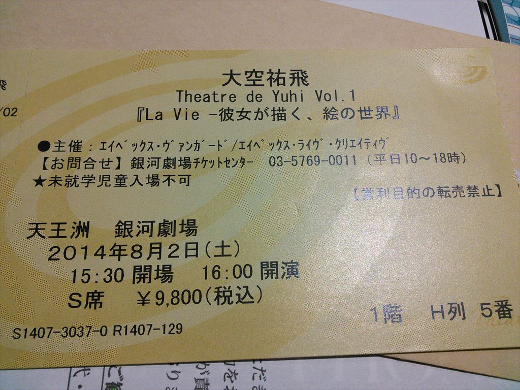 × [PR]上記の広告は3ヶ月以上新規記事投稿のないブログに表示されています。新しい記事を書く事で広告が消えます。 題名:Theatre de Yuhi Vol.1「La Vie - 彼女が描く、絵の世界」 劇場:天王洲劇場 日時:2014年8月2日16:00-18:00(休憩あり) 料金:9800円 座席:1階H 列5番 出演:大空祐飛 《パントマイム》 いいむろなおき 《ダンサー》 珠洲春希、月央和沙、那須幸蔵、岡崎大樹、 《コーラス》 池谷京子、真瀬はるか、新良エツ子 《バンド》 白井アキト(ピアノ)、岩永真奈(ベース)、坂本暁良(ドラム)、 伊藤友馬(バイオリン)、江畑コーヘー(ギター)、菅家隆介(トランペット) <スタッフ> 企画プロデュース:大空祐飛 脚本・演出:児玉明子 解説: 1920~30年代。二つの大きな大戦の狭間、芸術の華開くパリとアメリカを中心に、 彗星の如く現れた伝説の美人画家、タマラ・ド・レンピッカ。 その人生を基に、彼女が描く絵の世界を、音楽を中心に綴る、Liveパフォーマンス。 歌、芝居、ダンス、パントマイム・・・。 大空祐飛が舞台で表現することに飽くなき探求を続ける、 Theatre de Yuhi(テアトル・ド・祐飛)の第1弾。 最初に車イスの女性が登場。 主人公が自分の一生を懐古してインタビューに答えるという形式。 台詞があるのはヒロインだけ。残りはダンサーとマイマー。 マイマーがはいると雰囲気がかわりますね。 舞台の後ろにバンド、その画家の絵が背景となります 美貌で押し出しがよく美声で動きも美しい。、 さすが宝塚の元トップです。 スタイリッシュな演出、主人公によくあってます。 PR