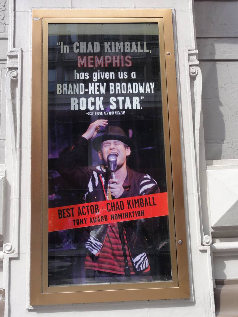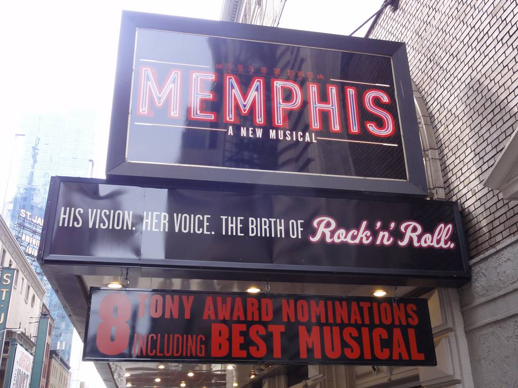 × [PR]上記の広告は3ヶ月以上新規記事投稿のないブログに表示されています。新しい記事を書く事で広告が消えます。 題名:Memphis: A New Musical 日時:2010年6月5日20:00-22:30(途中休憩あり) 劇場:Shubert Theatre(NY) 料金:telecharge手数料込136.0USD 座席:Center Orchestra Row A, Seat 103 Synopsis: What happens when a 1950's Memphis DJ with white listeners decides to play African-American music? Is Memphis ready for it? Is America? The story was inspired by the legendary DJ Dewey Phillips and the music that became known as “rock ’n' roll.” Production Credits: Christopher Ashley (Direction) Sergio Trujillo (Choreography) David Gallo (Scenic Design) Paul Tazewell (Costume Design) Howell Binkley (Lighting Design) Ken Travis (Sound Design) Daryl Waters & David Bryan(Orchestration) (2010年TONY賞Best Orchestrations受賞) Other Credits: Lyrics by: Joe DiPietro and David Bryan(2010年TONY賞Best Original Score (Music and/or Lyrics) Written for the Theatre受賞) Music by: David Bryan(2010年TONY賞Best Original Score (Music and/or Lyrics) Written for the Theatre受賞) Book by: Joe DiPietro(2010年TONY賞Best Book of a Musical受賞) 出演: CHAD KIMBALL(Huey Calhoun) Dn'yelle Williamson(Felicia Farrell: MONTEGO GLOVERの代役) DERRICK BASKIN(Gator). J. BERNARD CALLOWAY(Delray) James Monroe Iglehart(Bobby) Michael Mcgrath(Mr. Simmons). Cass Morgan(Mamma) Jennifer Allen(Ensemble) Brad Bass(Ensemble/Huey u/s) Tracee Beazer(Ensemble) James Brown III(Ensemble) Kevin Covert(Ensemble) Hillary Elk(Ensemble) Bryan Fenkart(Ensemble, u/s Huey) Dionne Figgins(Ensemble) Rhett George(Ensemble) John Jellison(Ensemble) Tyrone Jackson(Swing) Candice Monet McCall(Swing) Sydney Morton(Ensemble) Vivian Nixon(Ensemble) John Eric Parker(Ensemble) Jermaine R. Rembert(Ensemble) Laquet Sharnell(Ensemble) Betsy Struxness(Ensemble) Ephraim Sykes(Ensemble) Cary Tedder(Ensemble) Daniel J. Watts Dan'yelle Williamson(Ensemble) Charlie Williams(Ensemble) 2010年TONY賞作品賞受賞。作品賞を含め4部門受賞はミュージカル部門では最多。 土曜の晩なのに主演女優賞候補のヒロインが代役でした ;_; でもとても代役とは思えない歌唱力と存在感です。こういうのがブロードウェイの厚みなのでしょう。 主演のふたりががっぷり四つに組んで見ごたえのある舞台でしたよ。でもそうなるとますます 本来のMONTEGO GLOVERを聞いてみたかったという思いが、、でもそこまでの暇はなく。。。 その他アンサンブルが数人代役でした。 この劇場は舞台がかなり高く、床がちょうど私の目の高さ。1列目に座ったら、見切れがでていた かもしれません。どの劇場は最前列に座っても大丈夫リストはほしいかも。でもときどき舞台の床が 演出のために底上げされることもあるし、難しい。 一階は白髪率が高いような気がするんだけれど気のせいか。。 実在したメンフィスのDJデューイー・フィリップスを元に作られたストーリー。 物語の舞台は1950年代のテネシー州メンフィス。人種差別が人種隔離政策として 人々の聞く音楽にまでかかわっていた時代の物語です。 この舞台はかなりよくできたシナリオです。たぶんどんな言語で演じられても筋書きはきっちり 追うことができるでしょう。(とメモに書き記していたら案の定、脚本賞になりました) 語られるのは人種差別、禁じられた恋、そして成功と挫折。。 物語はわかりやすくて泣かせるし、歌も歌えているし、振り付けも印象的でよくできた作品です。 オープニングは地下にある黒人専用ナイトクラブでの歌とダンス Underground 、すごく ダイナミックでつかみはOK。 黒人だけのこの場所にふらふらと白人のチンピラ風兄ちゃんのHueyが入ってきます。 そこで追い出されそうになったところで、失言(が聞き取れないOrz)で険悪な雰囲気になるの ですが、Hueyも歌をうたいはじめて一時休戦。 このHuey、実はどじっこで、デパートを首になる寸前に。レコード売場で売り上げをのばす賭を して見事に売り上げ増加達成、実はそこのデパートではありえない黒人音楽をかけてしまったの です。ここでデパートの白人客がどんどん音楽に乗っていってしまう振り付けが楽しい。 でも残念なことにこの作品はTONYの振付賞にはノミネートされていないのです。 今度は黒人のレコードをもってラジオ局に売り込み! まあDJのやり方をみておけと入れてくれた、ラジオ局で、DJがいなくなったすきに黒人レコード かけちゃいます。もちろん隔離政策からは論外なのですが、聴取者からの継続の電話が鳴り やまず、2週間のテスト採用! 冒頭で出会ったFeliciaのレコードをかけようとするのですが、Hueyの母がレコードをばりん。 そこでHueyは一計を案じて、ラジオでFeliciaのライブをやってしまいます。これまた受けて、 DJとして3年契約。黒人コンサートも主催してがんがん調子にのったかと思いきや、Feliciaに プロポーズ。でも異人種婚があたりまえでなかったころ、彼女はしぶりますがとうとう承諾。 しかし、異人種混交を差別する白人の男たちに襲われ、ふたりは袋叩きに。 彼が触媒となって黒人の中に白人がはいっていくシーンにはじわっときます。しかし このHuey、べらんべえ口調なので私には英語がよく聞き取れないことがしばしば(涙) Hueyは舞台上でかなりひかっていて、これ