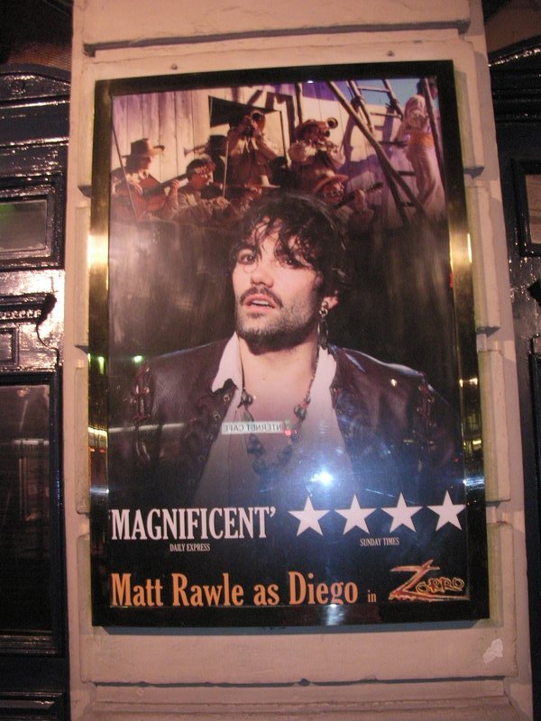 × [PR]上記の広告は3ヶ月以上新規記事投稿のないブログに表示されています。新しい記事を書く事で広告が消えます。 題名:Zorro 日時:2009年2月6日19:30-22:15(途中休憩あり) 劇場:GARRICK THEATRE 料金:TKTS33GBP(定価60GBP) 座席:Stall J13(一階10列目センター) 出演: Diego: Matt Rawle Luisa: Emma Williams Ramon: Adam Levy Inez: Lesli Margherita Garcia: Nick Cavaliere Don Alejandro: Jonathan Newth El Jurado: Alamo Private Alvarez: Greg Barnett Private Sanchez: Paul Basleigh Priest: Dale Branston El Sacromonte: Isaac De Cella Juggler: Daniela Crute La Gatuna: Sonia Dorado La Piconera: Amparo Ferres Fernandez Senorita on the Balcony: Sarah Joyce La Somorrostro: Vera Leon Anabei: Lucy Lummis La Cantaora: Anna Mateo The Old Gypsy: Oscar Moret El Sohri: Jorge Muelas Hangman: Alexander Poulter Private Ramirez: Mark Powell Joaquin; Ramon Ruiz The Prisoner's Wife: Shena Sanders アンサンブル:多数 当日朝10時前からTKTSに並んで購入しました。すごく見やすい席です。 最前列に座ると舞台の床が頭よりかなり高くなってしまうようでした。 オープニングは中幕前の椅子にキャストが座ってのフラメンコです。 そして大文字のZに火がついて燃えます。ケレン味たっぷりの舞台に 気持ちはもう祝祭。幕があがったセットはコンクリむき出しに見えます。 主役のDiegoは父親から大学へ行けと言われたのになぜかドロップアウト して、ジプシーの集団に身を投げ入れてしまいます。 最初のジプシー登場のシーンではファイヤートーチのジャグリング登場。 カスケード、単発チョップがちょっとだけという感じ。 両手に剣を持ち、火をつけて2ビートウィーブ、鞭でクラッピングも ありました。それから箱ぬけ入れ替わりのマジック。ジプシーが ジャグラー・マジシャンの集団であったことを見事に示していましたよ。 BGMはずっとフラメンコ、なんだかフラメンコが暑苦しさを示しているようです。 物語は勧善懲悪のわかりやすいストーリー。主人公の父親を殺して政権を 奪った悪代官?、でも昔は友達?、に抵抗するためにマスクをして色々な レジスタンスを行います。最後は父親を救いだして公衆の面前に出現させ ると、それまで悪代官に仕えていた人々が、再度父への忠誠を誓うことで 一件落着、というまるで水戸黄門のようなエンディング。 Zorroと敵が重そうな刀で行う殺陣が迫力満点です。Zorroは舞台の上を いくつものロープを使って飛び移ったりします。レジスタンスで敵の兵隊に 追い詰められたZorroは身体消失マジックで難を逃れたりもするのです。 まるで漫画を見ている気分。 祝祭の雰囲気が最初から最後まで漂ってます。しかも英語がわかりやすい! この作品なら旅の疲れや時差ボケで沈没する心配は無用、ずっと派手な 舞台で眠れません。でも最後には曲がちょっと飽きてきたかも。 PR