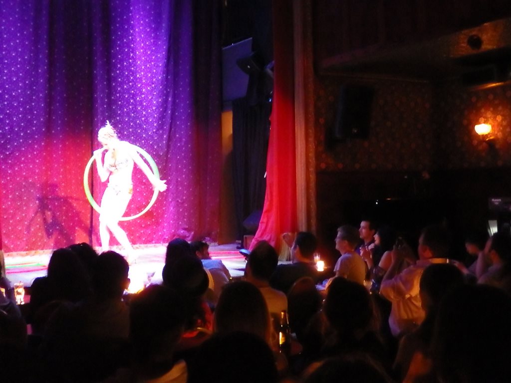 × [PR]上記の広告は3ヶ月以上新規記事投稿のないブログに表示されています。新しい記事を書く事で広告が消えます。 題名:Old Hats 劇場:The Pershing Square Signature Center/Irene Diamond Stage(480 West 42nd Street) 日時:2013年6月5日14:00-16:00(途中休憩あり) 料金:75USD 座席:J-105(客席中央) URL:http://vimeo.com/60180815 出演:Bill Irwin, David Shiner BAND Music Director/Piano/Vocals/Ukulele: Nellie McKay Bass: Alexi David Percussion/Foley Artist: Mike Dobson Saxophone/Flute: Tivon Pennicott Drums: Kenneth Salters CREATIVE TEAM Scenic and Costume Design: G.W. Mercier Lighting Design: Peter Kaczorowski Sound Design: John Gromada Projection Design: Wendall K. Harrington Wig and Make-up Design: Erin Kennedy Lunsford Magic Consultant: Steve Cuiffo Production Stage Manager: David H. Lurie URL:http://vimeo.com/60180815 たぶん満員、キャンセル待ちがいた模様。 この劇場に来たのははじめて。ポートオーソリティバス ターミナルから西へまっすぐいくとあります。 いくつかの劇場がまとまってあるコンプレックスですね。 ロビーはカフェになっていて、早めにきてぶらぶらしてい ることもできそう。隣がブックストアで関連書籍を売って ました。入り口付近にはタッチスクリーンつきの巨大ディ スプレイ。ぽちっとすると予告編が流れるのでした。もう ポスター貼るのは時代遅れなのかも。舞台の右側にold hat の小さな看板、右側にバンド、ピアノ、ドラム、ベース、 弦楽器がいくつか。 水曜昼だからでしょうか、客席にはお年寄りがかなり多い。 右手にあったカンバス上の絵は映像。どこから写している のかなー。番組名が写されているのでした。 2人でハットマニュピレーションを行い、どっちがおもし ろいか競うというシーンからはじまり。このショーは基本的 に台詞なしのボードビルでした。ただし歌はあり。 映像を活用して二人で様々なコントやマジックを見せるの です。 iPadに翻弄されるビジネスマン(Mr. Business)、ベンチに 座るホームレスのゴミあさり、→を使ったディベート(喋っ てないのにいかにも議論しているかのよう)、ウェイター、 客いじりのマジック。ボードビルで同一人物でこれほど次 から次へとネタがくりだされるのはなかなかないですね。 合間に生音演奏、幕間はウクレレ引きながら流してました。 2幕はちょっと長めのネタで、Cowboy Cinemaを撮るための ドタバタ、これはが~まるちょばとイメージがかなり重な りました。ドタバタネタと社会風刺、それにちょっとした 曲芸とマジックに生演奏といううまく作られた番組でした。 題名:「ダイハツ プレゼンツ マイケル・ジャクソン ザ・イモータル ワールドツアー」日本公演( Michael Jackson THE IMMORTAL World Tour) 劇場:横浜アリーナ 日時:2013年5月19日13:00-15:15(途中休憩あり) 料金:VIP席25000円 座席:ステージ左サイド3列目 劇団:Cirque du Soleil WRITER AND DIRECTOR:JAMIE KING シャンタル・トランブレー(CHANTAL TREMBLAY):創作ディレクター MUSICAL DESIGNER:KEVIN ANTUNES ミュージカル・ディレクター:グレッグ・フィリンゲインズ(GREG PHILLINGANES) セットデザイナー:マーク・フィッシャー(MARK FISHER) 小道具/舞台デザイナー:ミシェル・キュリー(MICHAEL CURRY) 衣装デザイナー:ザルディ・ゴコ(ZALDY GOCO) アクロバットパフォーマンス・デザイナー:ジェルマン・ギューモー(GERMAIN GUILLEMOT) 仕掛け装置/アクロバット装置デザイナー:スコット・オズグッド(SCOTT OSGOOD 映像デザイナー:オリビエ・グーレ(OLIVIER GOULET) 照明デザイナー:マルタン・ラブレク(MARTIN LABRECQUE) サウンド・デザイナー:フランソワ・デジャルダン(FRANCOIS DESJARDINS) 振付:トラヴィス・ペイン(TRAVIS PAYNE) 振付:リッチ&トーン・タローガ(RICH AND TONE TALAUEGA) アクロバット振付:デボラ・ブラウン(DEBRA BROWN) 振付師:ナポレオン&タビサ・ドゥモ(NAPOLEON AND TABITHA DUMO) 振付:ジャマール・シムズ(JAMAL SIMS) 振付:ダニエル・“クラウド”・カンポス(DANIEL “CLOUD” CAMPOS) 振付:タマラ・レヴィンソン(TAMARA LEVINSON) 振付:マンディ・ムーア(MANDY MOORE) メイクアップ・デザイナー:フロランス・コルネ(FLORENCE CORNET) オープニングは壁掃除、巨大ディスプレイ上に壁。 舞台の両サイドには舞台を写すディスプレイ。 壁掃除や壁登り、吊りを使った壁歩きに映像とのシンクロ。 マイミストが狂言回しで登場、壁がなくなると映像の奔流。 ダンスまたダンス。ネバーランドの入り口前のスタチュー 見事に騙されました。素晴らしい演技です。 工場労働者とかロボット作成のような風景、それにちょっと吊り。 ぐらぐらゆれるポールの上で新聞を読んでいたかっと思うと、 PVを背景にSmooth Criminal。 マイケル・ジャクソン役の女性が服を脱ぎ捨てると張出ステージ でポールダンス、ポールでのコントーション。 張出ステージと後ろのステージでやるのは半半くらい? 張出だとお尻を見てる感じ。この2つのステージとスクリーンを 有効に使っていて、番組の切り替えがとてもスムーズ。 エアリアルフープを星空の背景でやったのはきれい。 音も大きく、映像や照明効果も多用、サーカスというより ダンスショー。曲芸はストラップ、ポー