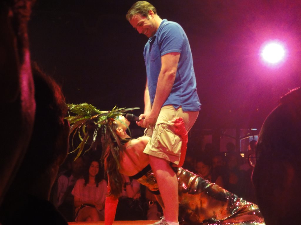 × [PR]上記の広告は3ヶ月以上新規記事投稿のないブログに表示されています。新しい記事を書く事で広告が消えます。 題名:ひつじ 日時:2012年9月5日17:45-18:15 劇場:東京芸術劇場ロワー広場 料金:無料 座席:エレベータより舞台脇ベンチシート中ほど 劇団:劇団コープス(カナダ) 解説: 子供たちに大人気!都会に紛れ込んだひつじ ひつじが劇場のリニューアルオープンを祝いにやってきます! 新しくなった劇場のロワー広場に"放牧"されるひつじたちに 会いにきませんか? 2010年は改装前の劇場地下1階の広場、閉館中の2011年には日 本橋にある稽古場施設の水天宮ピットに"放牧"され、親子連 れに大変好評を博した「ひつじ」。 そんなひつじたちが、再びカナダから来日。今年は見違える ほど変化を遂げた劇場のパブリックスペースに"放牧"されます。 羊飼いに追われ逃げ惑ったり、じゃれ合ったりするひつじたち。 観客を巻き込んでのパフォーマンスにも期待! いつの間にかあなたたちもひつじになってしまうかも? ----- リニューアルされた東京芸術劇場にはじめてきました。 恐怖を催す長大エスカレーターは姿を消し、一階ロビーはすっ きりした印象。劇場がまるごと若返った気分です。地下1階の ロビーには羊用の柵が作られていました。 ひつじの開演30分前で既に周りのベンチは埋まり、ちっちゃ な子供たちでにぎやか。人気なんですか?>ひつじ 無料でロビーで30分のパフォーマンスが見られるなんて、 太っ腹ですねえ。ありがたいことです。 着ぐるみの羊をふれあったり観察したりという観客参加型の インスタレーション。柵の外にまで羊ははみだしてきてます。 目の前で物を食ったり、雄が雌を追い回したり、とつぜん しゃーっとやったり、ほんとうになりきり羊。 これは見る気満々でわくわくしながら見てるんじゃなくて、 たまたま通りがかったら、お?なんじゃこりゃ??というシチュ エーションで見たかったかも。 無料だし、次回同じような公演があれば必見だと思います。 PR 題名:ヘブンアーティスト公開審査 日時:2012年9月5日午後(14時から16時半ごろまで見てました) 会場:都庁前広場 2度目のヘブンアーティスト公開審査見物。 とても暑くてのろのろうごいていたら、1番手の宮野さんの 演技を見逃してしまった。残念Orz 私が見たのは2時ごろから、この暑い中を観客もよく集まって いました。 ちょうど見始めたのが水芸(スプラッシュスプラッシュ)、 回避パフォーマンスと書いてあったのは水鉄砲をよけるとい うことだったのね。 つぎはかわいいお嬢さん(おっとちゃん)のバルーン、マイム、 そしてタップダンス。タップの板をばらばらにしておいて小 さくタップ。 隣の演技が大集団のかぶりものパフォーマンスだったので勢い にまけてちょっとかわいそう。でもコケティッシュでかわい い演技でしたよ。 次はクラウン(ナナ)、服を脱ぐとびよーーん、犬の曲芸と 書いておいて風船犬つれてくるのはいかにもでしたが、それ を割って自分で軟体くぐりするのにはびっくり。 次は休憩を挟んで彦一団子さん、おかし作りという大道芸は 初めてまのあたりにしましたよ。クリスタルボールかと思っ ていたらかぶりついたのには本当にびっくり。 最後にアリバイ作りみたいにはしごをたてて串刺し団子カス ケード。ジャンルはじゃ具リング、なのだそうです。 次は谷口界さんのアクロバット、一度見たことがあってかわ いいので気になってました。最初はブラックスーツでしゃべ りながらハットジャグリング、後半は椅子を使った ナンバー、後半は緊張がほぐれてきたせいか、演技も表情も GOOD!しゃべりやめてシリアス一辺倒にしたのをみてみたい。 次は場所をかえてシネママイム(メランコリー鈴木)。 ミッションインポッシブルをひとりで実施するという意欲 的な演技、いかにもありそうな場面を実演。けっこうおも しろかった。 ここで私の時間が尽きた。。 今回のパフォーマンス部門の合格者は25人。 私が見た中で合格したのは、ナナ、彦一団子、メランコリー 鈴木さんでした。 題名:が~まるちょば サイレントコメディー JAPAN TOUR 2012 劇場:KAAT神奈川芸術劇場 ホール 日時:2012年9月2日 13:00-15:20(途中休憩あり) 料金:5000円 座席:1階4列32番 ストーリー: 今年はウエスタン風、つまり西部劇! タイトルもずばり「ザ・ウエスタン」!! 過去に国内数か所とマレーシア、イギリスのみで上演された、あの名作を 日本全国で巡演!父の敵を探し求め、西部を彷徨う早打ちガンマン。 謎の美女がその運命を変える・・・その結末は?? 久々のが~まるです。まずオープニングでは笛で拍手を無理やり! 観客席も一緒に楽しもうという気満々。左右に分けての拍手合戦や 前後左右への観客ウェーブでまず盛り上がってました。 お約束のかばんを使ったマイムとか、弦なしギターによる演奏。 ビリージーン、医者の手術、「が~まるちょば」という歌詞だけの 歌等々ネタ満載オンパレード。 2幕はウェスタン、かわいた草がごろごろ、親の